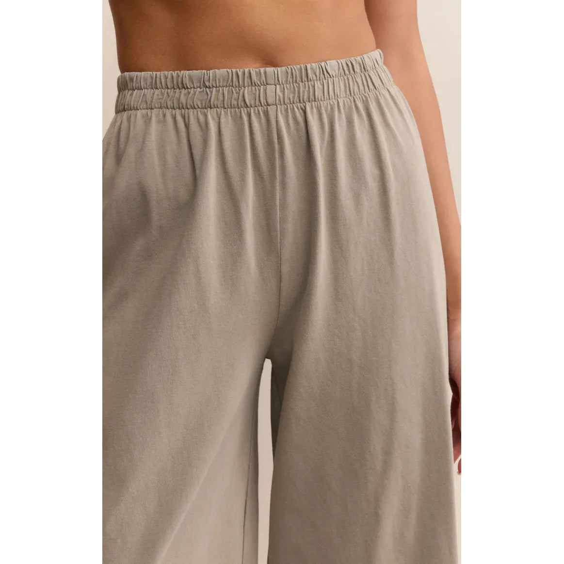 This flare pant is made with a 100% cotton jersey knit fabric and features a wide flare silhouette with an elastic waistband. This pant is a relaxed but stylish piece that looks so good with any of our everyday tops.