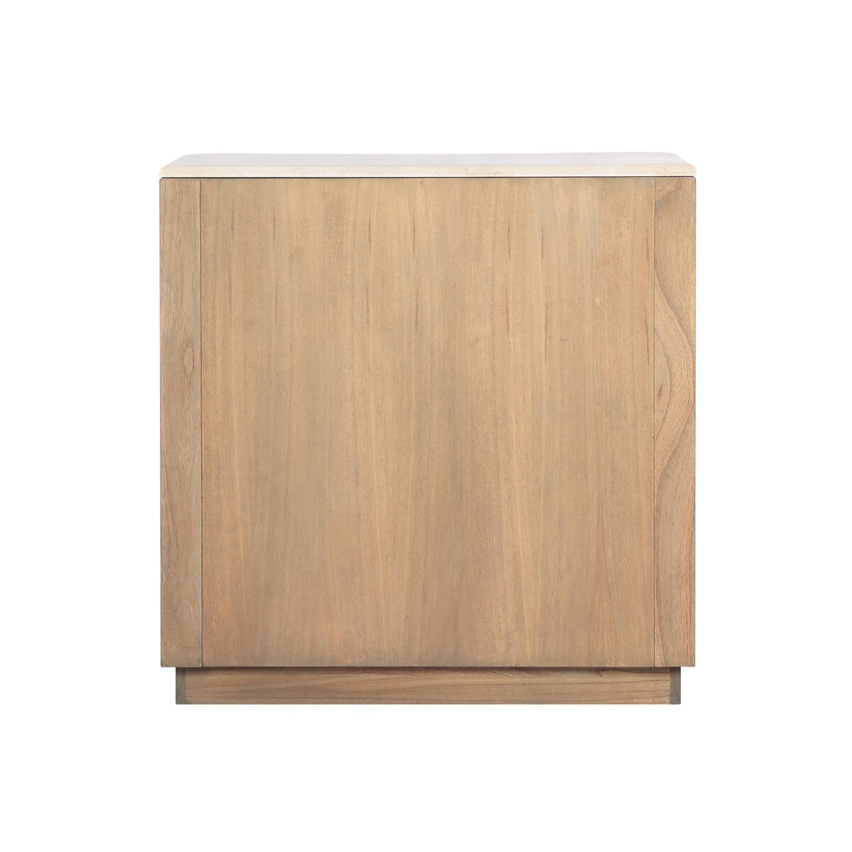Fluid contours give shape to this versatile chest crafted from light mindi and topped with cream-white marble. Five drawers with knobbed pulls open to spacious drawers.