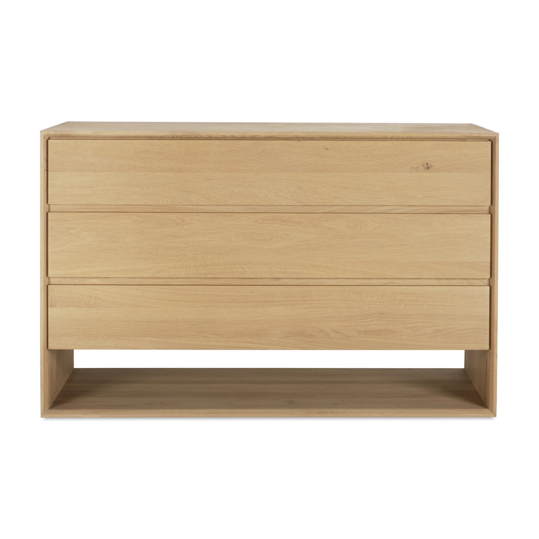 Ethnicraft's Nordic collection combines refined design with the purity of solid wood. The bevelled edges gives this solid oak furniture an extra edge, we would say. This chest of drawers is made from solid oak and features three drawers.