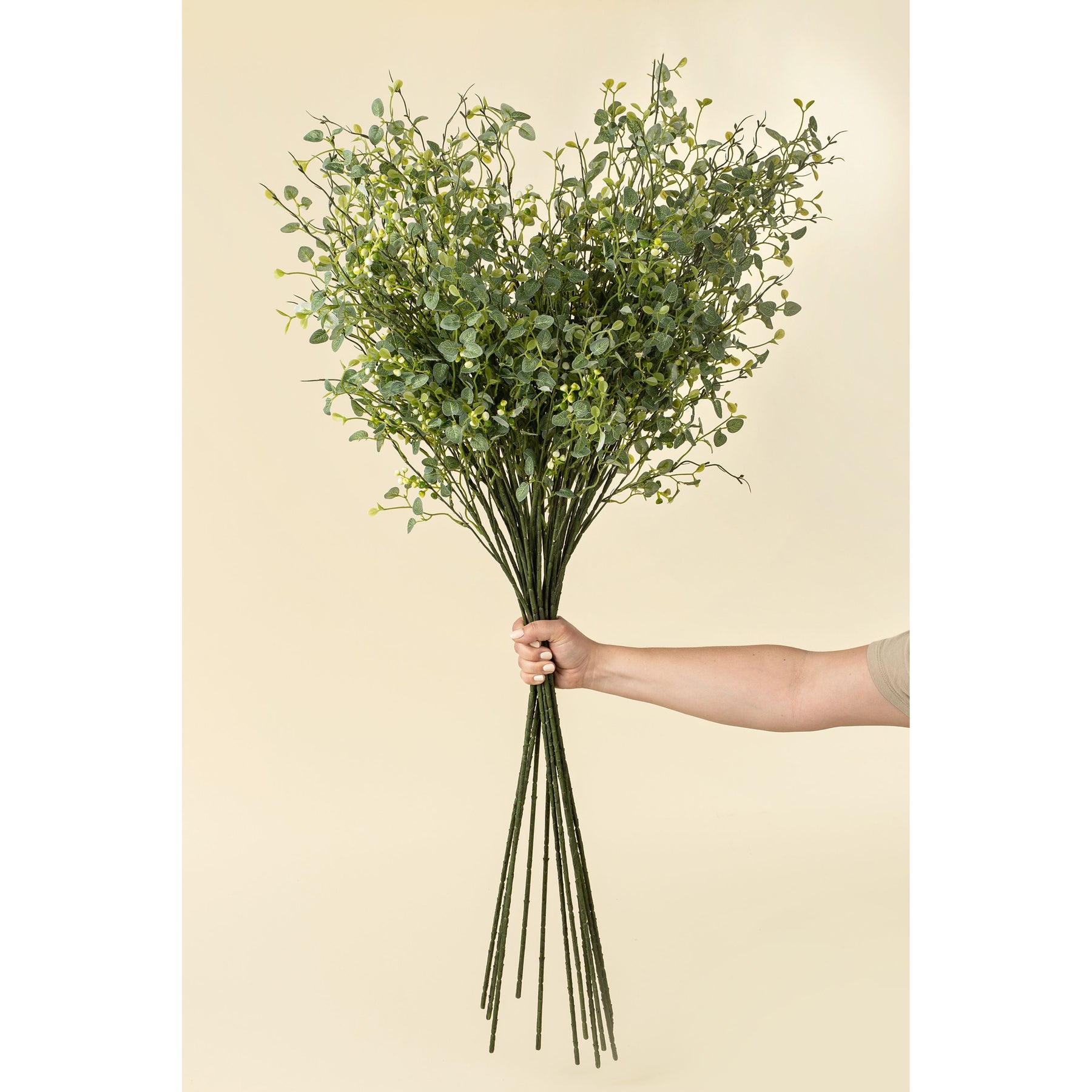Light and airy with a freshly picked feel, the Butterfly Eucalyptus Branch adds a natural touch to your faux florals. With fluttery green leaves and delicate bud details, it brings subtle texture and movement to accent decor with zero maintenance.