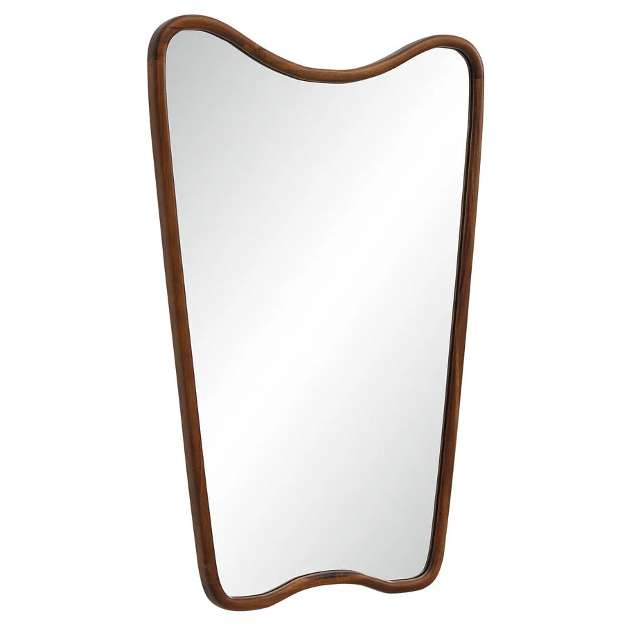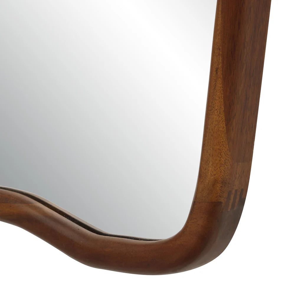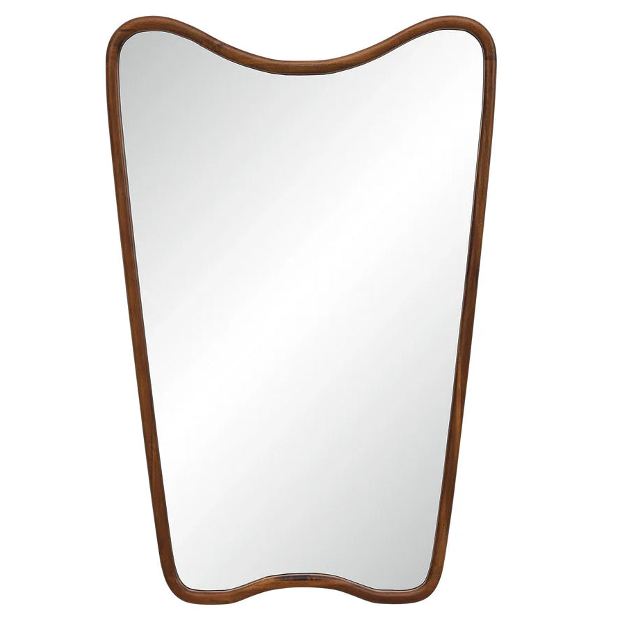 Give any room a fresh sense of character with the Harlow wall mirror, designed to balance elegance and timelessness. Its gently rounded form introduces subtle softness, while the warm walnut-finished frame delivers a refined, upscale touch. Completed with clear, silvered glass for a distortion-free reflection, this mirror enhances both everyday style and the overall ambiance of your design project.
