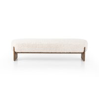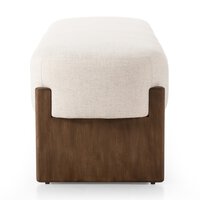 Style this modern accent bench just about anywhere. A cradle base of wire-brushed parawood supports heavily textured upholstered seating.