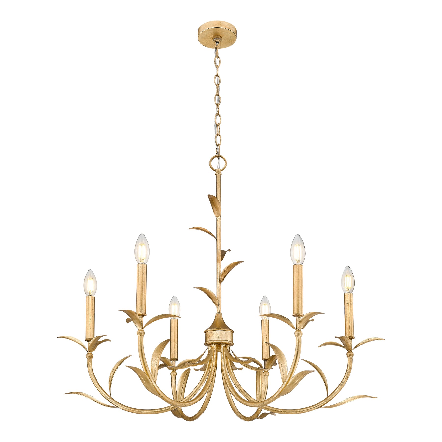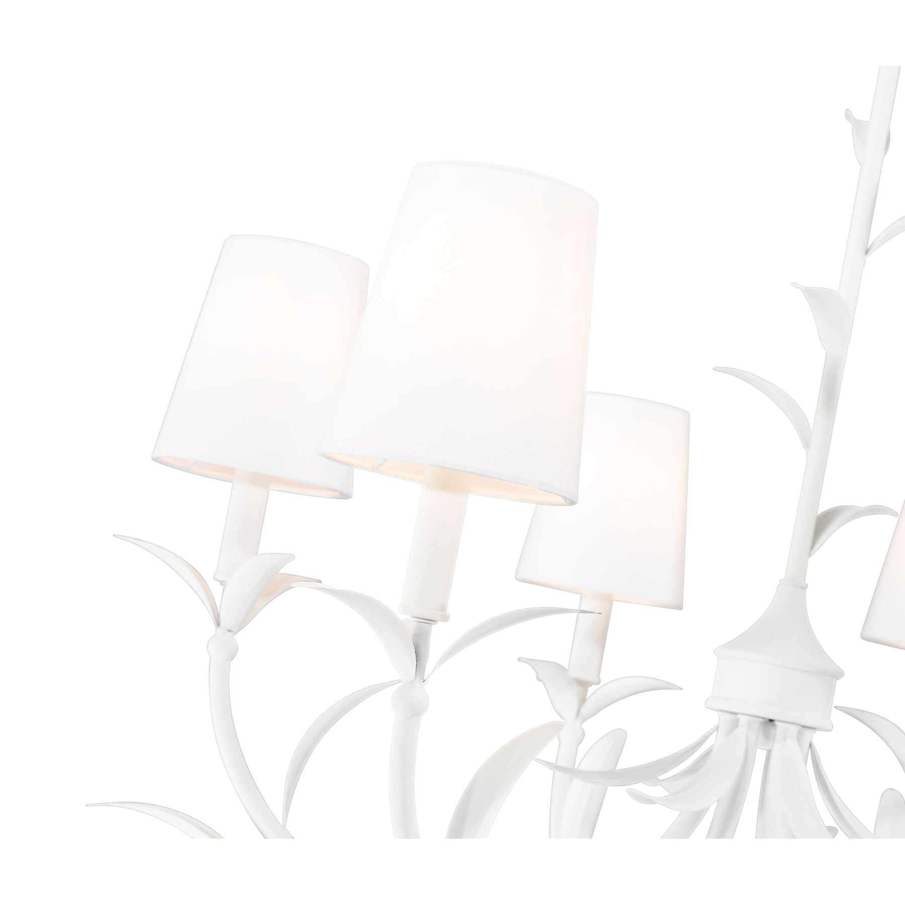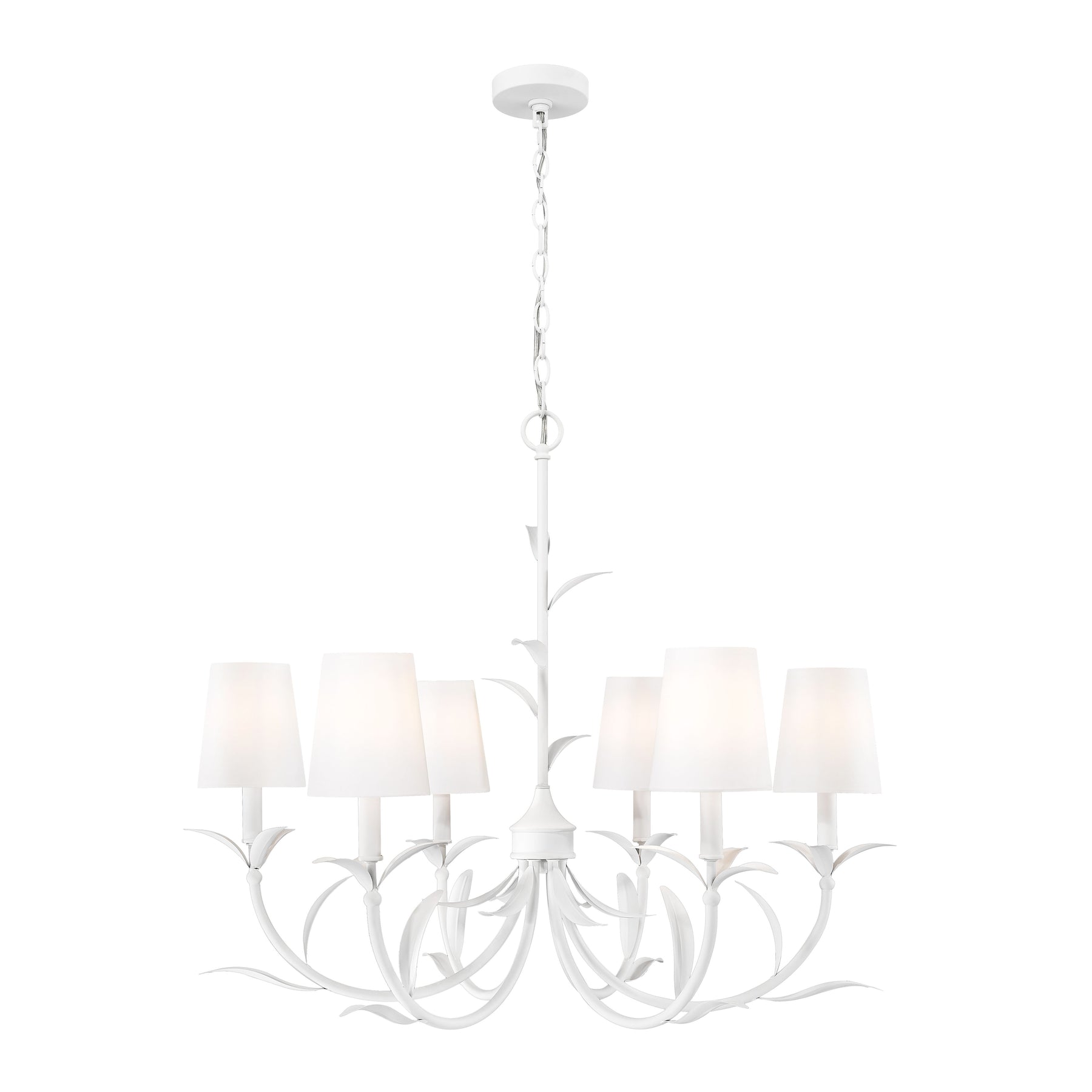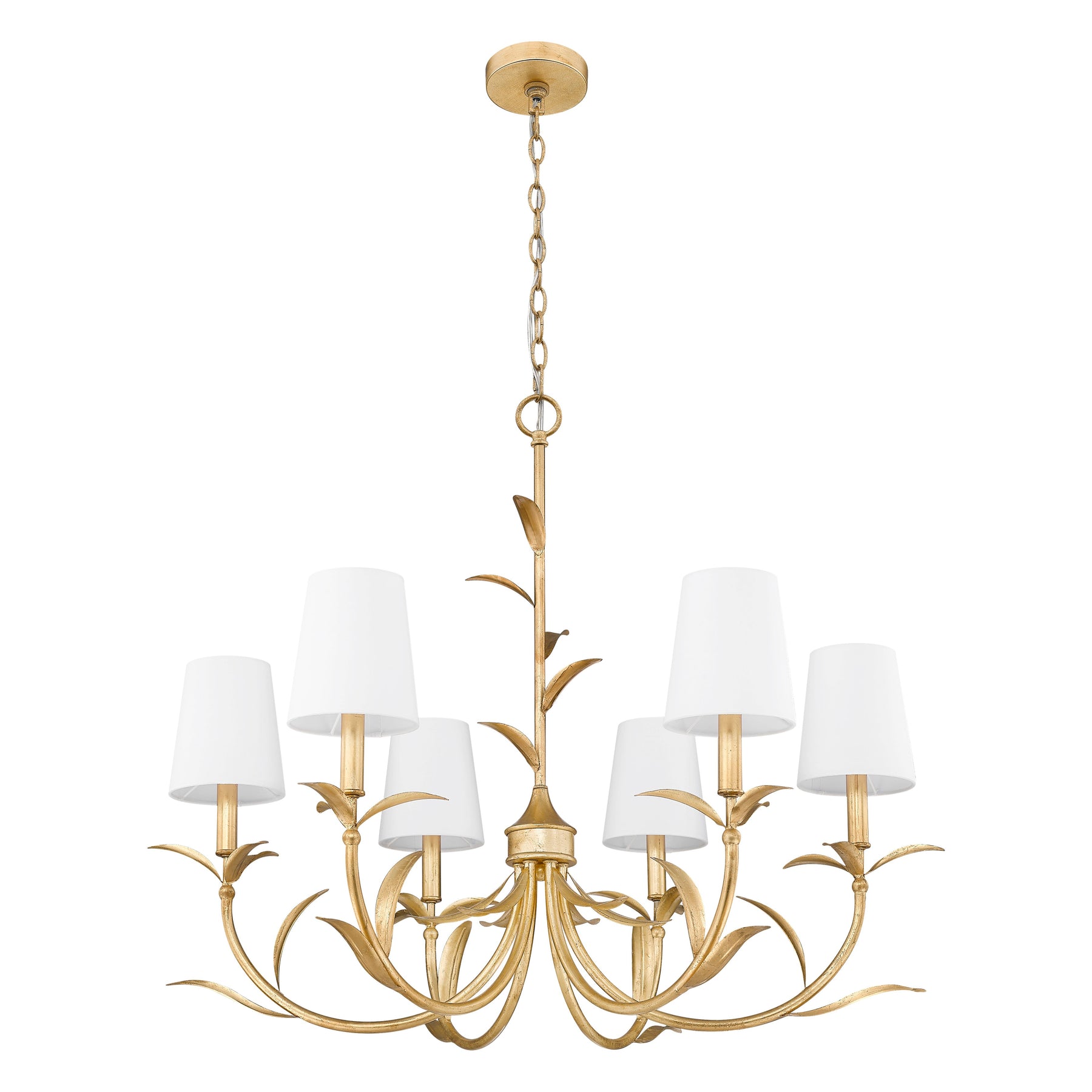 The organically inspired Aslin collection is distinguished by delicately shaped fronds that bring a soft focus to any room in the home. The series looks equally beautiful with or without the optional shades, depending on user preference. The style is offered as single- and double-arm wall sconces, as well as a single- tier 6-light or double- tier 9-light chandeliers in a staggered silhouette that creates volume without seeming massive in scale. The finish options are Goldleaf or Textured White.