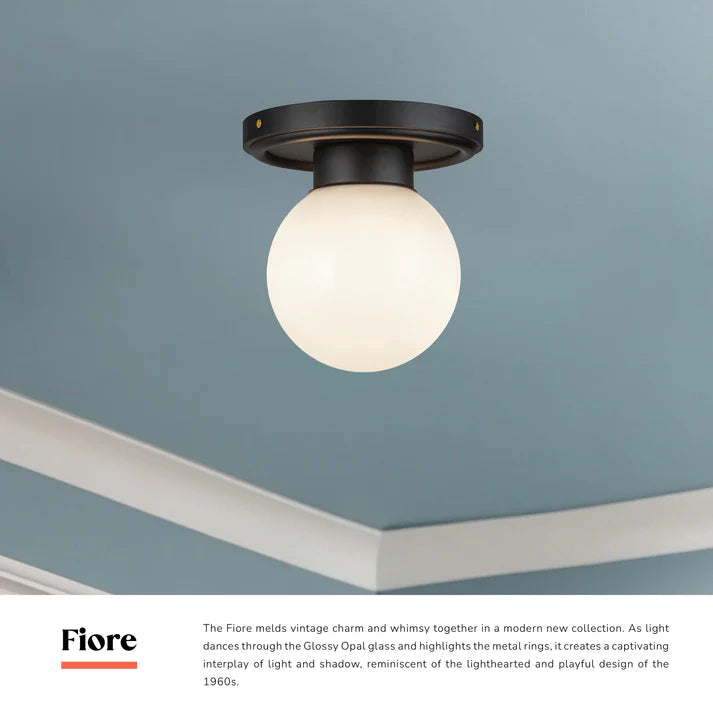 The Fiore melds vintage charm and whimsy together in a modern new collection. As light dances through the Glossy Opal glass and highlights the metal rings, it creates a captivating interplay of light and shadow, reminiscent of the lighthearted and playful design of the 1960s.