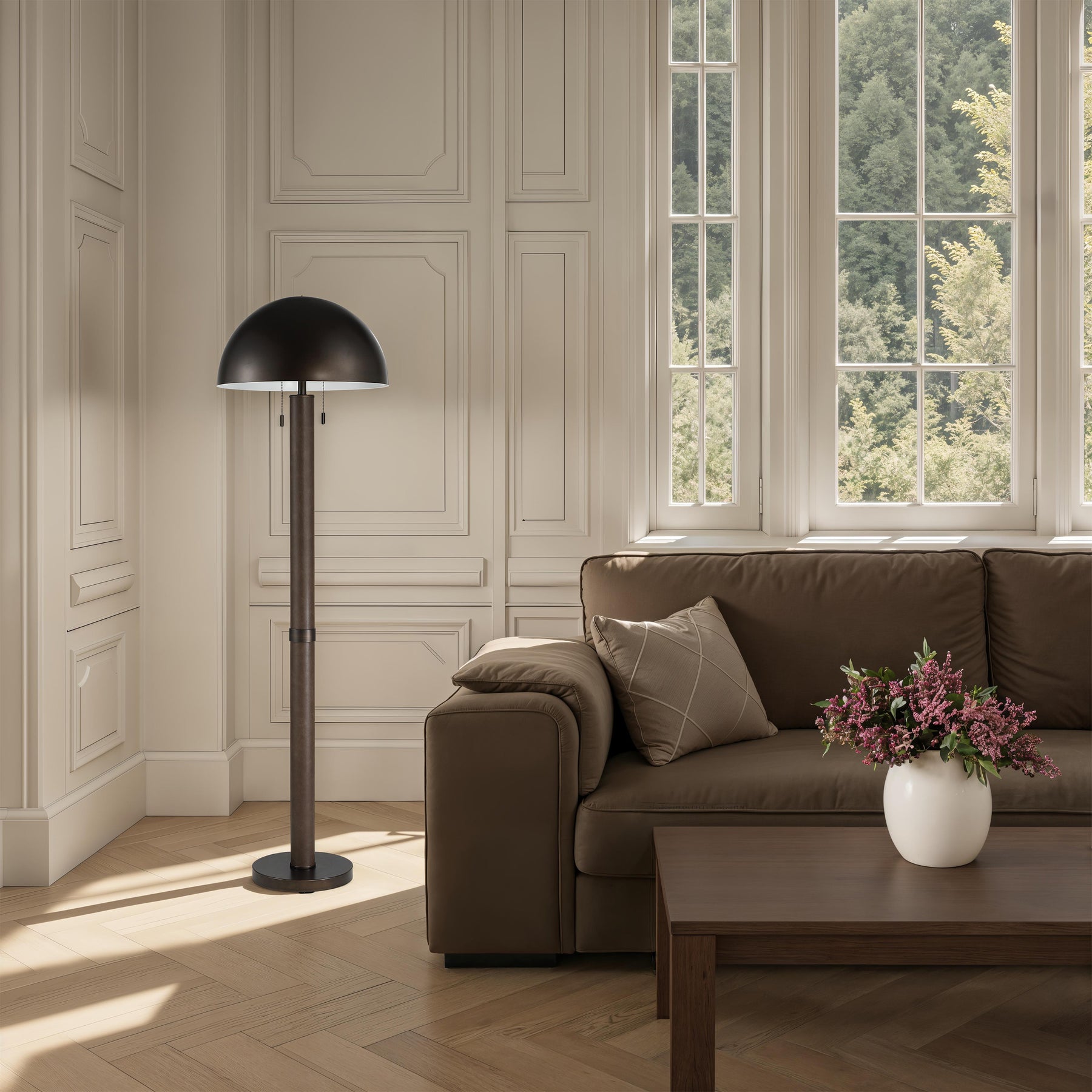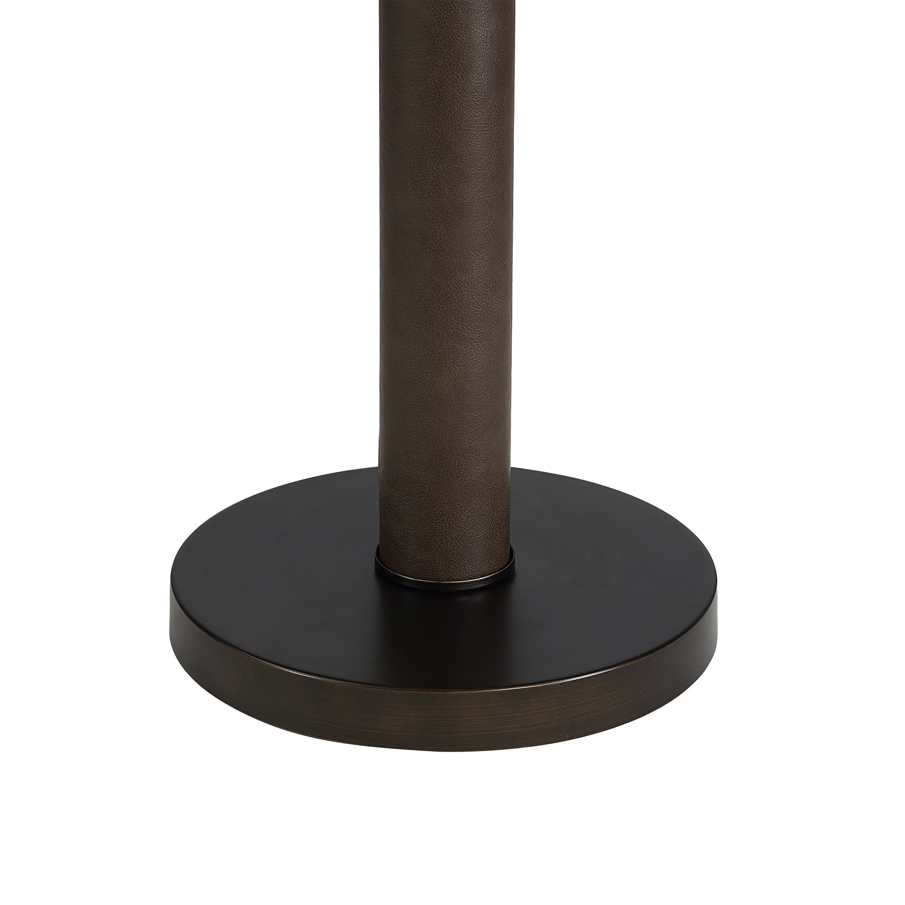 Bring modern edge to any space with the Incanto floor lamp. Finished in rich dark bronze with subtle faux-leather accents, its smooth iron body and sleek dome shade hold an understated, minimalist presence. A simple pull-chain adds easy everyday functionality, making this lamp a welcoming addition to bedrooms, living areas, or any corner that could use a soft, stylish glow.