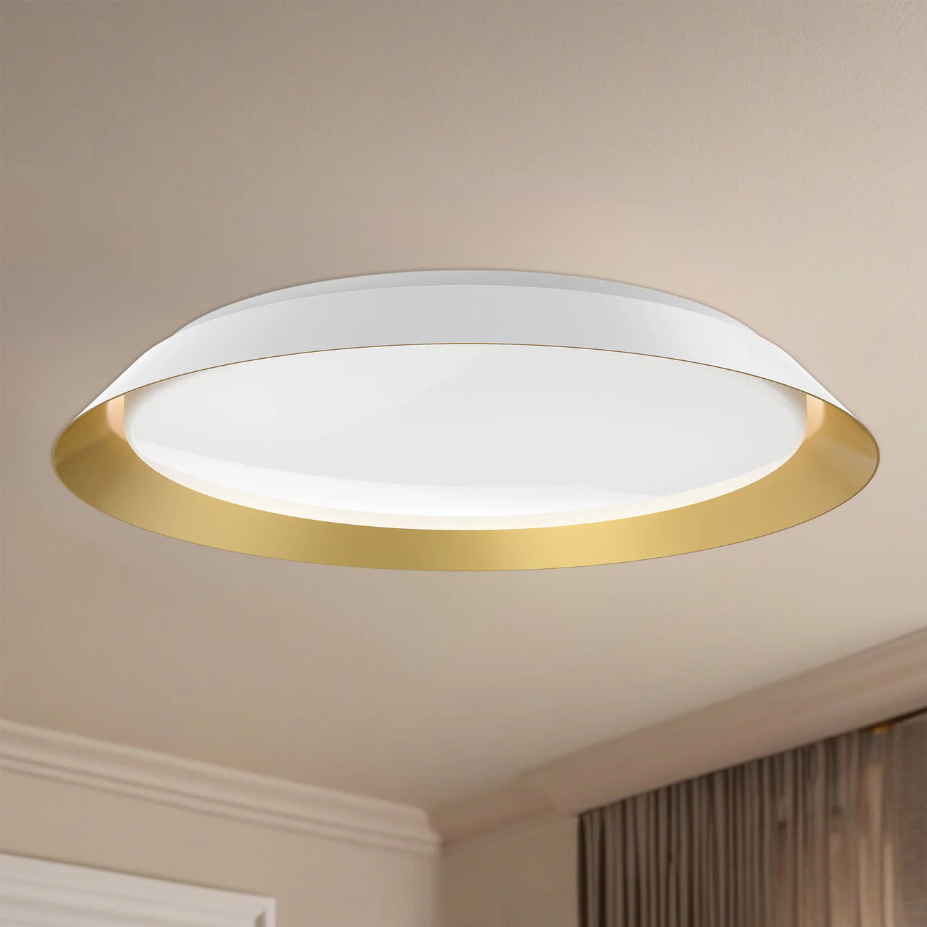 Designed to be decorative in any space, the oversized metallic frames, available in black and gold, add artistic flair to its sleek design.