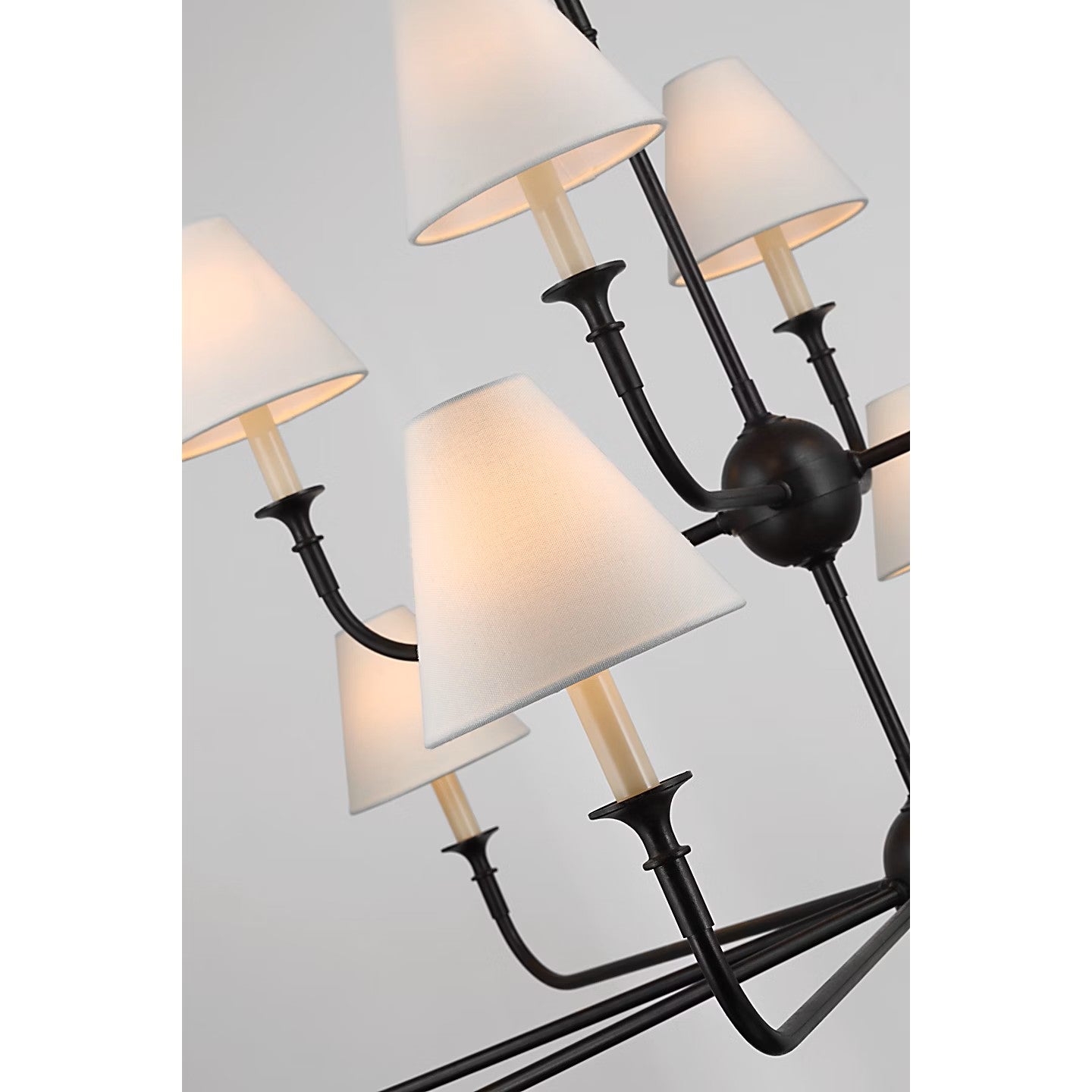 With the Piaf, Thomas O'Brien explores clean shapes with an airy feel. Natural steel bars intersect with wooden and metal hubs accented by simple candles and white conical shades. The juxtaposition of classic, casual forms with modern details will lend itself effortlessly to a diverse range of interior spaces.