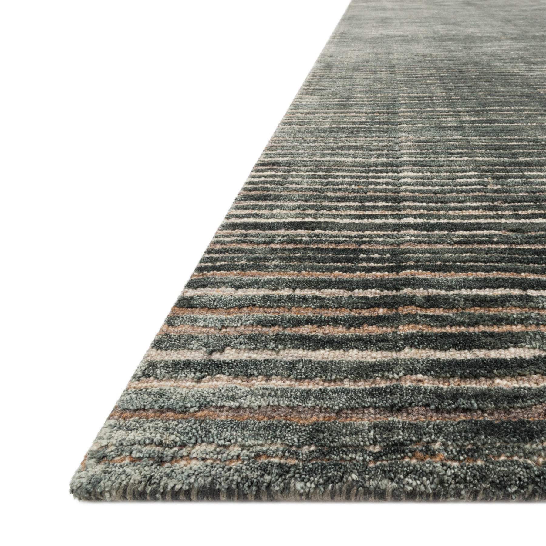 The Bellamy Collection is hand-loomed of rayon, wool, and Cupro by artisans in India. Create a dynamic space with Bellamy's silky textural design, subtle dappling of tonal colors and an illusion of movement created with contrasting pile-height stripes.