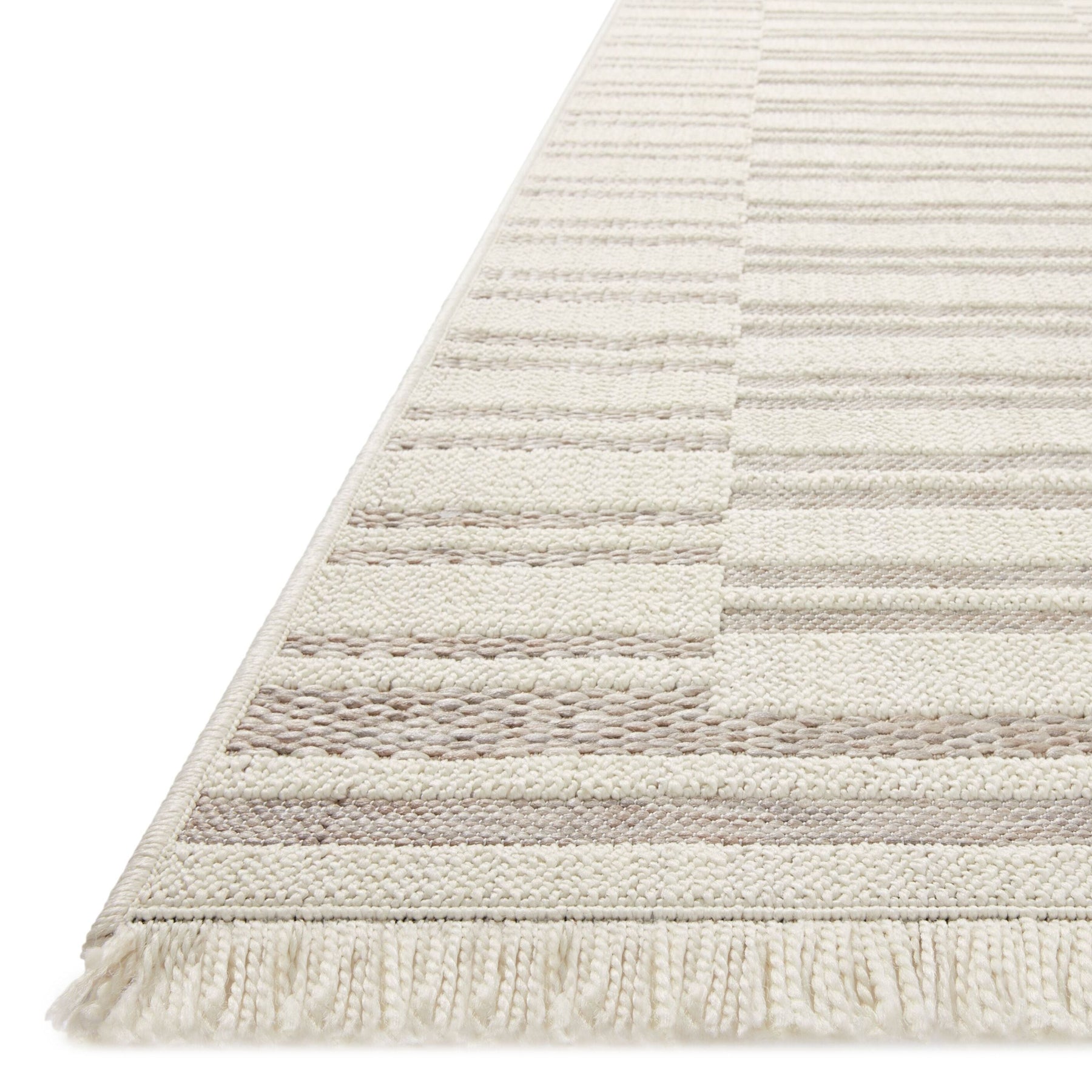 The Malibu Collection is an indoor/outdoor area rug by Amber Lewis x Loloi that channels the casual modern vibe of the beach city it's named after. The rug's neutral-toned geometric prints are easy to match with a range of decor styles, while a hint of fringe adds to the breezy aesthetic. This collection is power-loomed of 100% polypropylene that's made to resemble natural fibers, but which can withstand the outdoor elements and indoor high-traffic areas like mudrooms, playrooms, and hallways. Spot clean, vacuum, or hose off completely as needed. Made in Egypt and OEKO-TEX certified, ensuring its materials don't contain harmful substances.