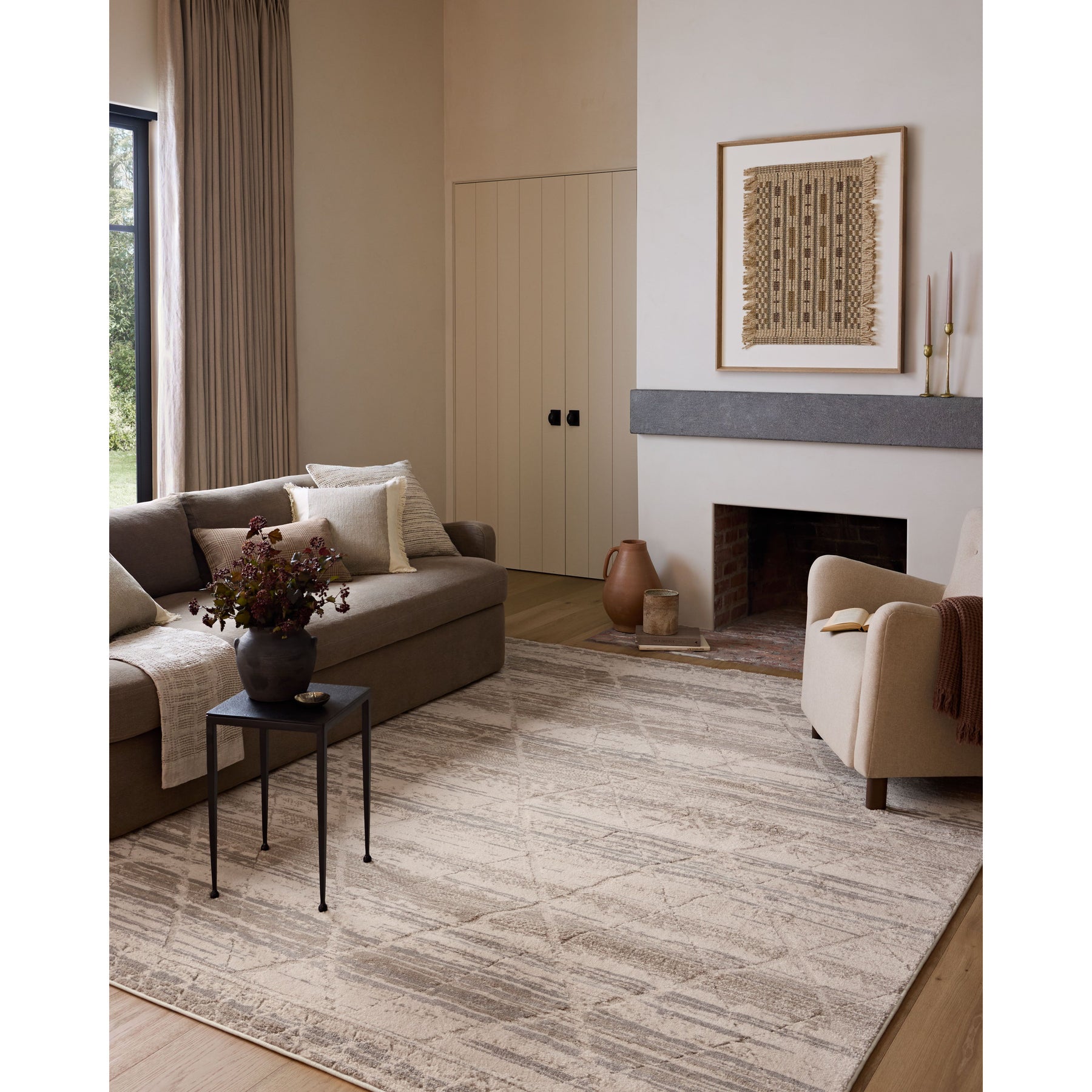 The Monty Collection by Amber Lewis x Loloi is a modern interpretation of richly piled Moroccan rugs in a refreshingly neutral color palette. The rugs abstract designs create a high-low texture in the pile for feet to sink into. This collection is power-loomed of easy-to-clean polyester in Turkey for high-traffic durability and is OEKO-TEX certified, ensuring its materials do not contain harmful substances.