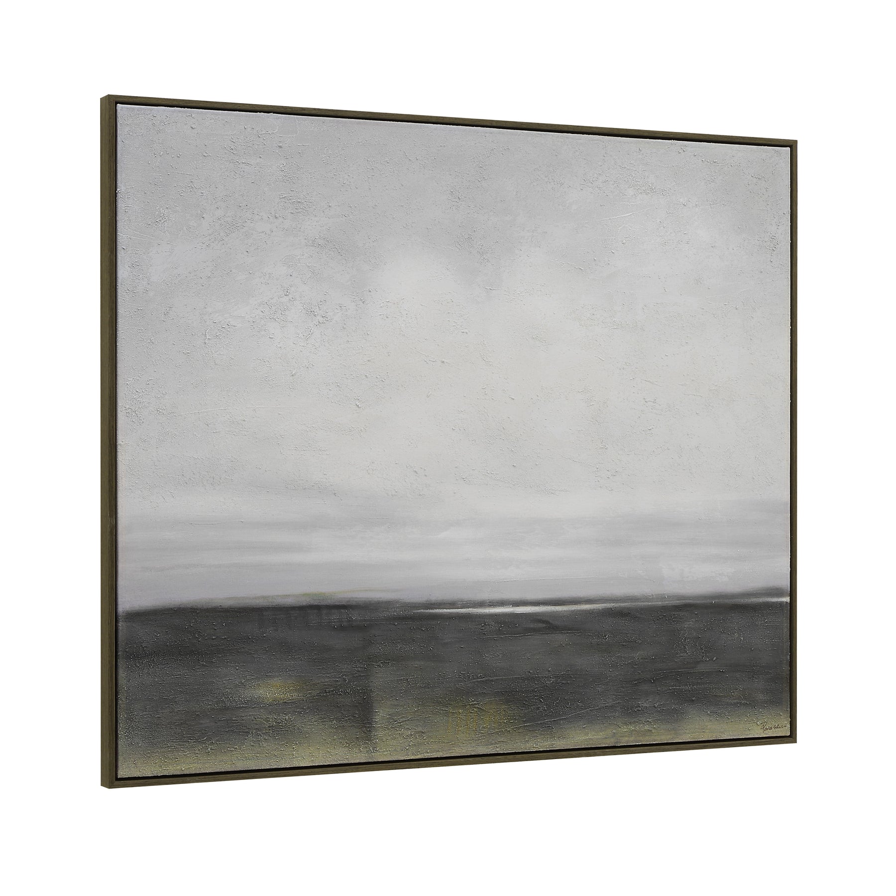 Introduce a calm, artful mood to any room with the Cielo landscape canvas. Soft, hand-painted layers flow across the piece, enriched by delicate texture and touches of gold leaf that lend subtle dimension and shine. Set within a sleek black oak frame, this artwork blends modern elegance with organic warmth, making it a standout element in transitional interiors.