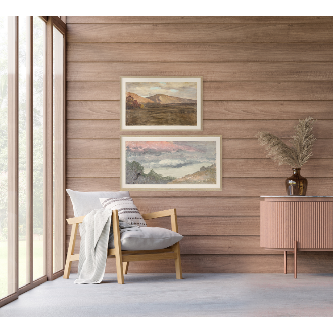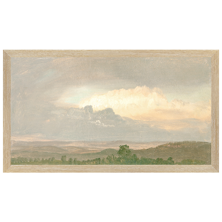 Nineteenth-century landscape painters celebrated and romanticized North America’s expansive wilderness. This artwork employs a serene and harmonious palette that conveys a peaceful pastoral atmosphere while accentuating the impressive majesty of these natural scenes.