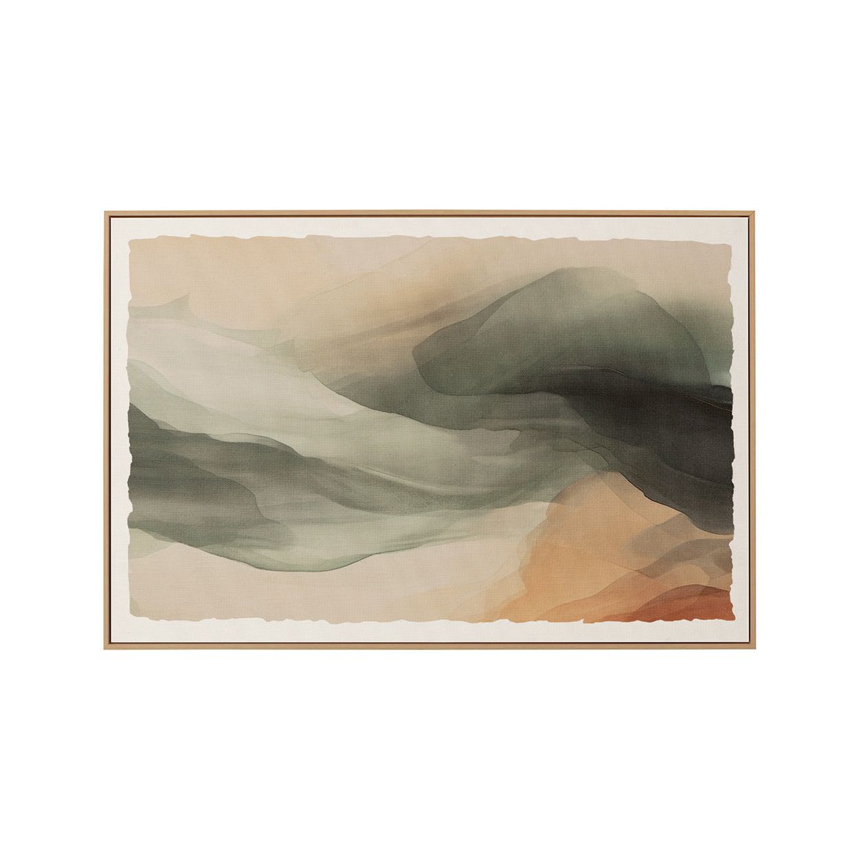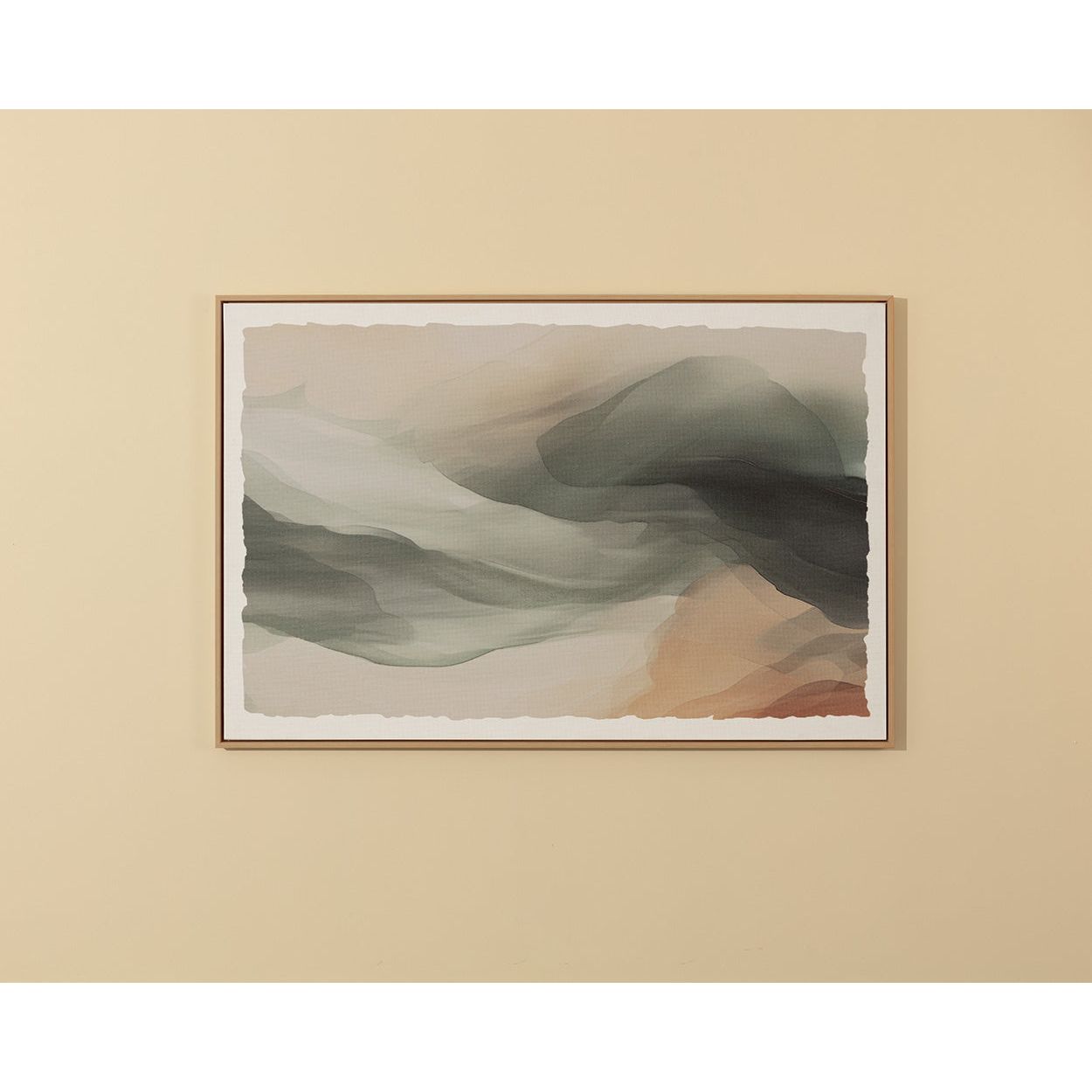 Soft layers of pigment drift across the canvas in this abstract composition, evoking shifting landscapes. Printed on linen with a watercolour effect, the gentle movement and depth is created through translucent washes of gray, cream, and warm earth tones. The artwork brings a sense of expansiveness and calm to any space, whether displayed on its own or within a gallery. Crafted in Canada.