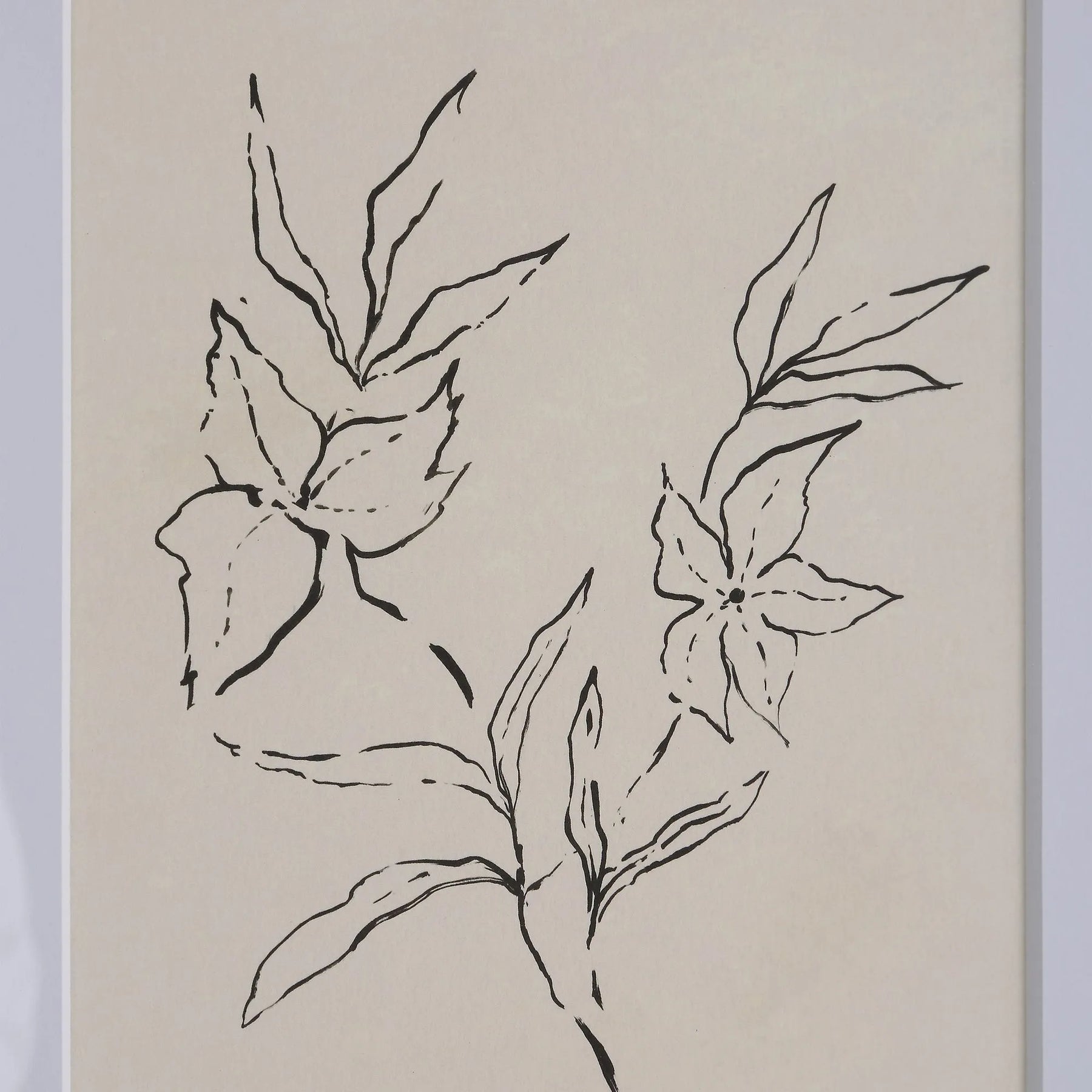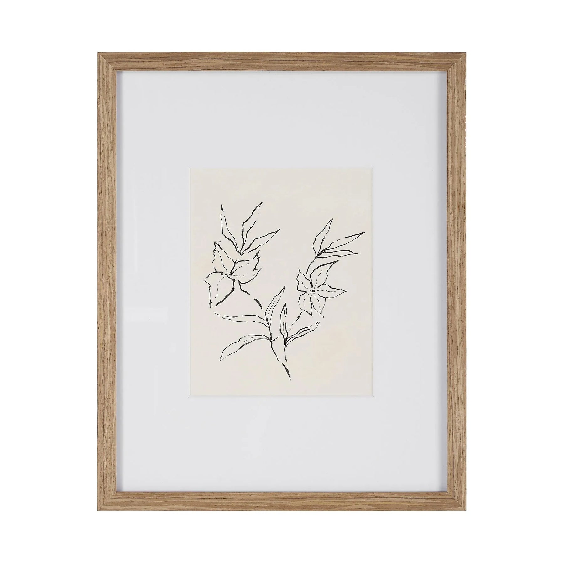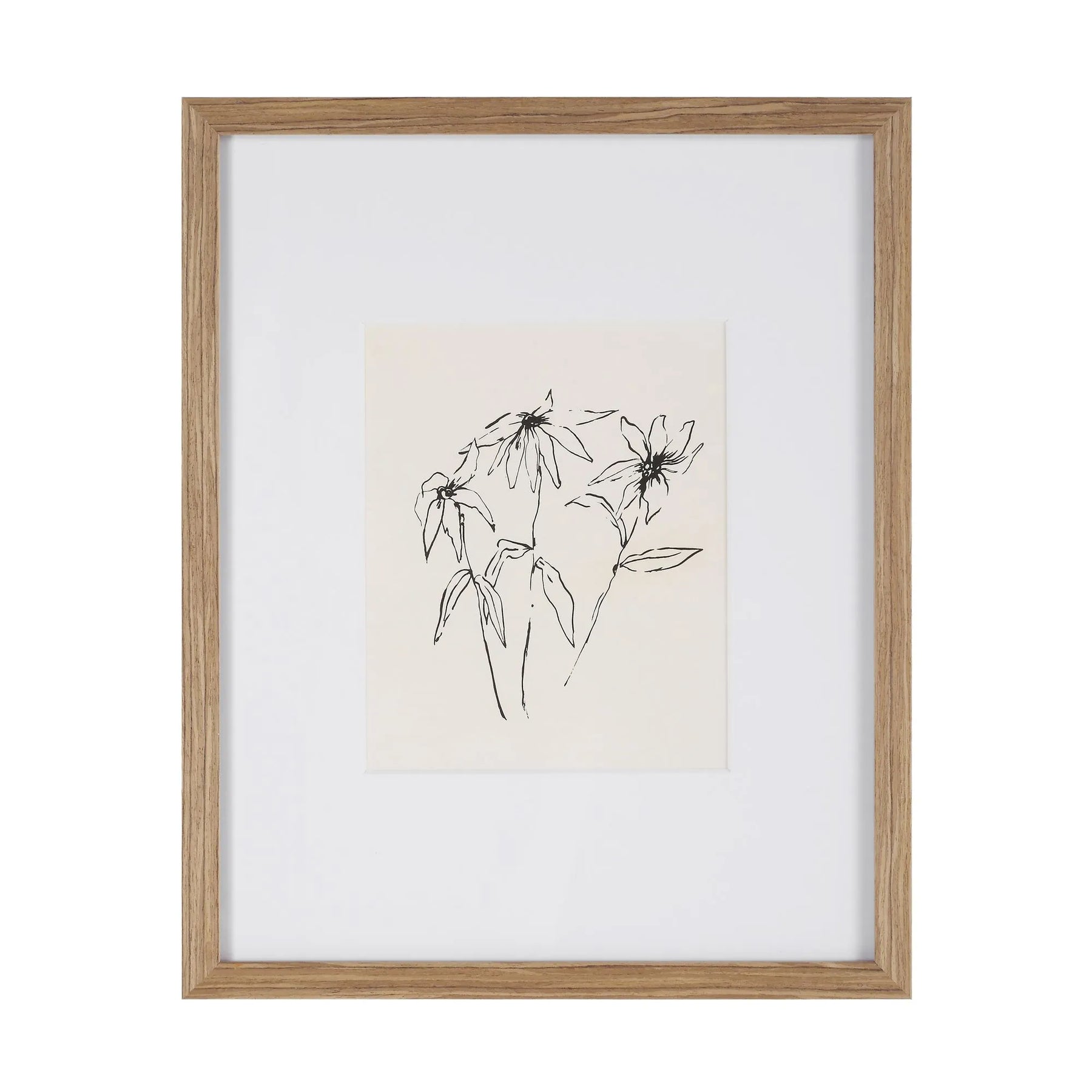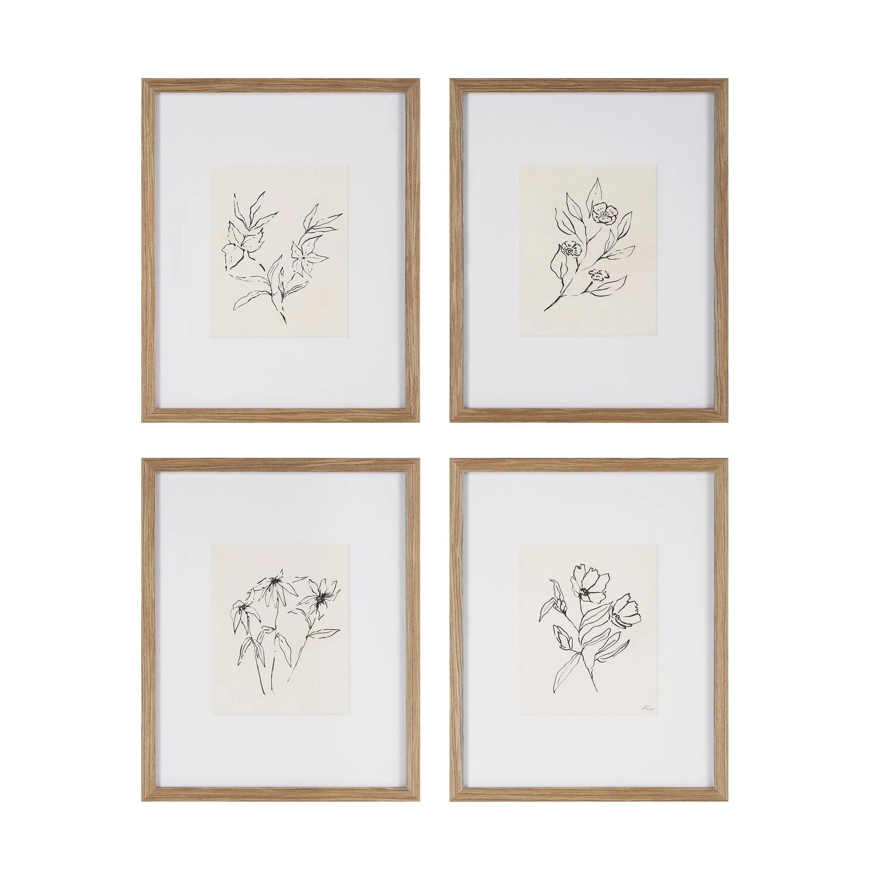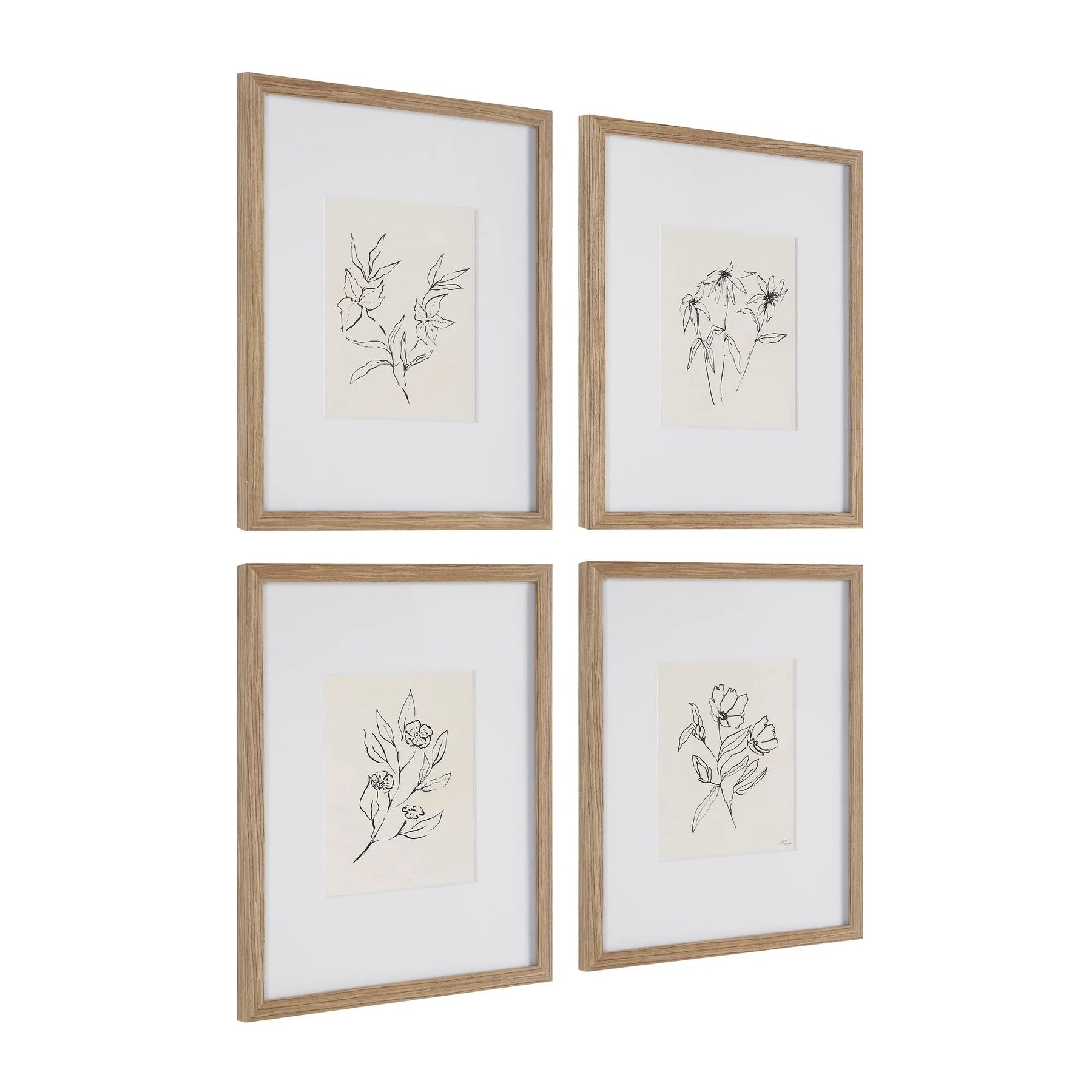 Traditional style gets a modern update with this quartet of botanical wall art. Designed with a beautifully neutral color scheme, each print features a medium walnut veneer frame and generously proportioned mat that highlights the simple but striking line drawing within. Display them as a grid or in a line for a timeless impact.