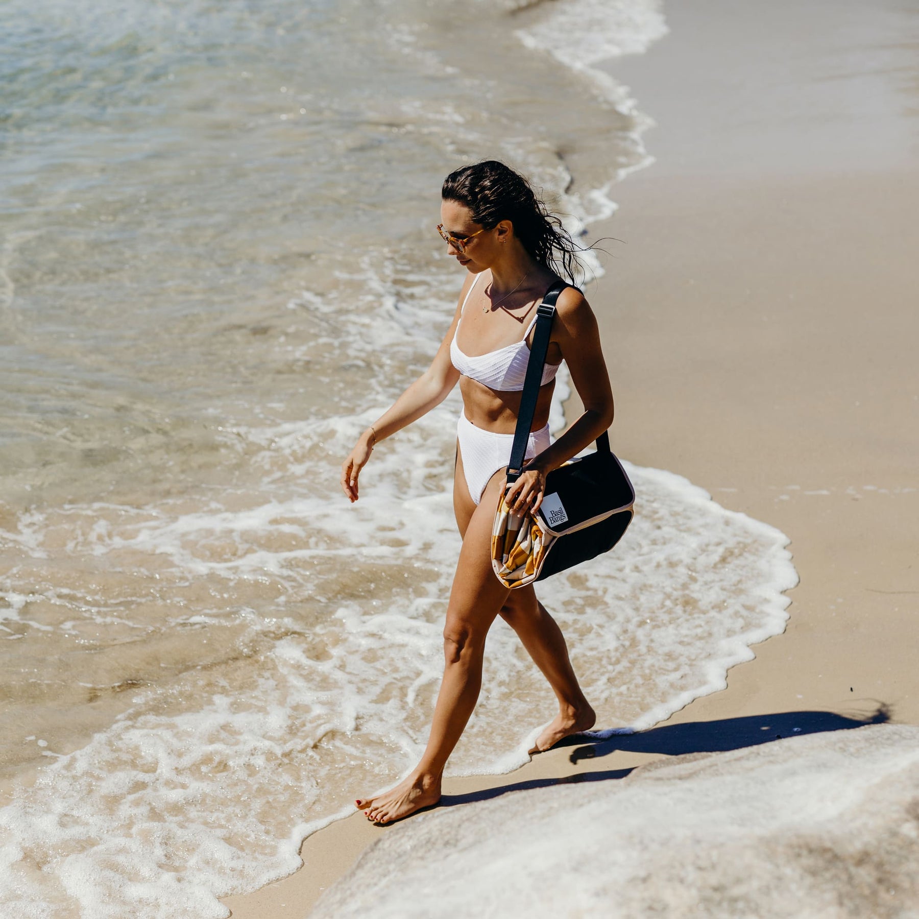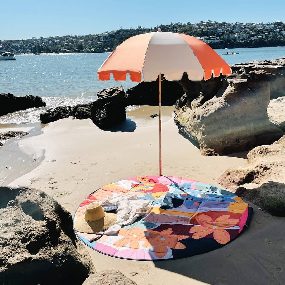 Folding up into itself it is perfectly thrown over your shoulder, into a beach bag, or underneath the stroller.