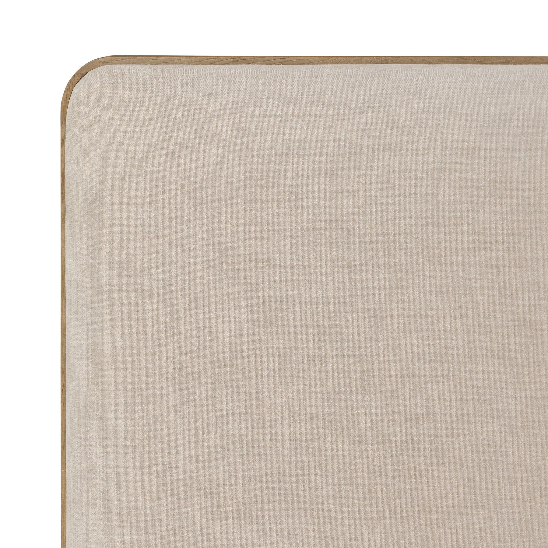 Settle in with the soft contours of a timeless bedroom style. With subtly rounded corners, aged solid oak frames upholstered head and foot boards, for an inviting look that moves between spaces and styles with ease.