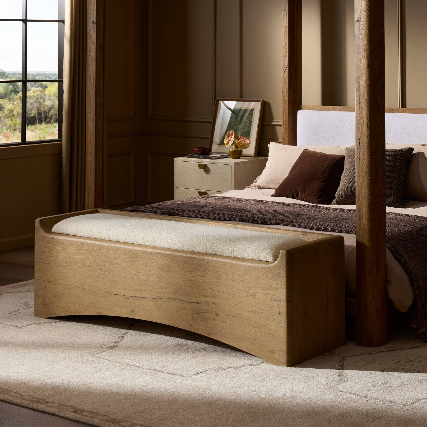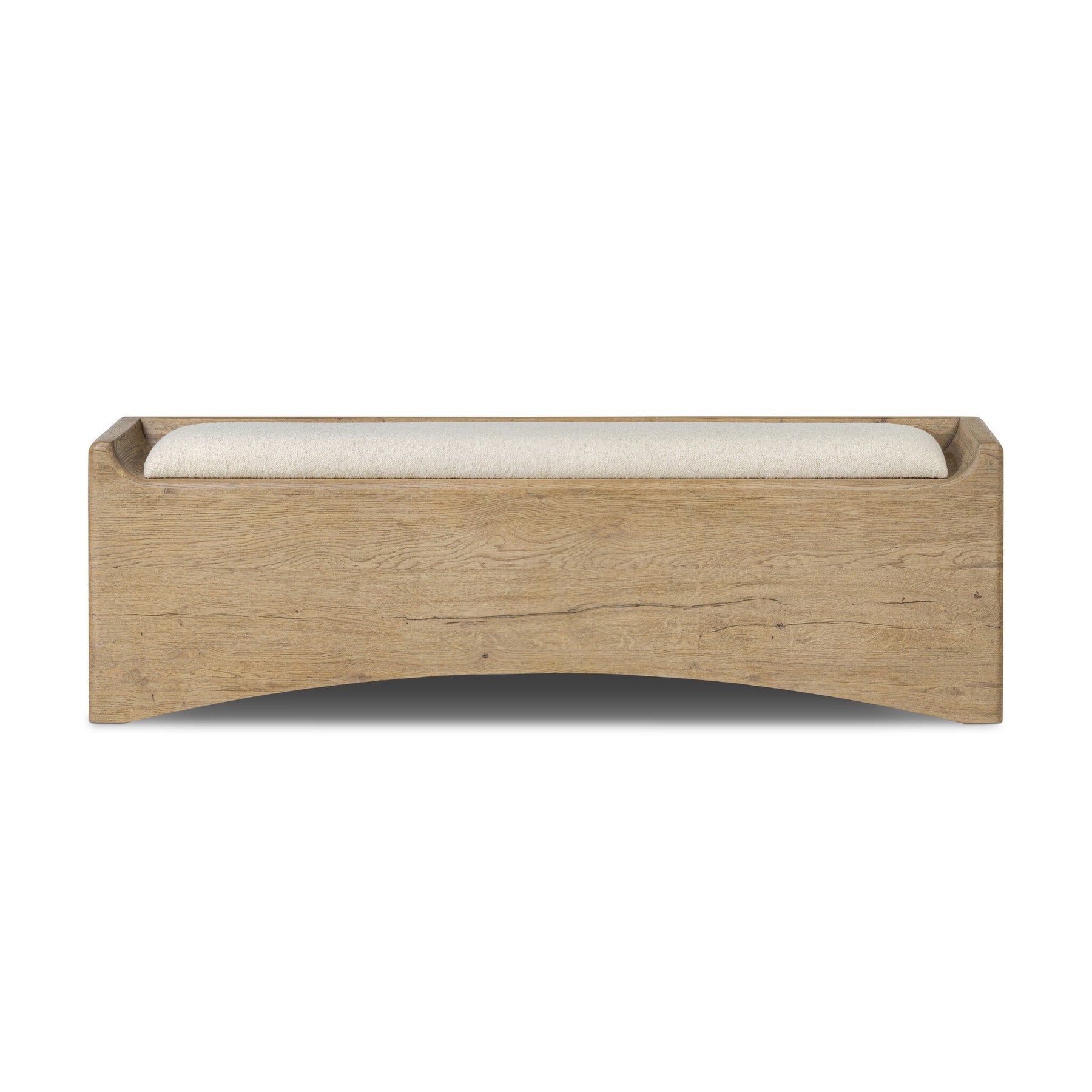 Create extra storage space wherever it's needed. This oak storage bench doubles as seating with its removable cushion upholstered in a neutral performance fabric. A scooped base lightens the look. Performance fabrics are specially created to withstand spills, stains, high traffic and wear, ensuring long-term comfort and unmatched durability.