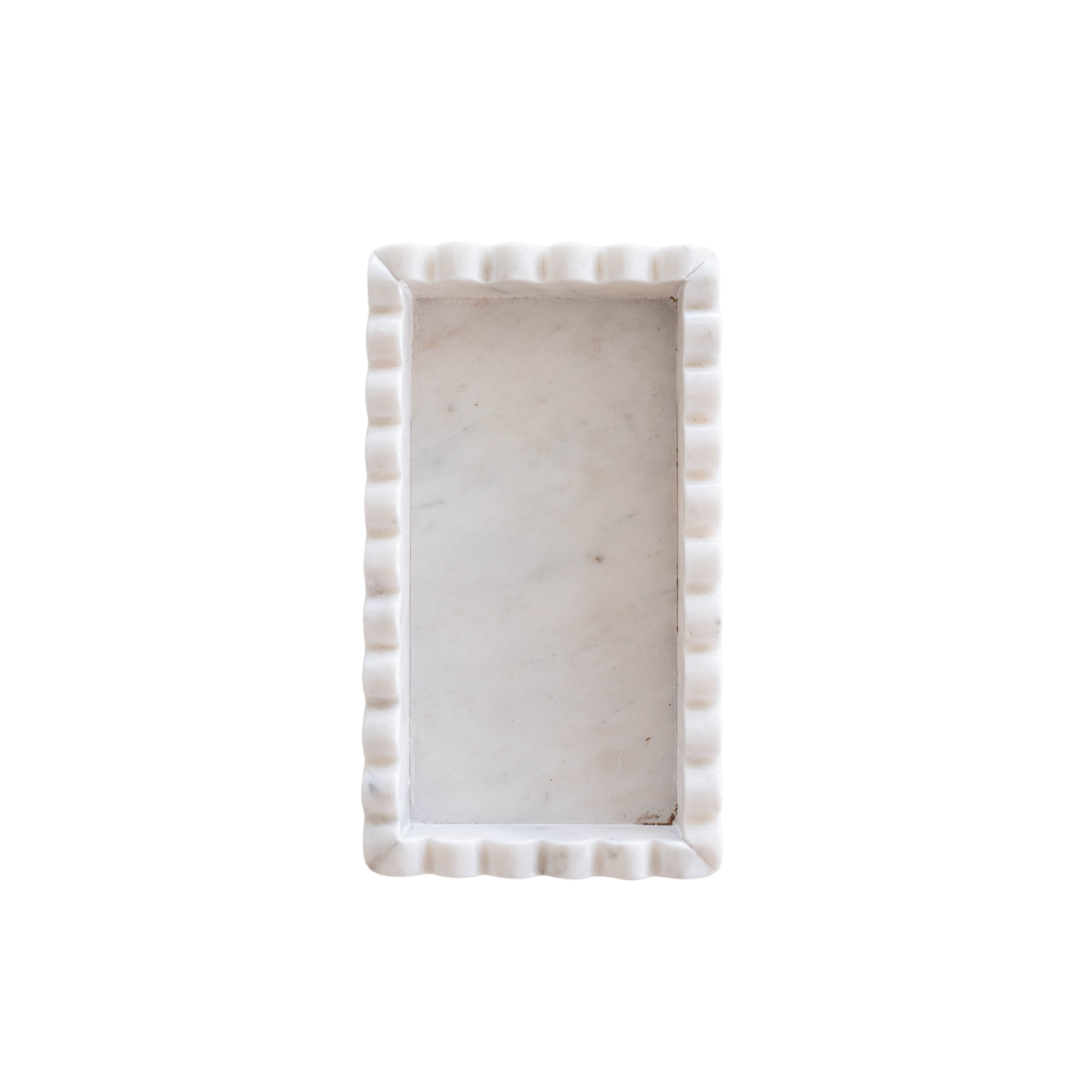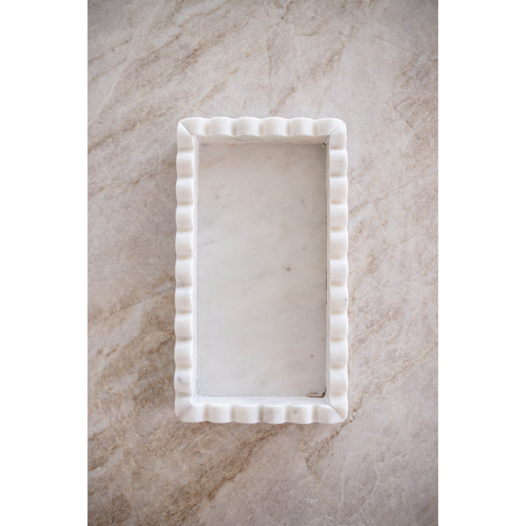 The White Marble Scalloped Tray gives a soft, delicate look to spaces. Would make a great addition to bathroom or kitchen counters. This marble scalloped tray is perfect for everyday items like hand & dish dispensers to keep it within easy reach.