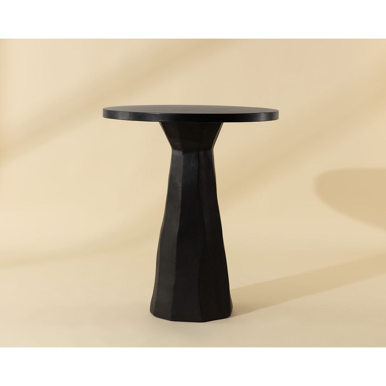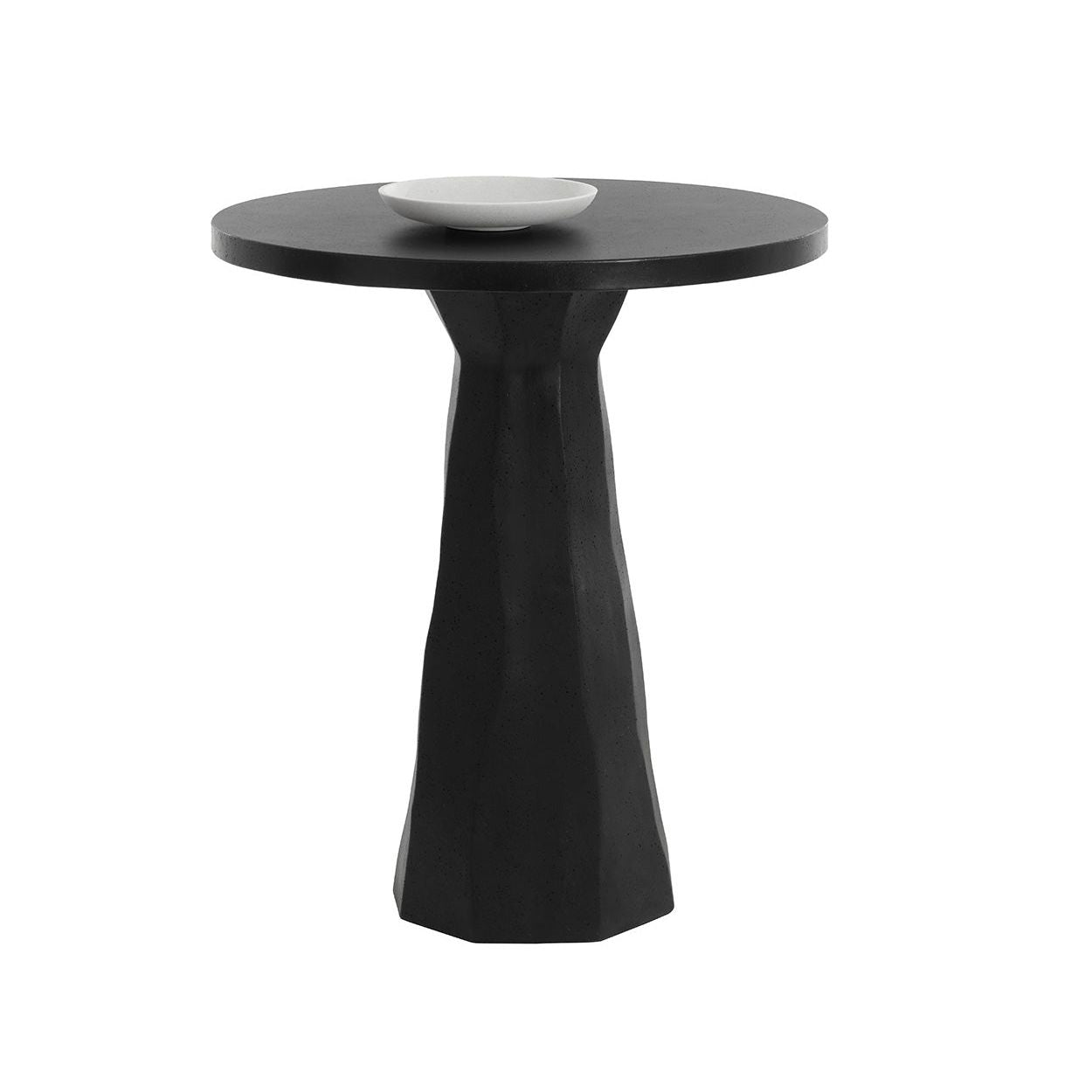 A sculptural interplay of angles and texture, the Kliff Bar Table is cast in sealed concrete with a distinctive travertine look and with a sleek, all-black finish. Designed to move effortlessly between indoor and alfresco settings, it makes a bold statement from every angle.