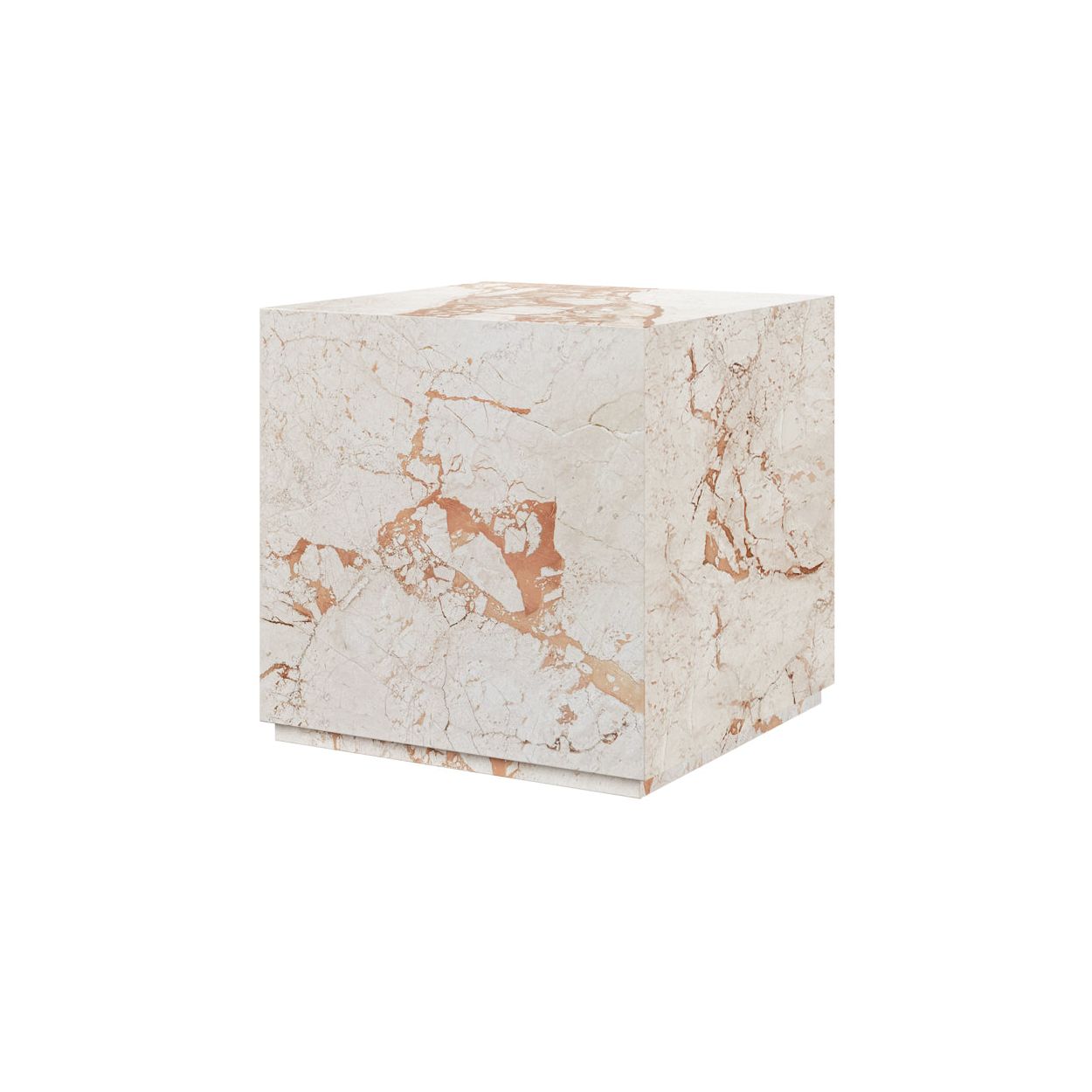 The Laros End Table showcases the raw beauty of marble, with rich veining and subtle variations unique to each piece. Its bold cube form is compact yet striking, adding texture and elegance to any space whether placed beside a sofa or as a standalone accent.