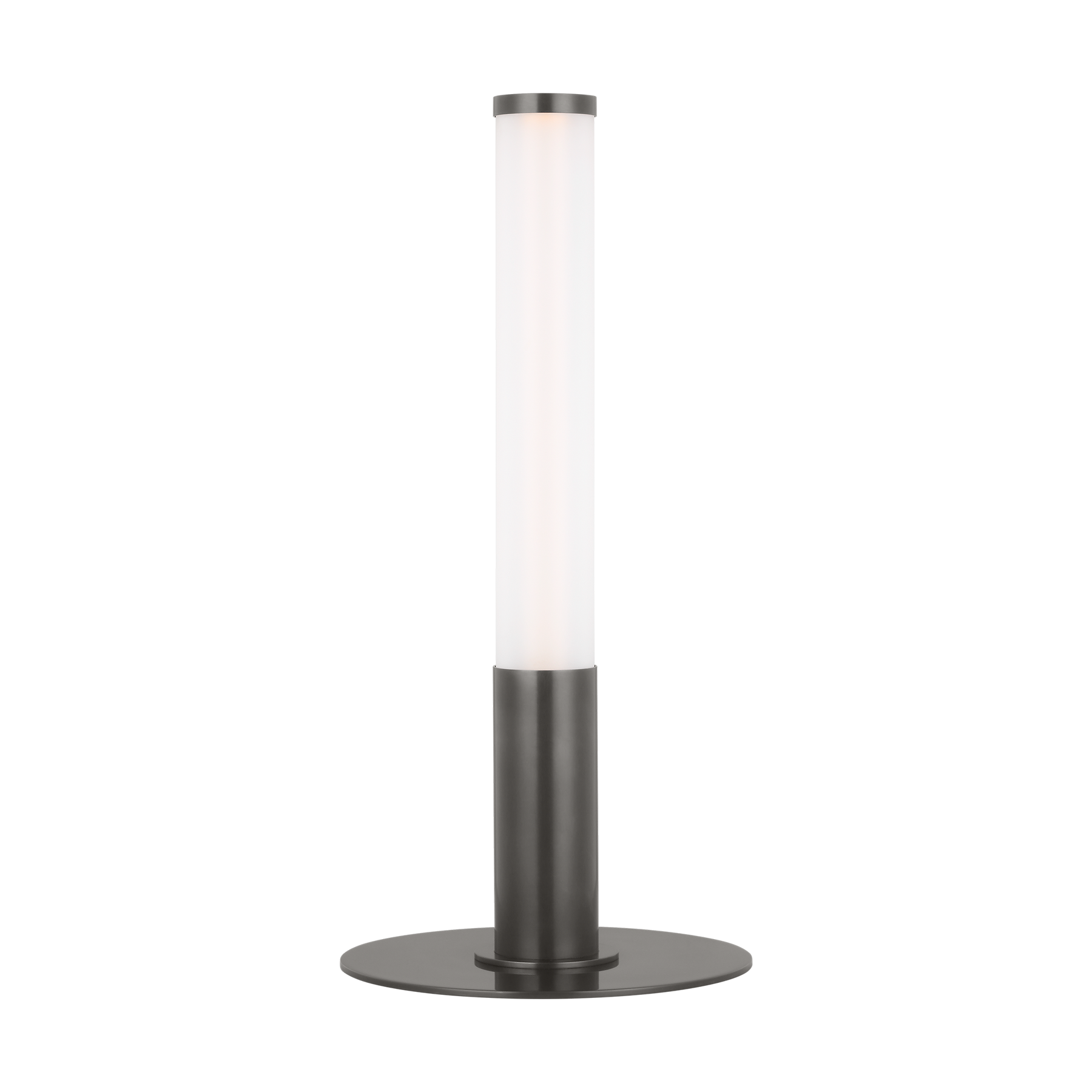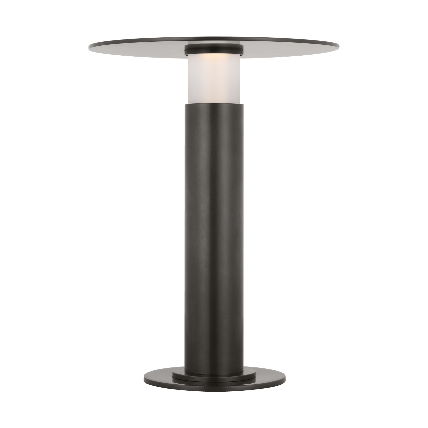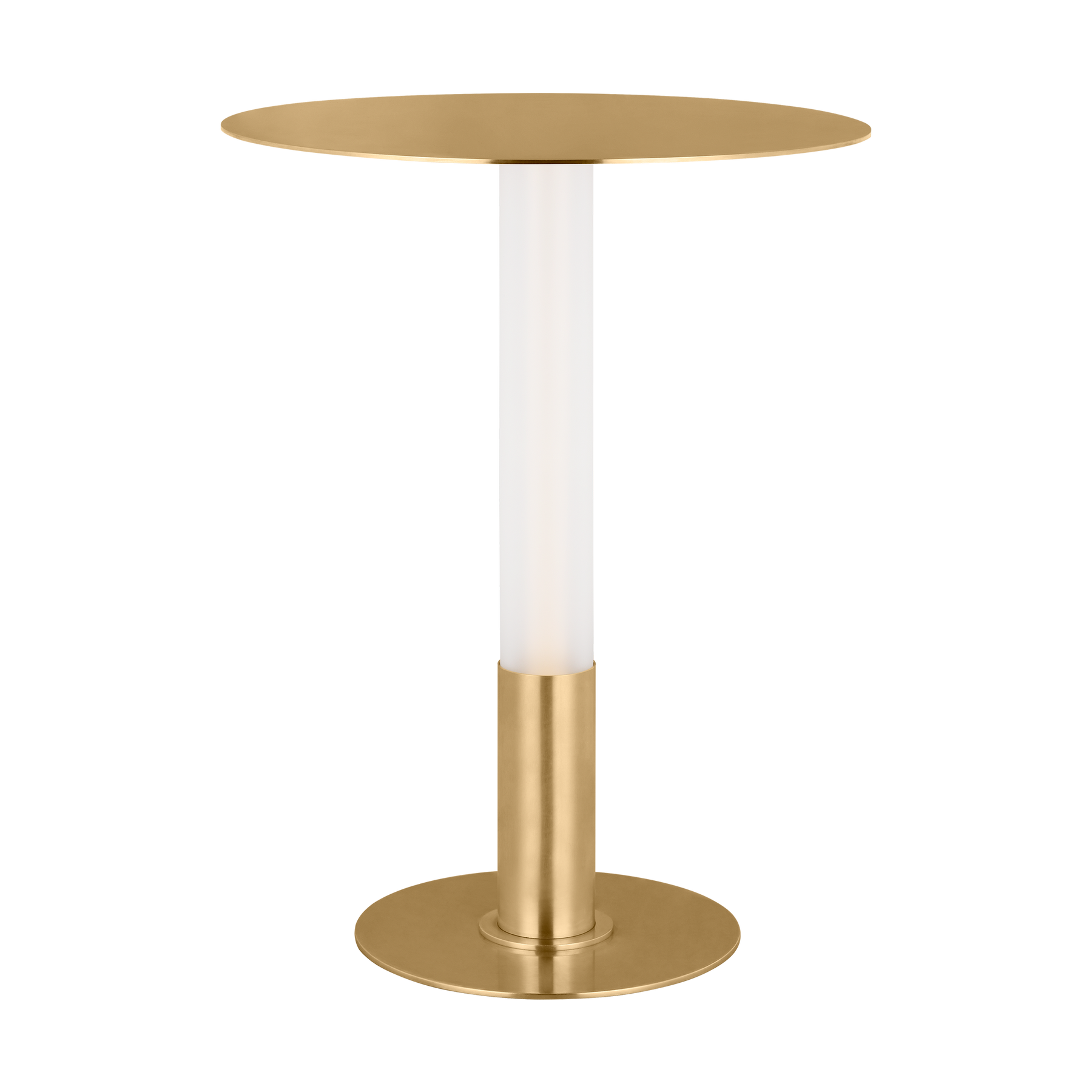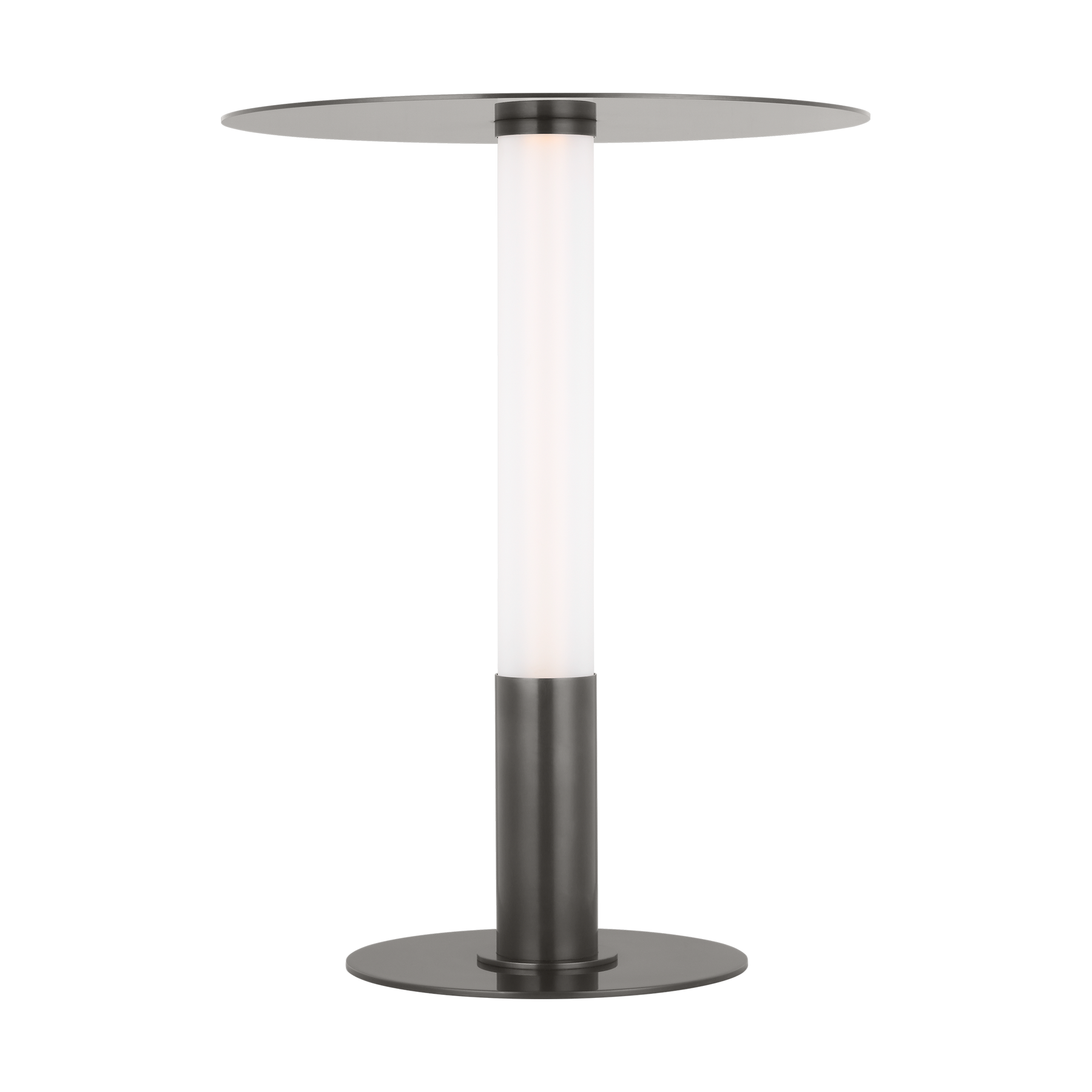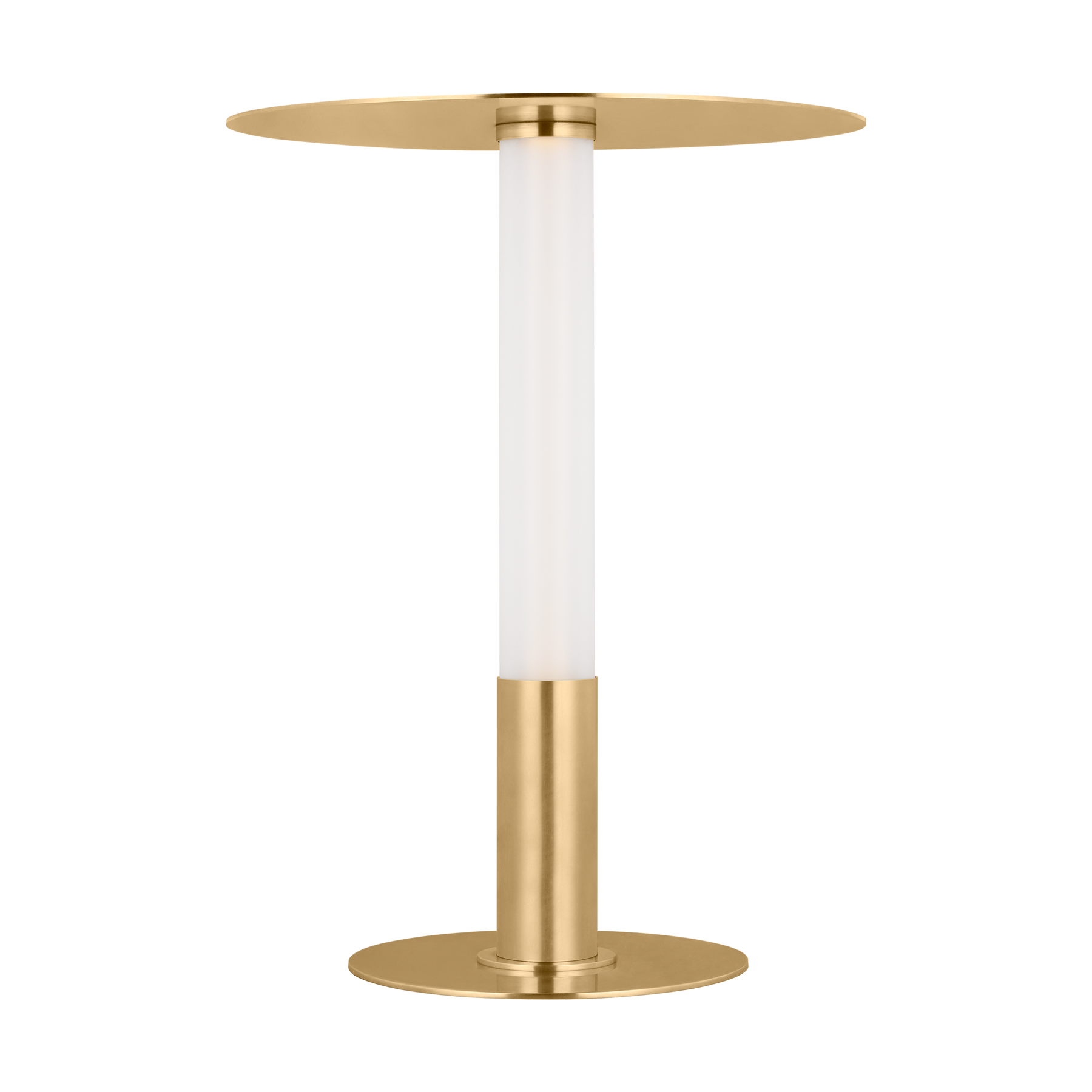 Classic bistro lamps get a modern twist with Kelly Wearstler's Miguel table lamp. Featuring an integrated warm LED light, the streamlined silhouette is completed by a reflecting-plate shade and etched glass tube that diffuse soft, indirect light. Available in tall and small/mini sizes, the compact lamp will lend contemporary shine to any space. The mini format is rechargeable and fully portable, making it ideal for spaces without outlets, like patios and shelves. A USB C to C cable allows Miguel to recharge within 5 hours with a maximum battery life of 12-14 hours. Wall charger included.