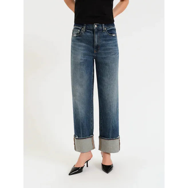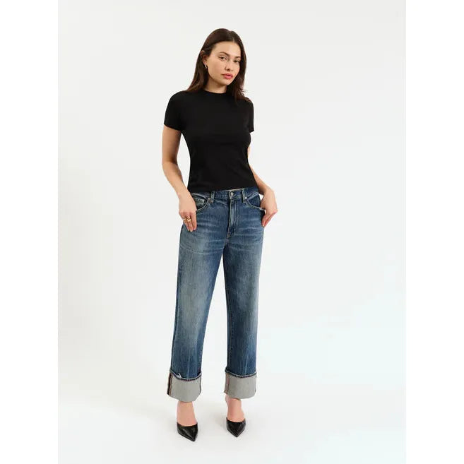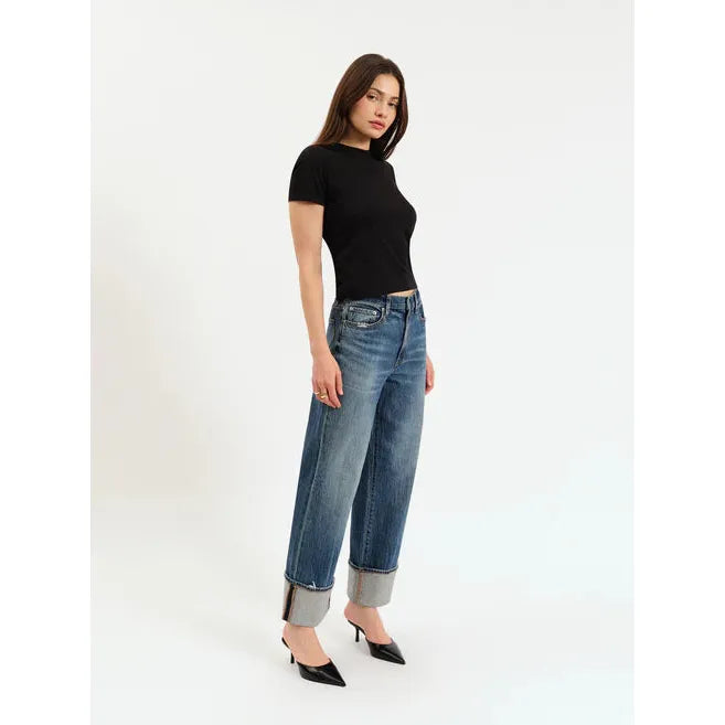 Take on the town in this versatile high rise loose jean. Rolled cuffs and authentic highs and lows add character to this it-girl fit. Constructed from our Tough Love fabric, this jean holds its shape but yields to your body in all the right ways.