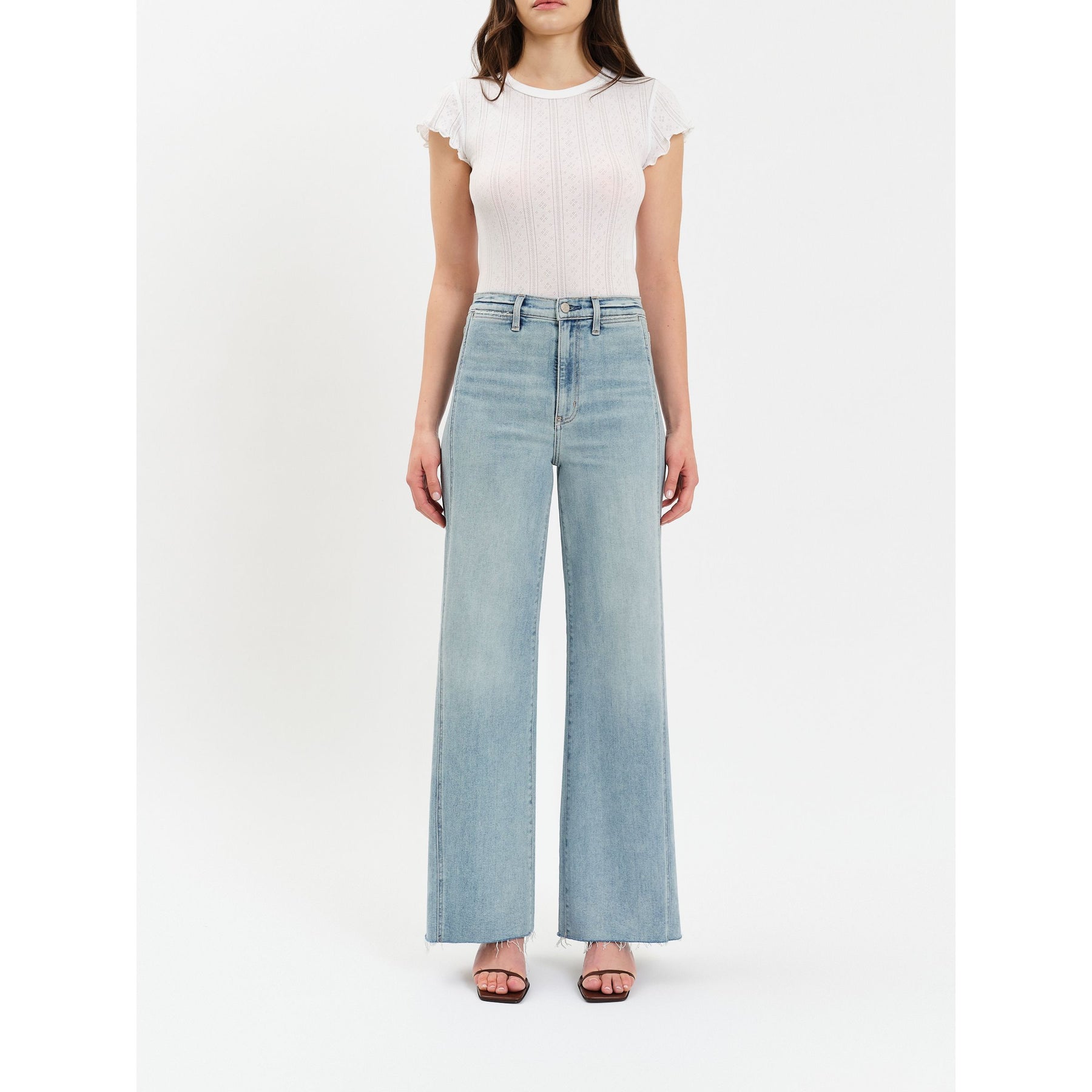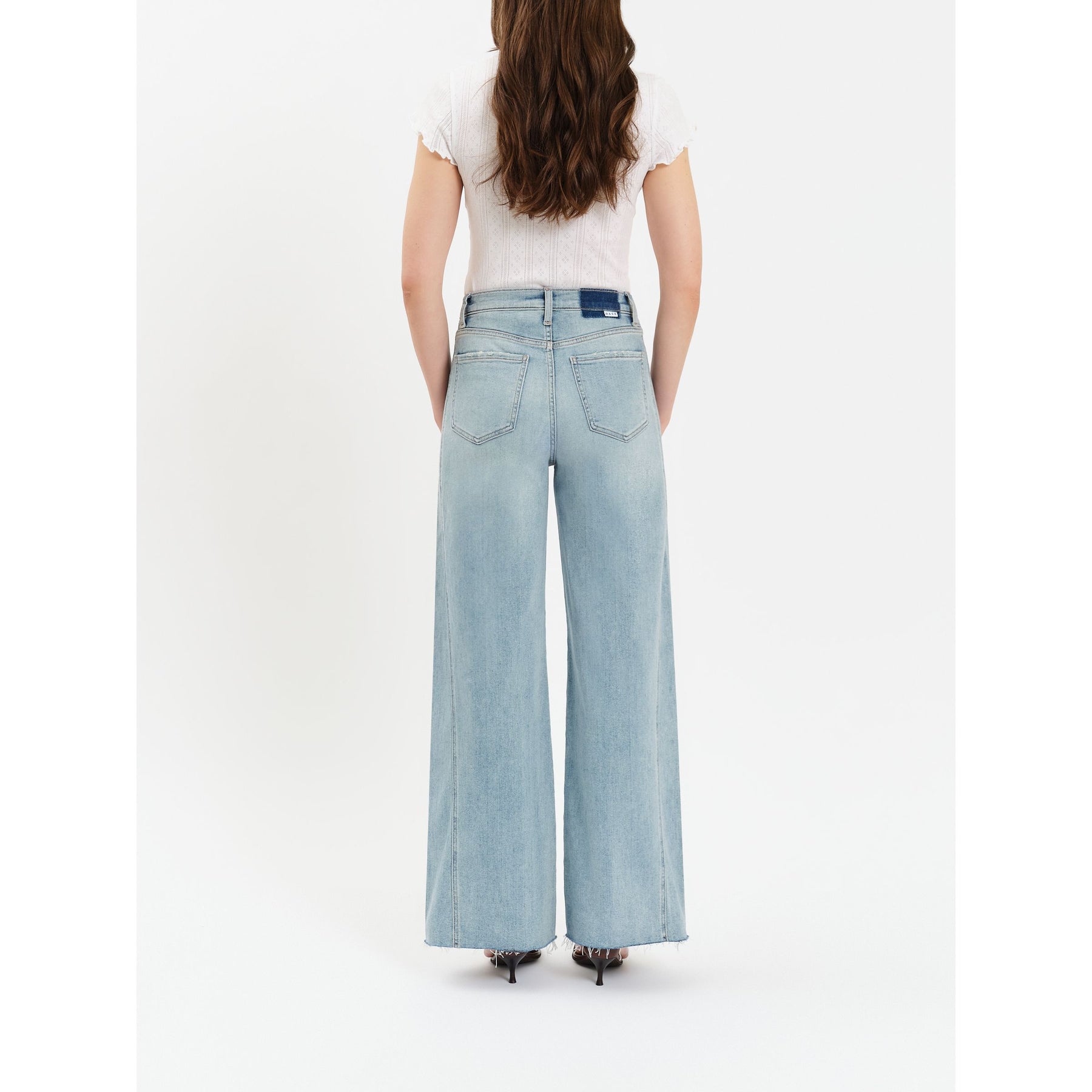 The cool girl jean, Far Out is a modern silhouette with twisted seams across the fit to give the appearance of longer legs. In a waist defining high rise, this wide leg is constructed in our "hug" denim that hugs your body, but has just enough weight to keep a structured fit.