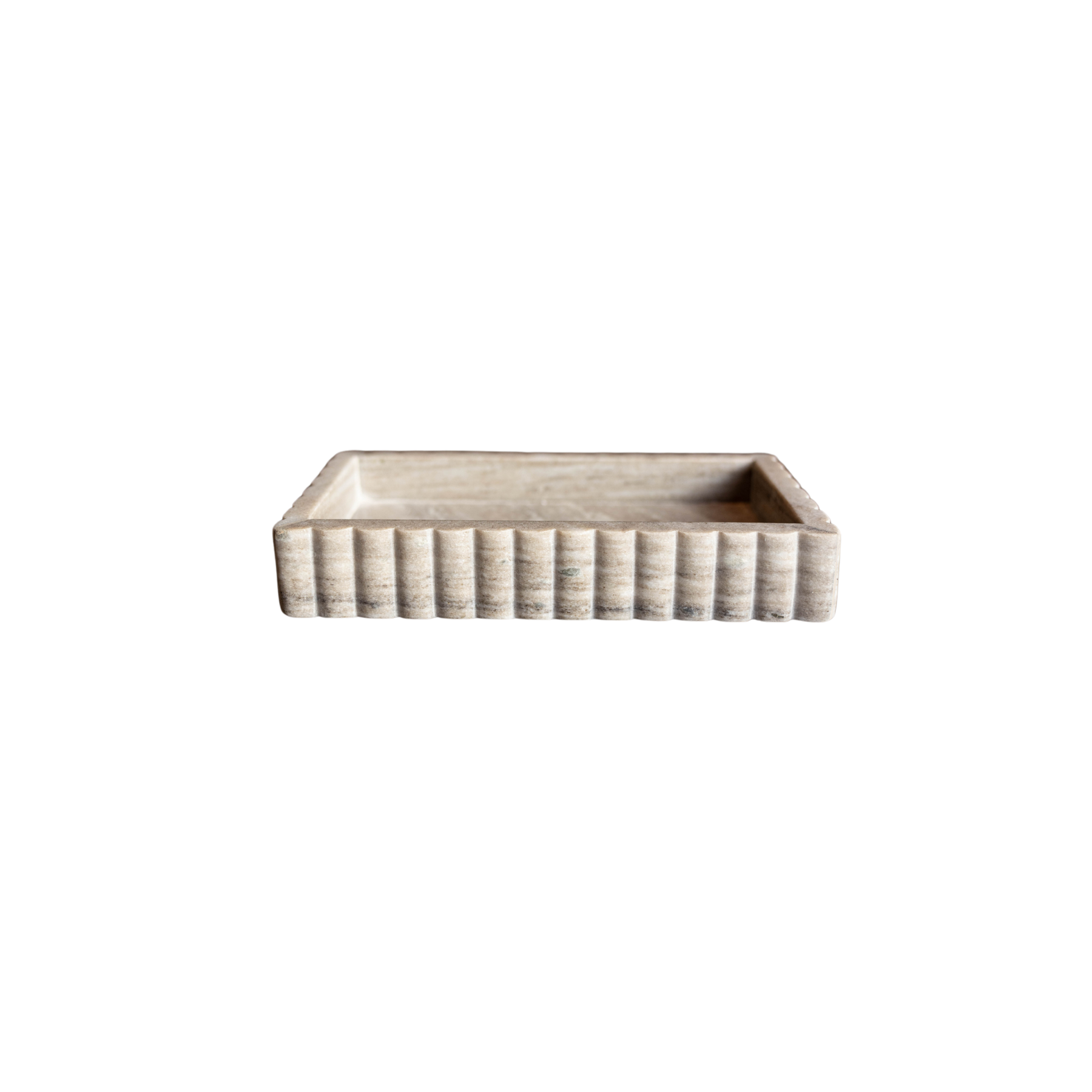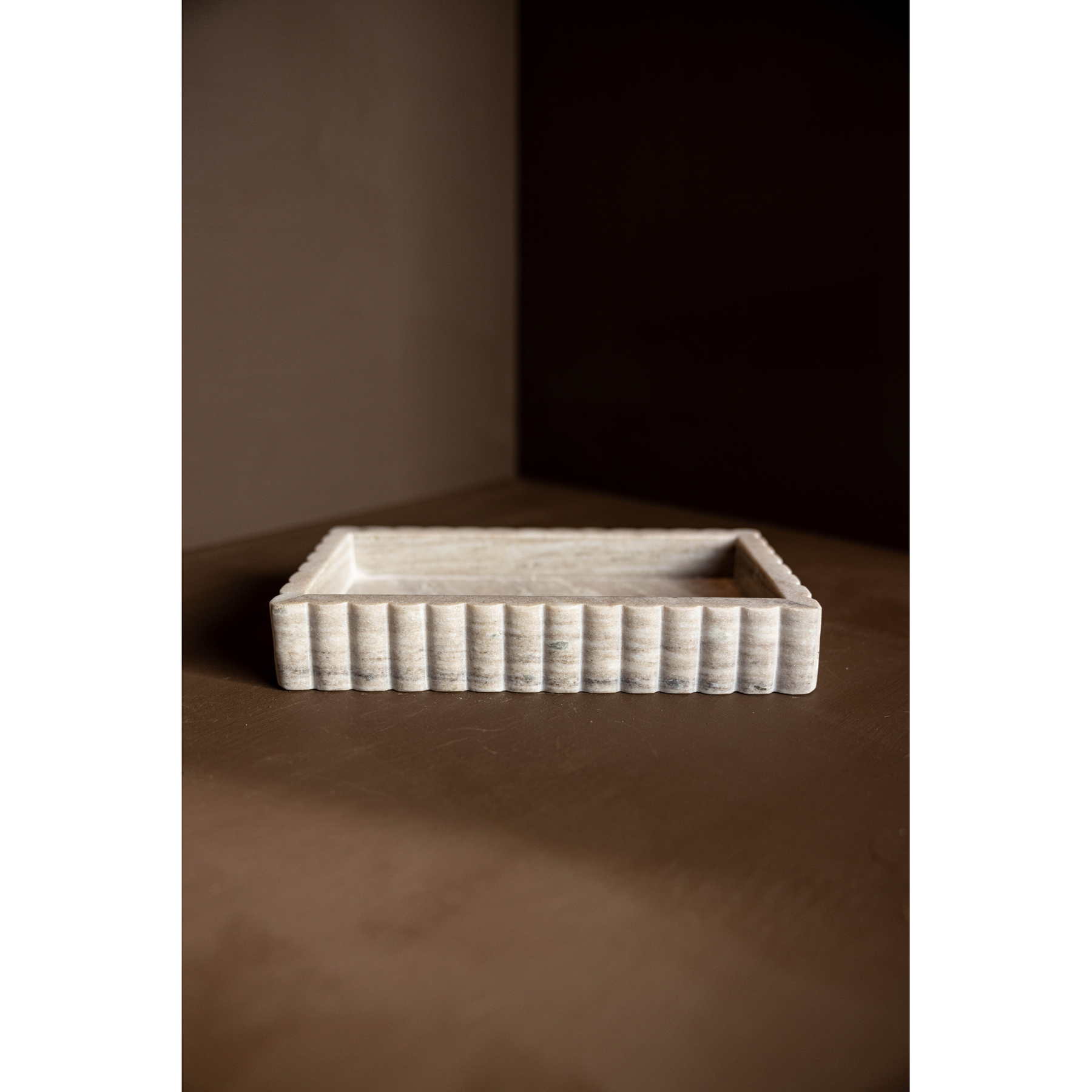 This Marble Fluted Tray features a unique scalloped design that adds elegance to any room. Made from marble, this tray is durable and easy to clean. Style it on a countertop or coffee table to group loose items.