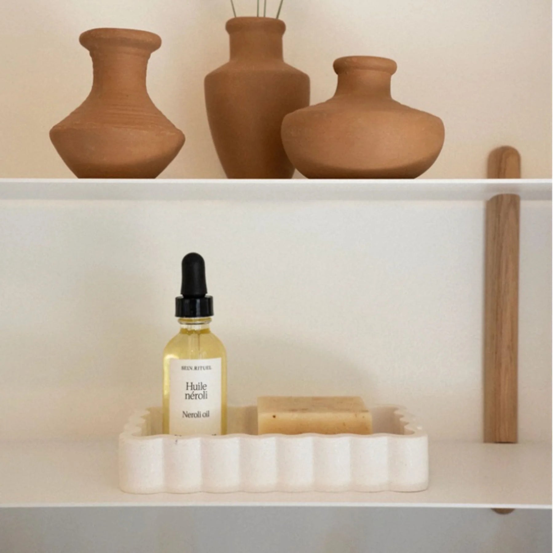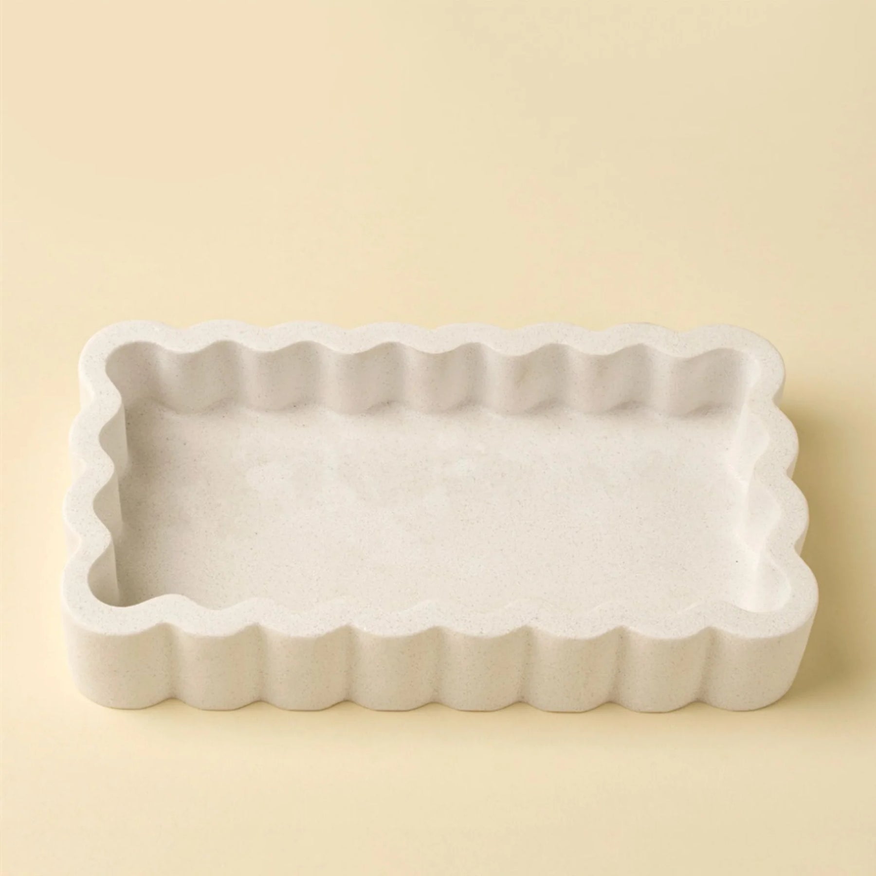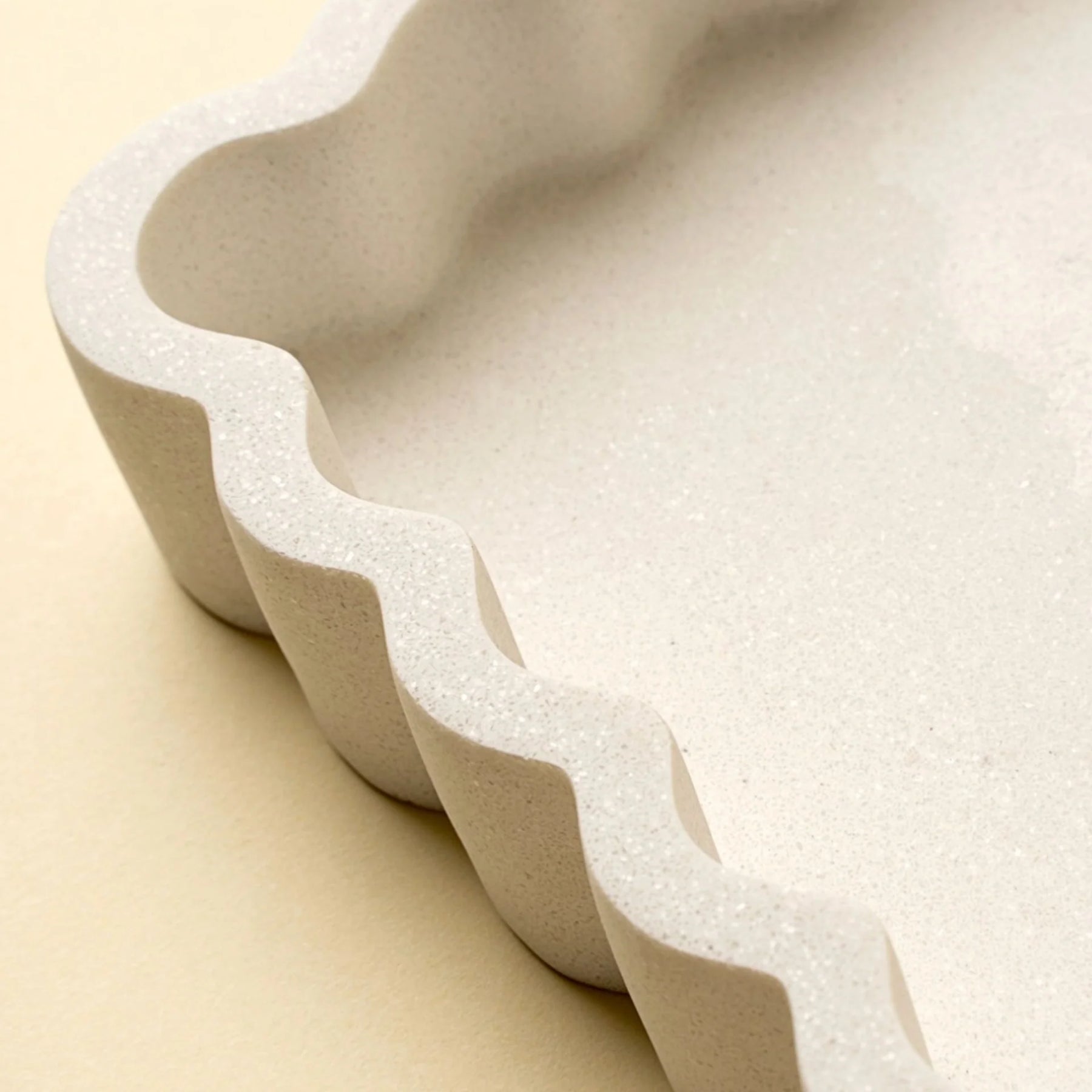 Display your favorite pieces in style with this charming Scalloped Jewelry Plate. Crafted from eco-conscious marble composite that gives powdered marble a second life, it brings sustainable elegance to any room. The playful rippled edges and delicate shimmer create visual interest while keeping your jewelry, perfumes, and treasures beautifully organized on your nightstand or vanity.
