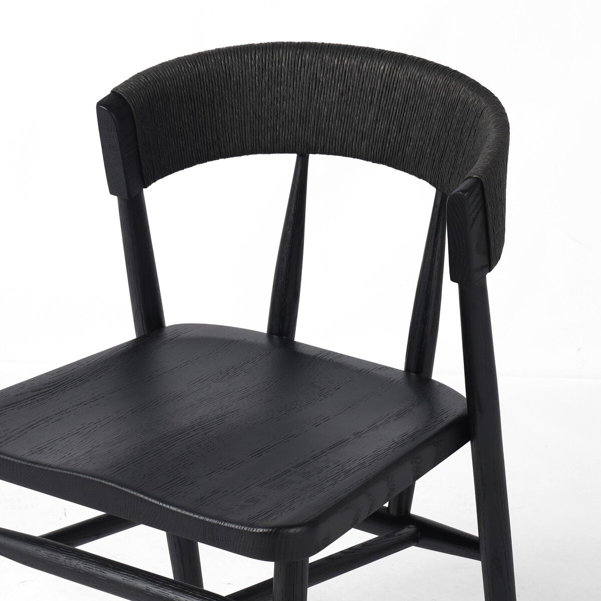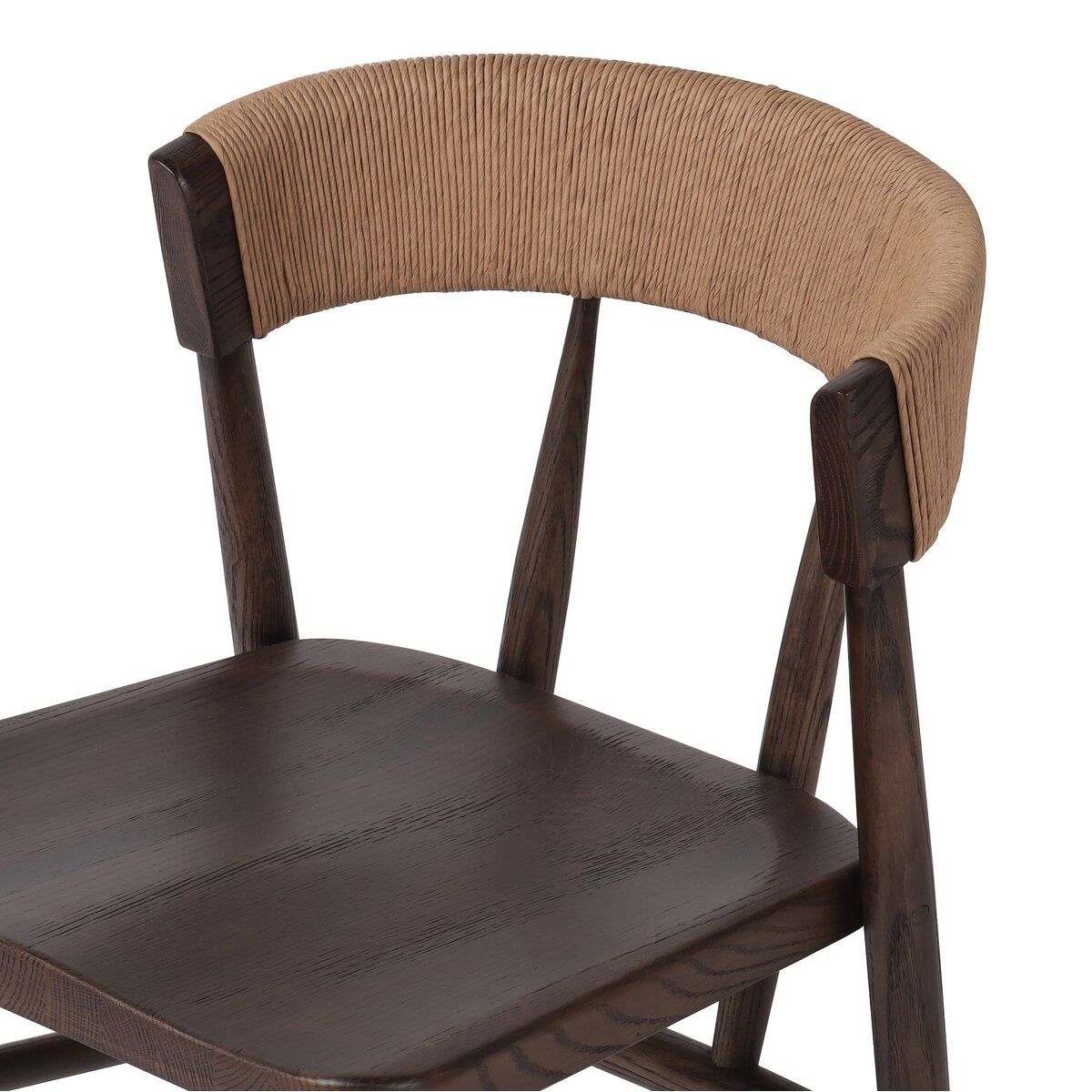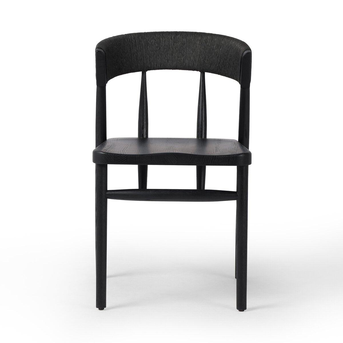 A solid oak dining chair defined by tapered legs and framing gives an updated look to the classic whistler chair. Finished with a paper rush wrapped detail on the back.