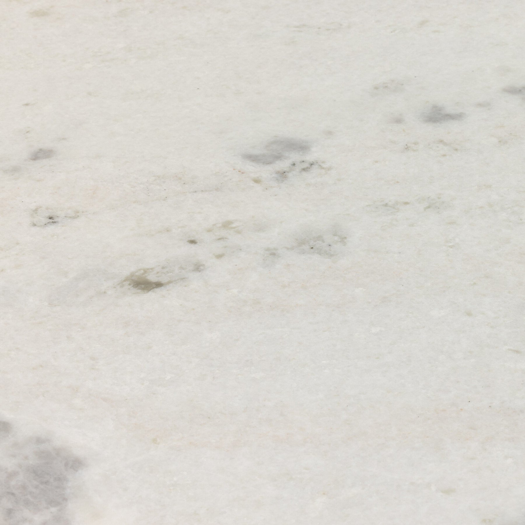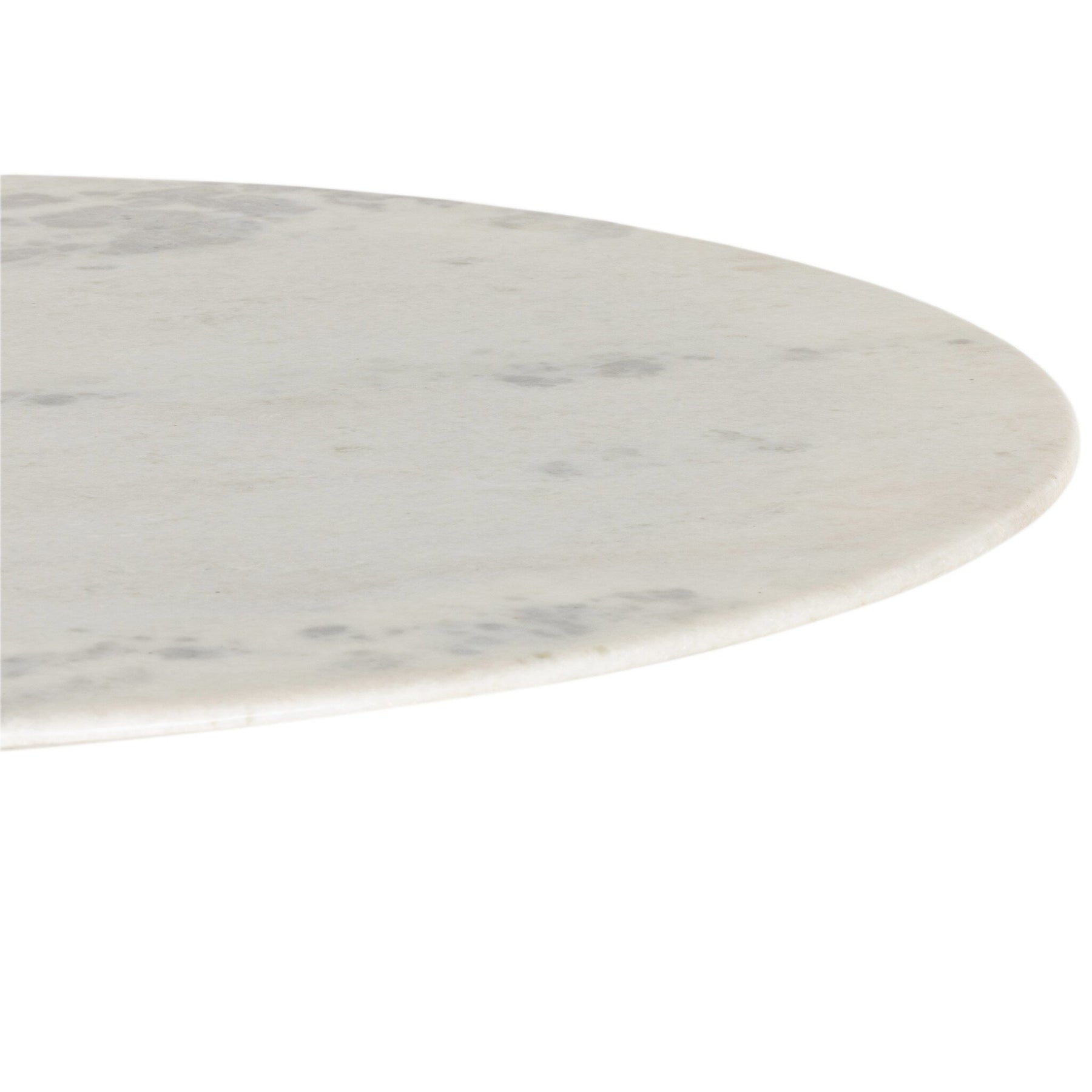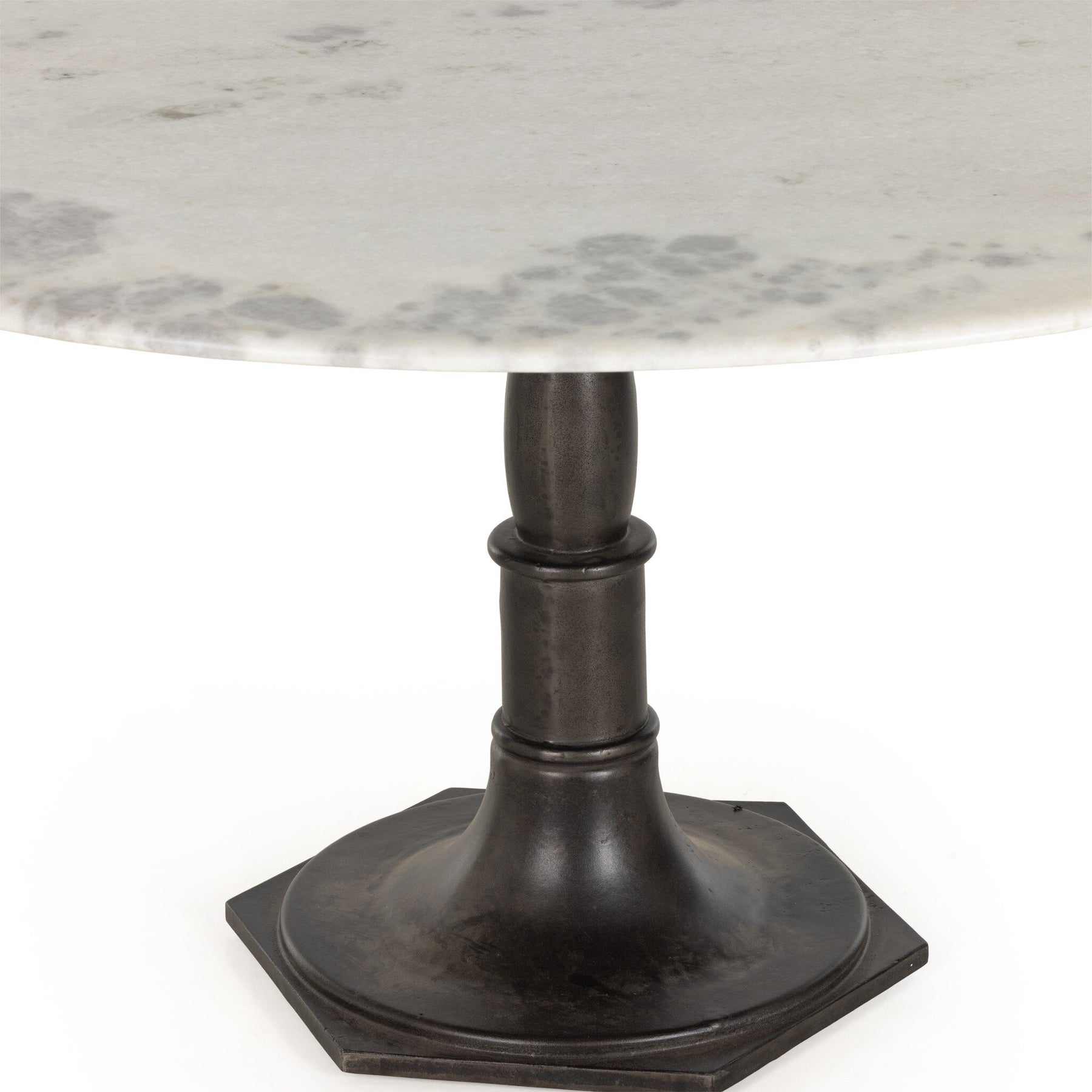 Opt for a French Industrial-inspired dining table. A beautifully detailed eight-sided cast iron pedestal supports a dramatic white marble top with bull-nose edging. Seats six comfortably.
