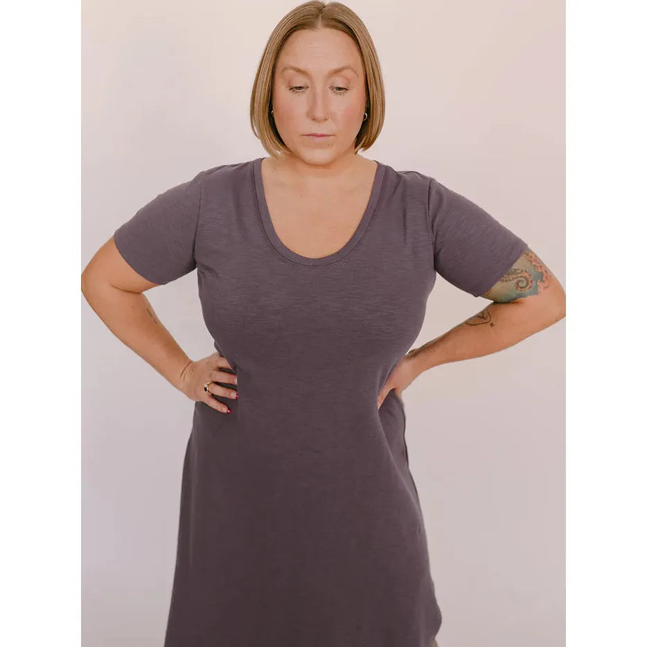 The Field Dress is what dress dreams are made of. We all want that dress that we can reach for on any occasion that flatters, is comfy and washes nicely and the Field Dress is that! Nice t-shirt sleeve length, scoop neck, relaxed body with contoured hem that cuts up on the sides. Throw on your jean jacket, a cropped cardi or dress it up with a leather jacket and you are good to go. Fun tip: try knotting the front for a beachy vibe.