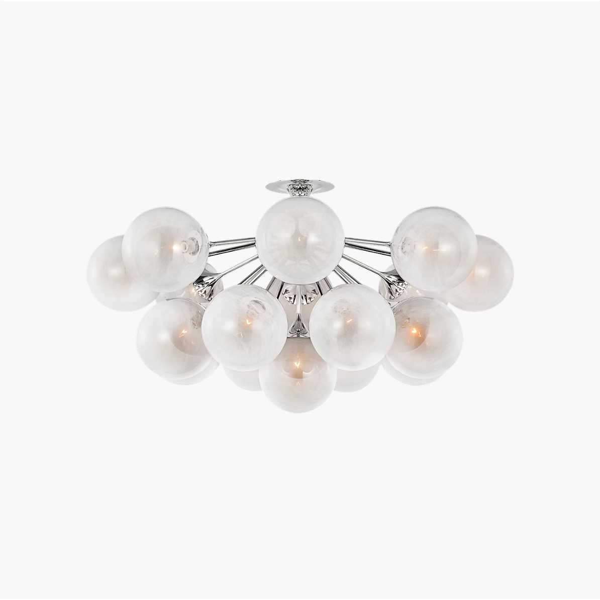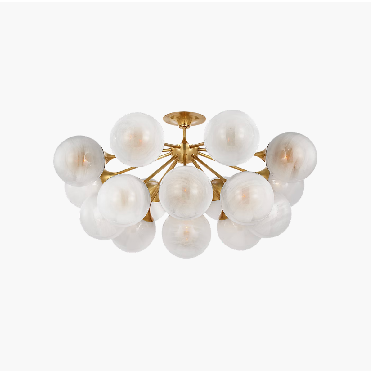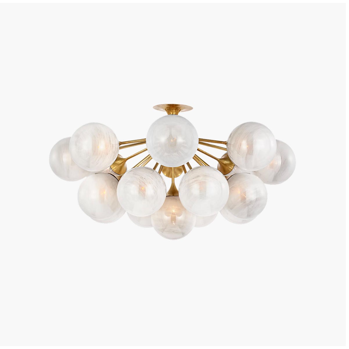 The Cristol by AERIN adds both old-world glamour and contemporary design to any interior. Larger rooms can be dramatically illuminated by tiered chandeliers, and smaller spaces will come alive with flush mount lighting and single or double wall sconces. The hand-blown strié glass globes confer an other-worldly refinement, while sculptural, modern fixtures in antique brass or polished nickel add new-world charm.