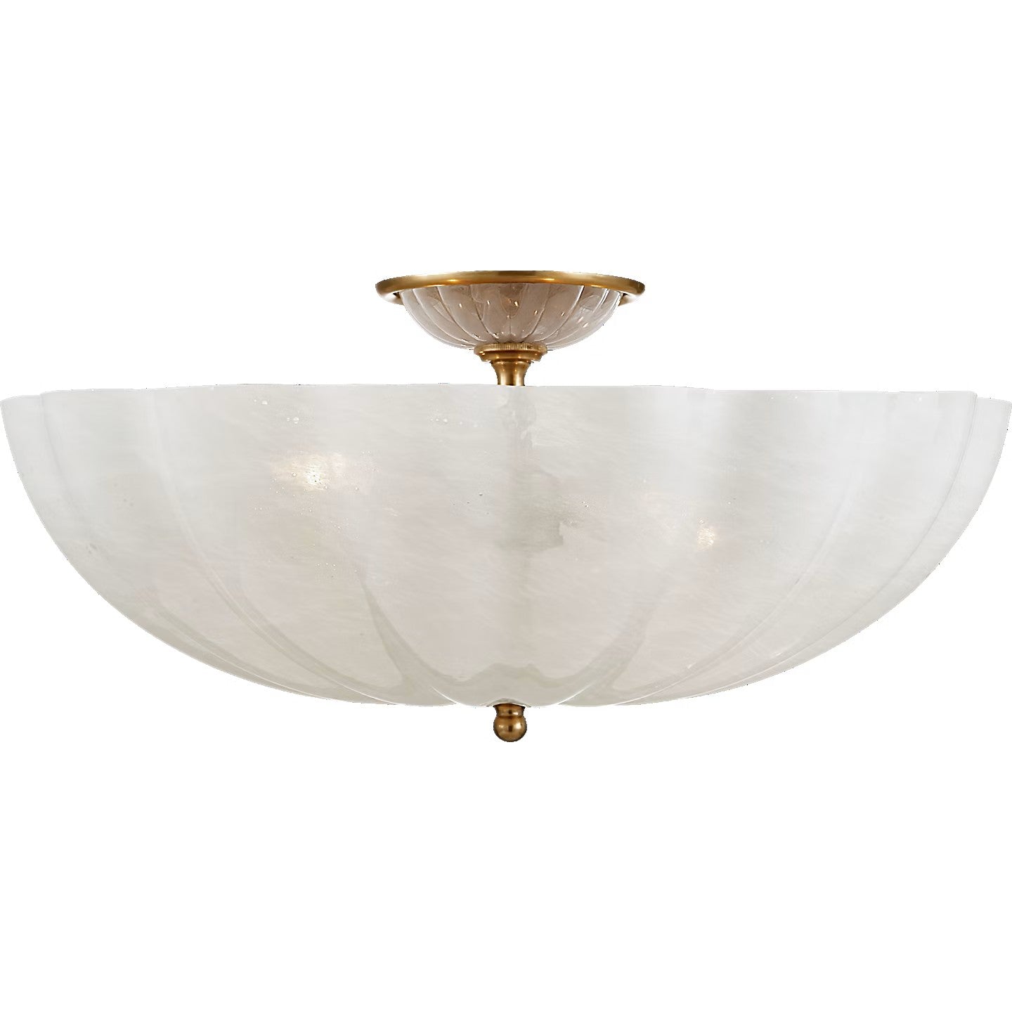 The Rosehill by AERIN exudes a subtle, feminine grace. Its minimalist design pairs scalloped white strié glass with understated metalwork in either polished nickel or antique brass. It emits a warm, inviting glow to minimalist spaces or period rooms.