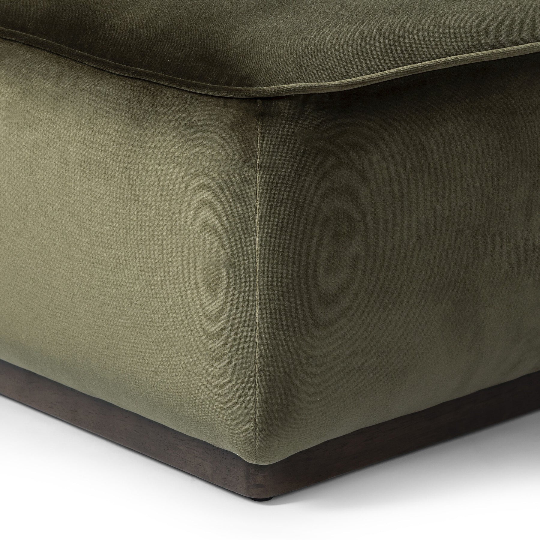 Upholstered in rich top-grain leather with a visible grain and paired with a subtly distressed parawood base, this large, rectangular ottoman brings a hip retro vibe. Style with a tray as a design-forward coffee table.
