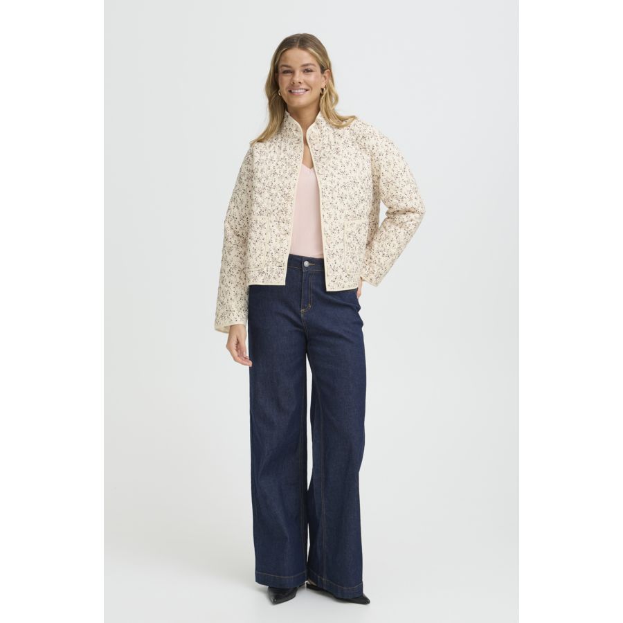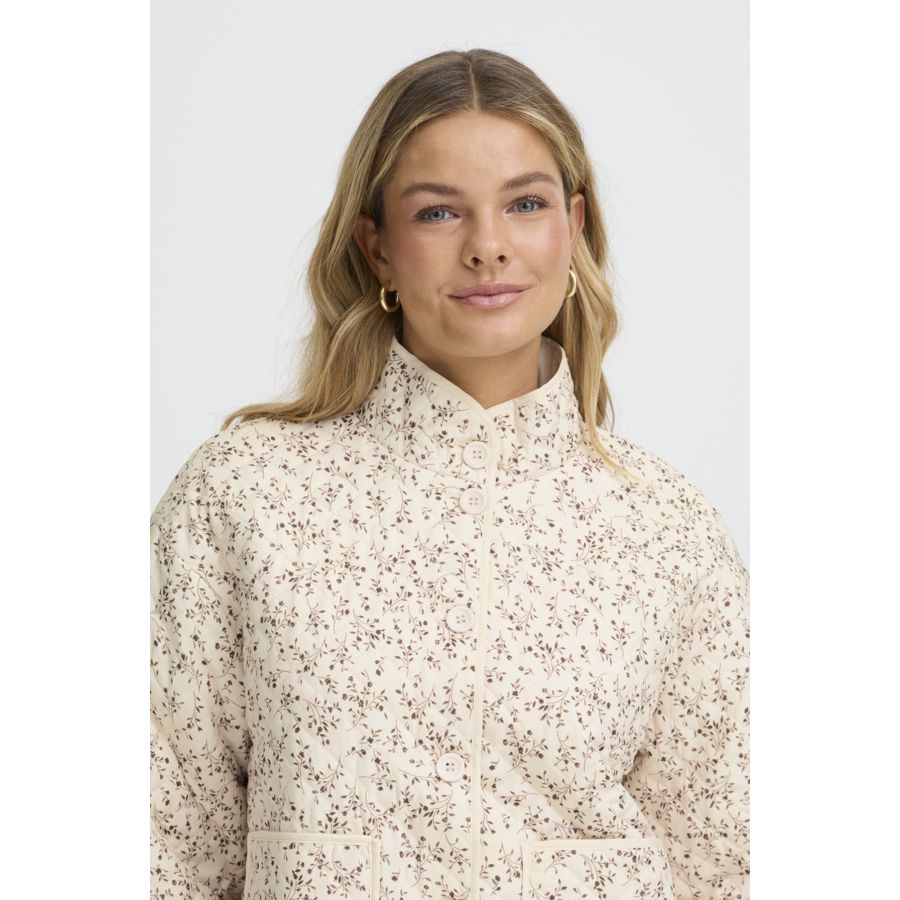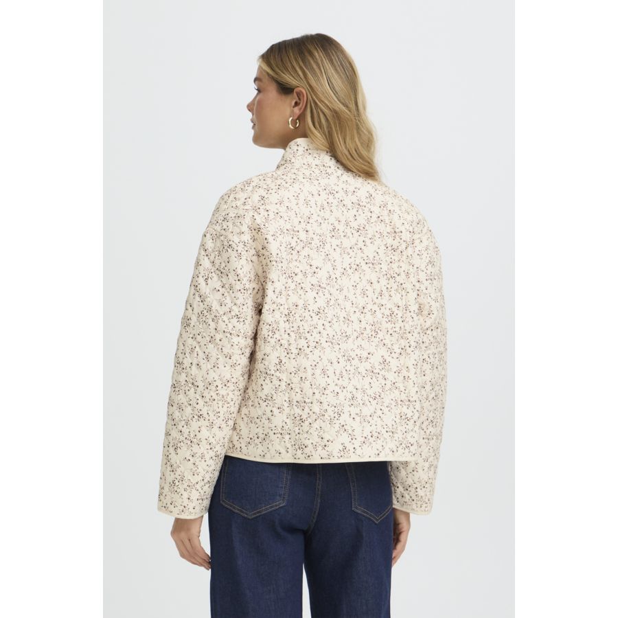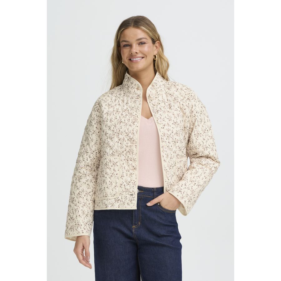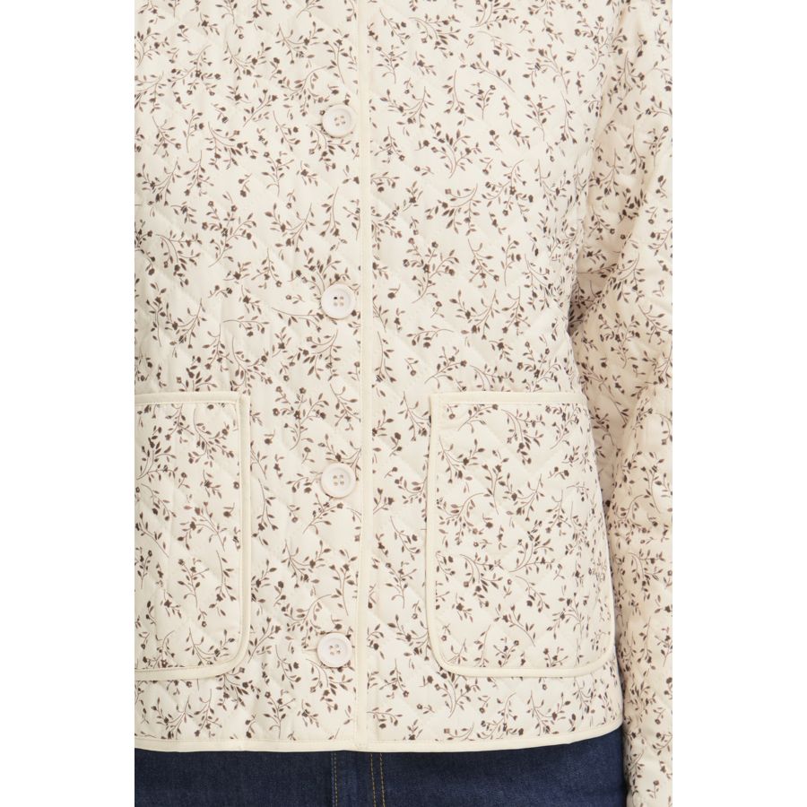 This women's quilted jacket features a relaxed, short fit and stand-up collar. Front button closure and large patch pockets offer practical style for versatile, everyday wear with comfort and modern appeal.