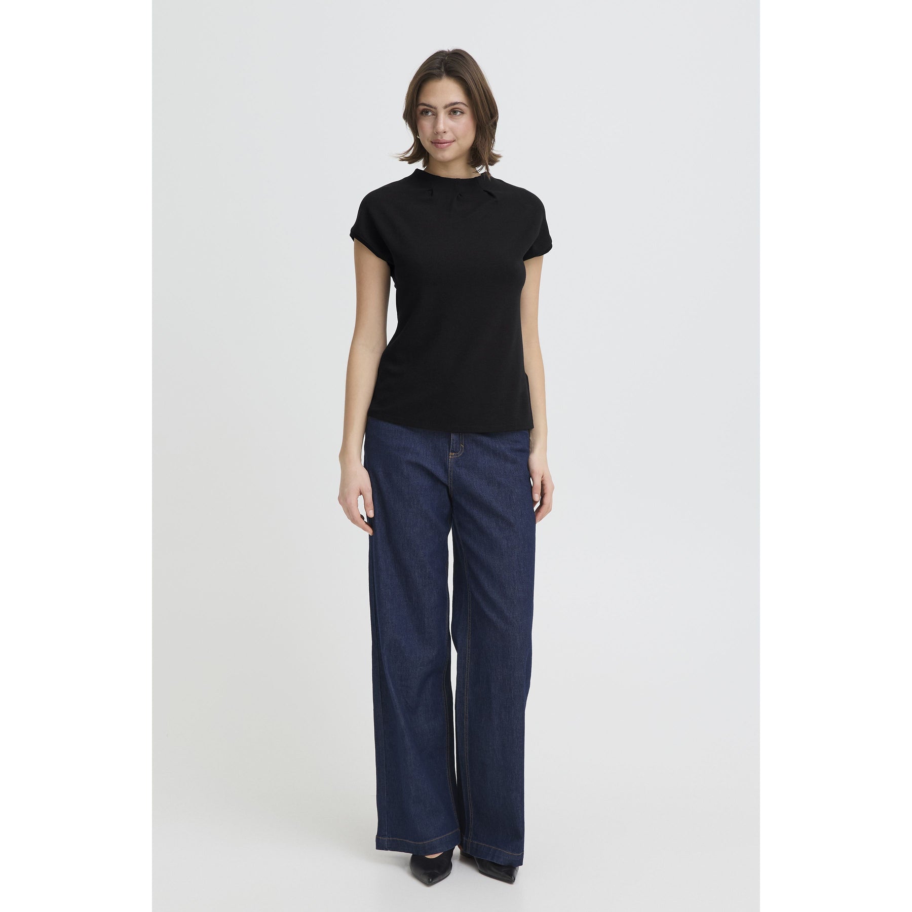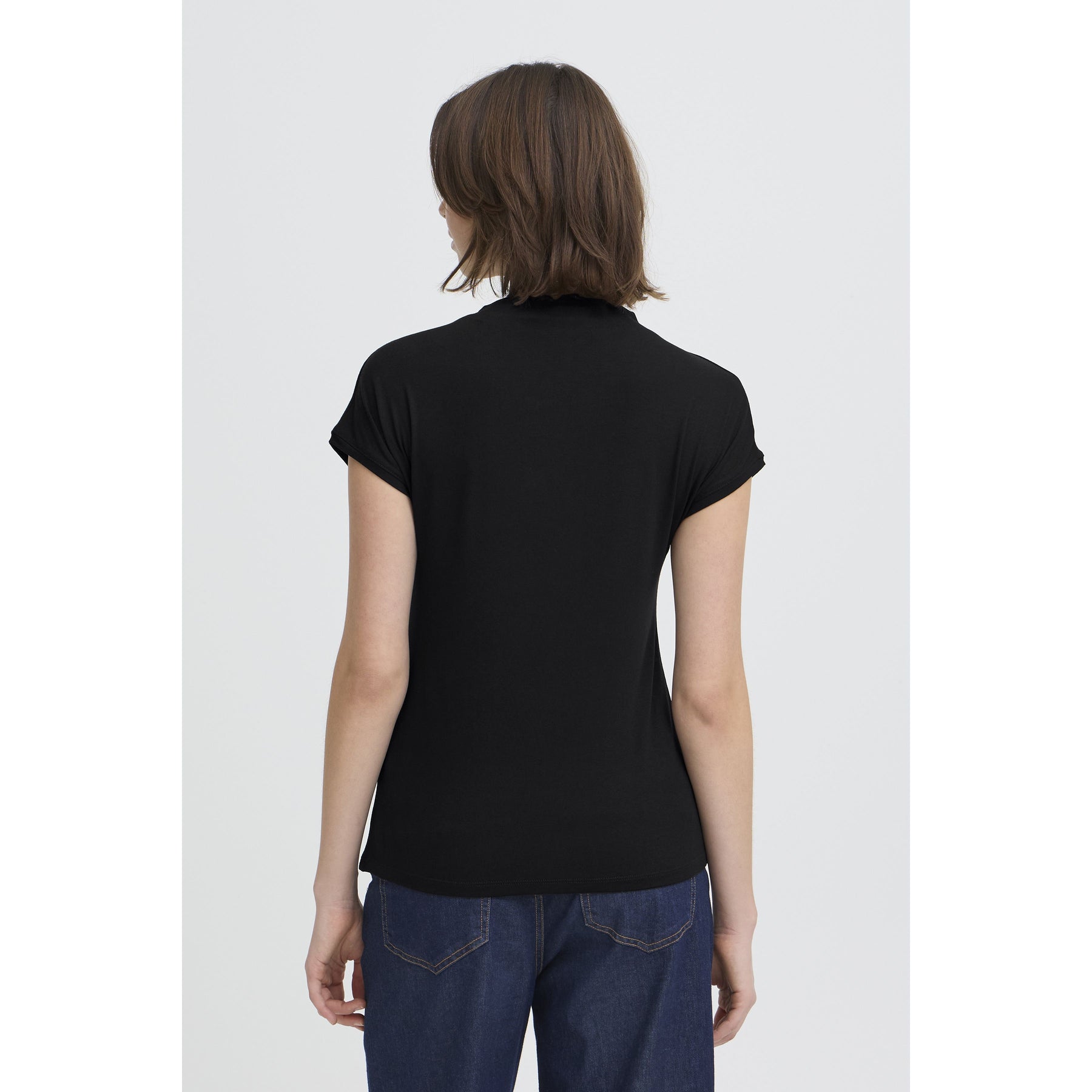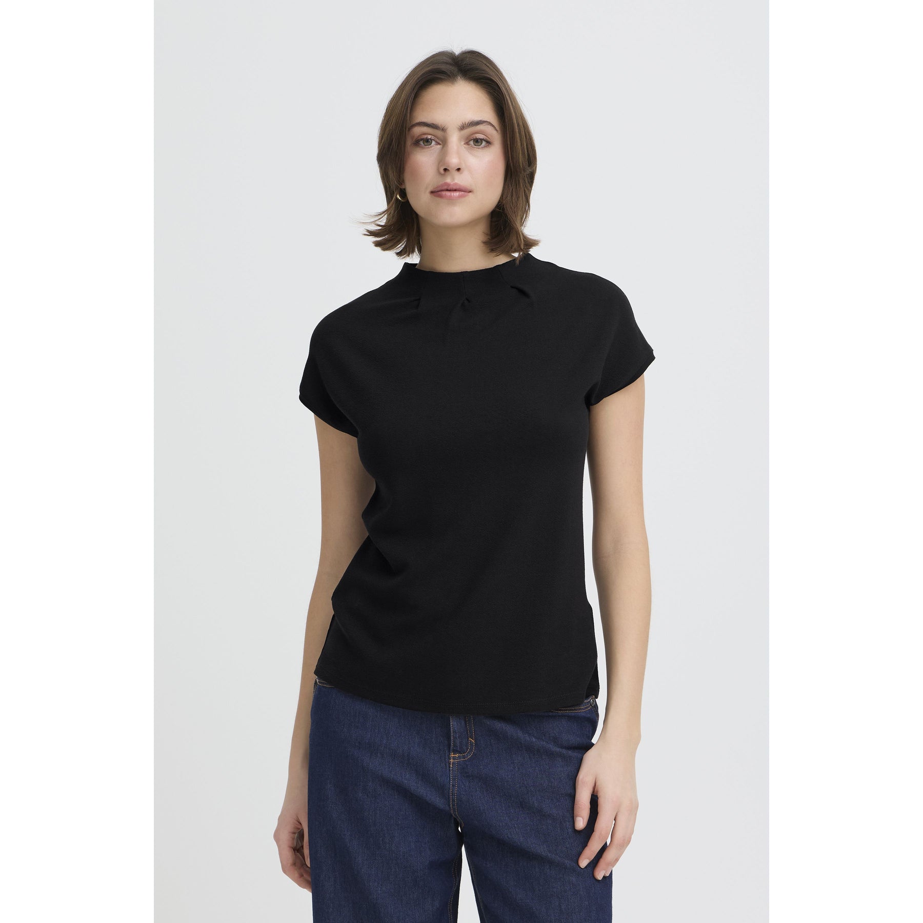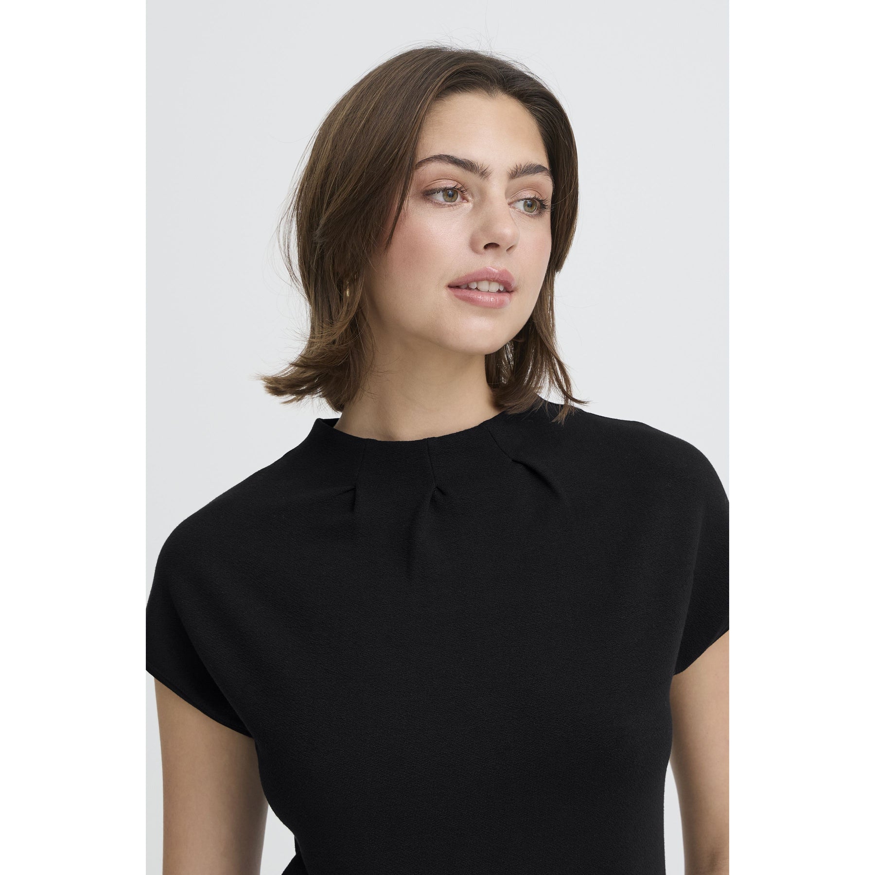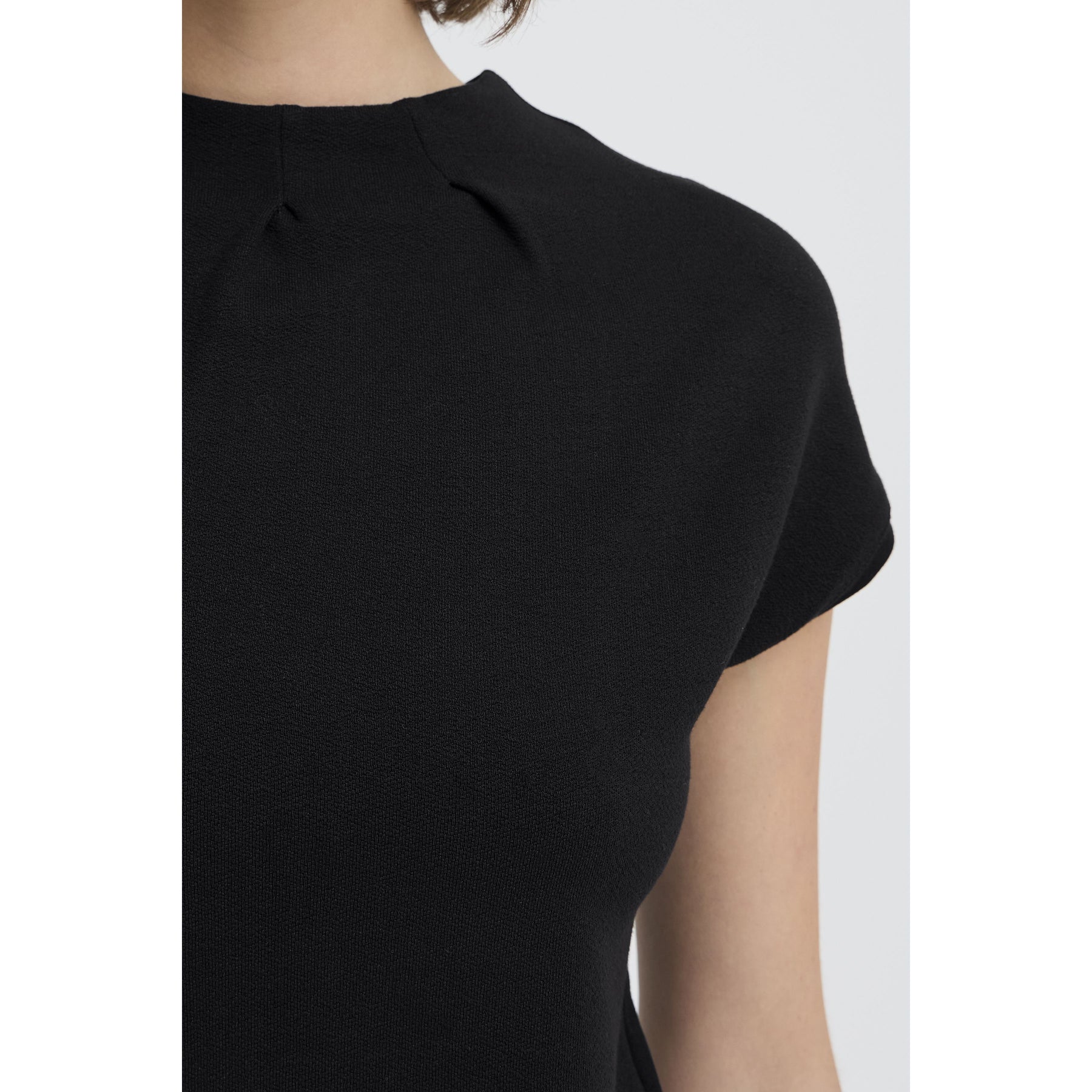 This short sleeve top features a structured mock neck with subtle front pleat and a straight, regular fit. Crafted in a smooth, soft finish for a modern, streamlined silhouette.