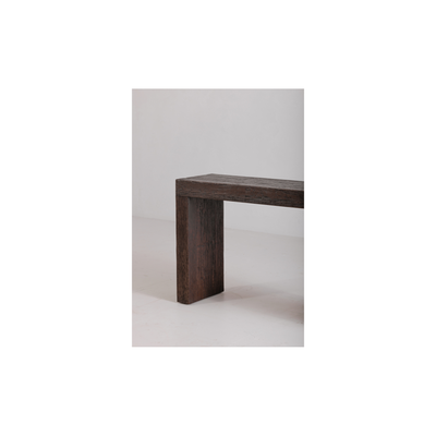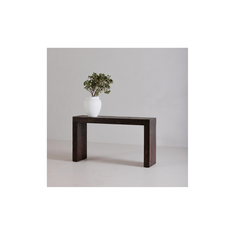 Hand-painted and crafted from solid reclaimed oak, beautiful natural grains, knots and imperfections take center stage with the Eva console table. Its modern, blocked construction balances rustic and contemporary design with organic energy, adding character and warmth to any space.