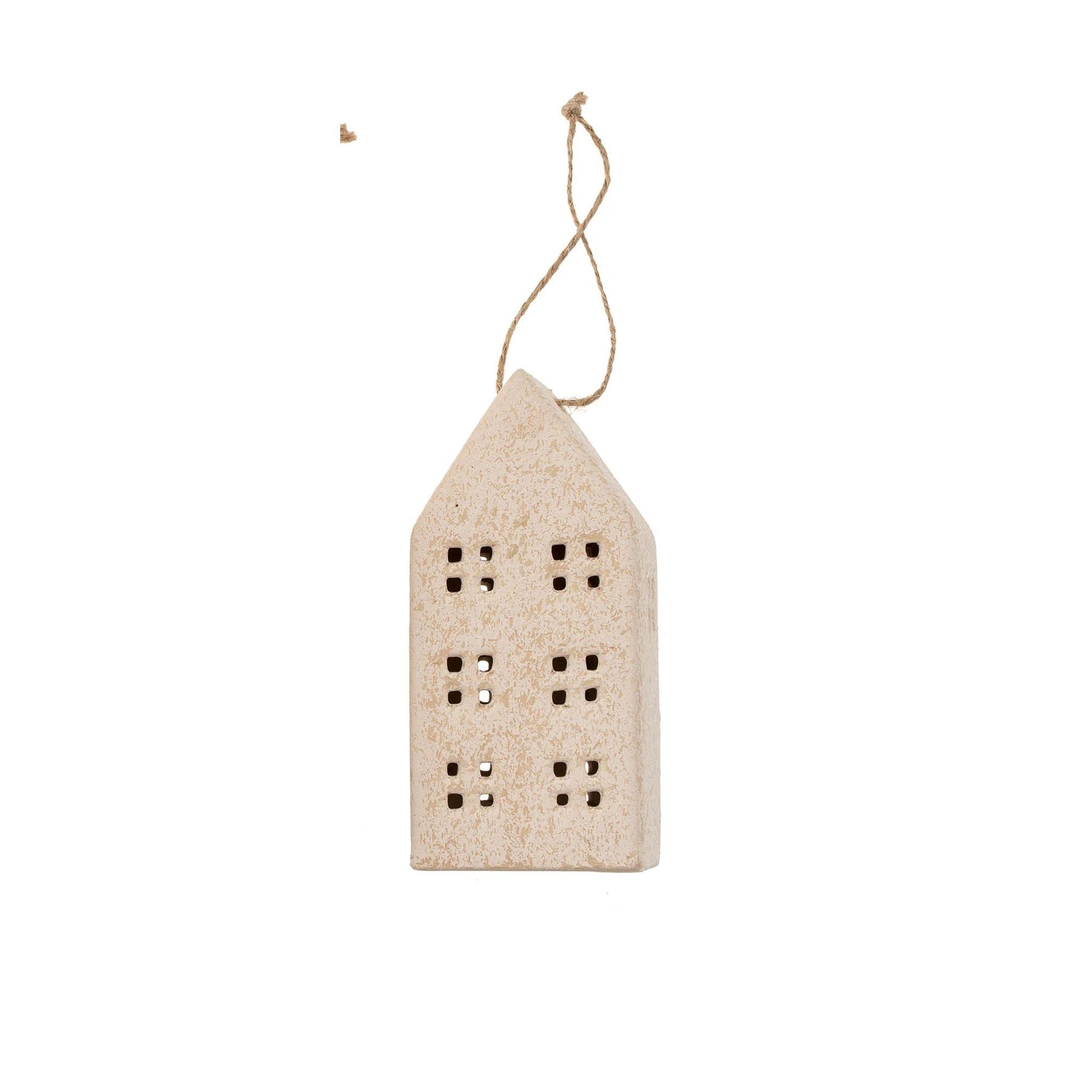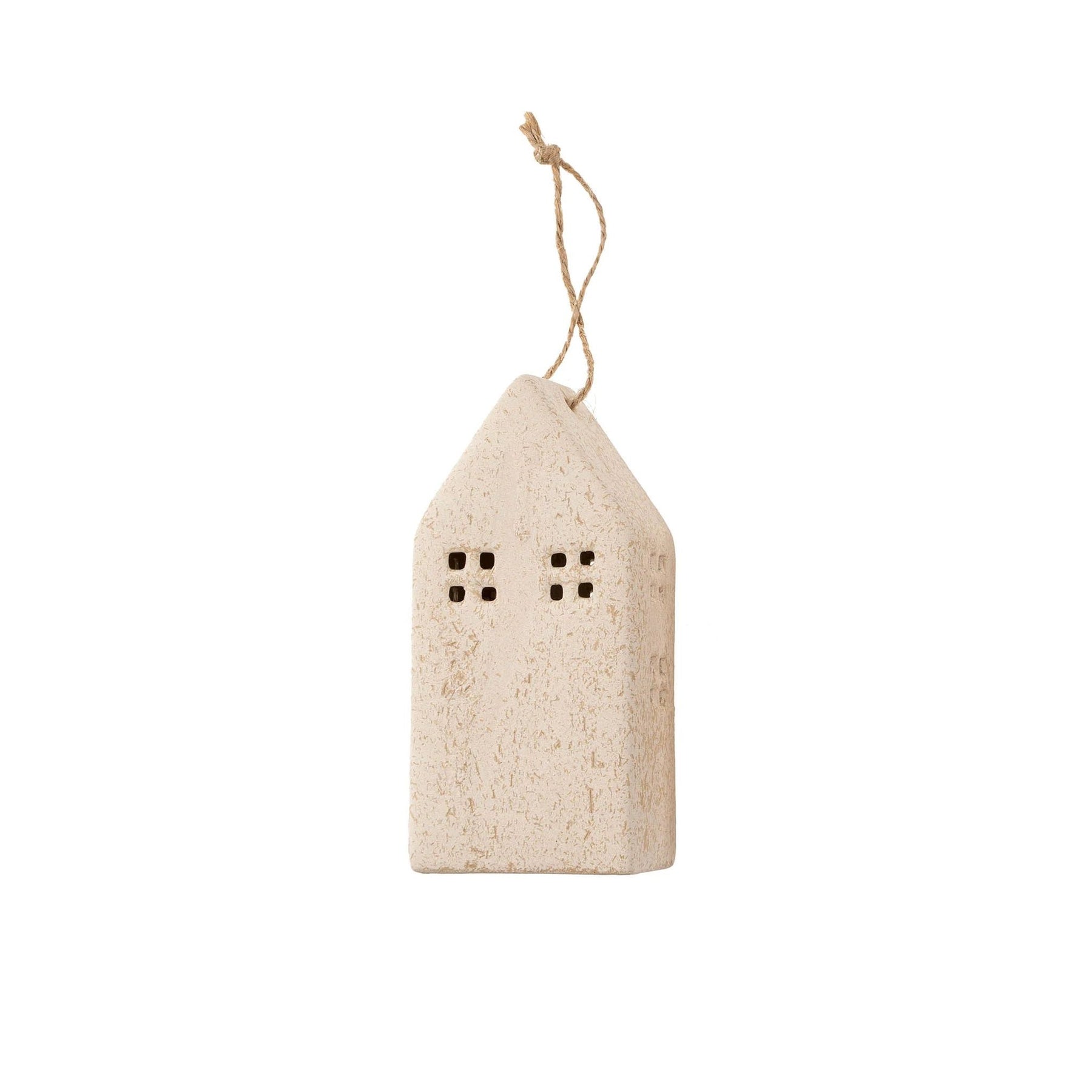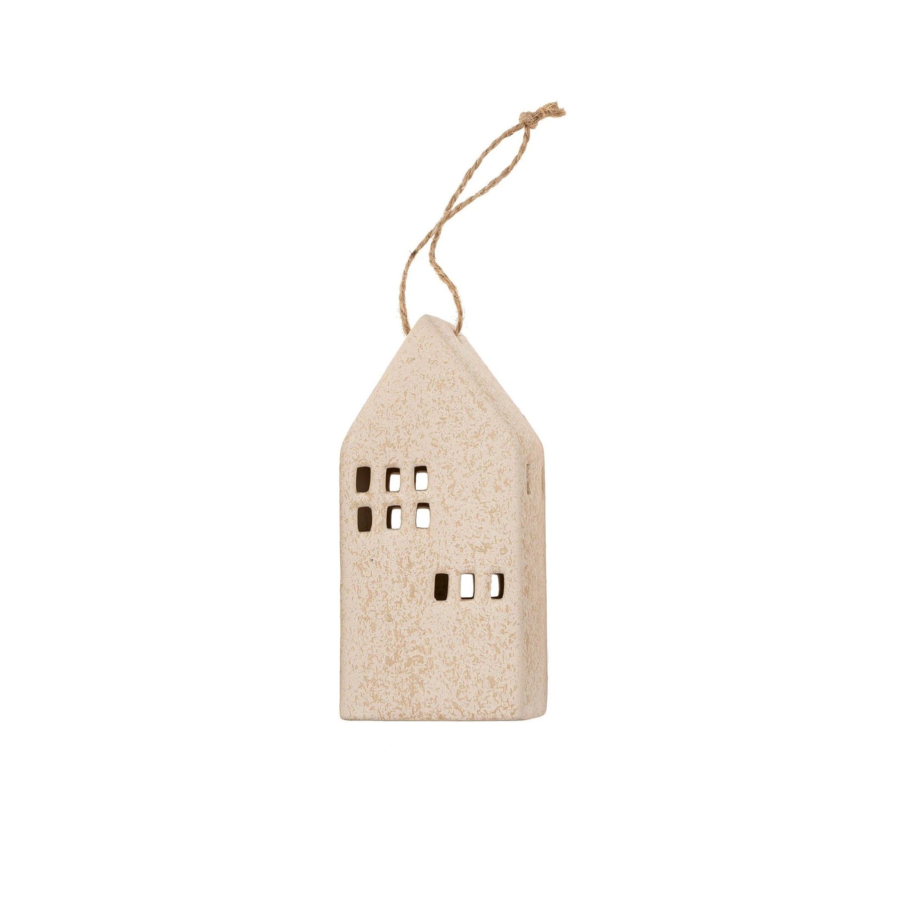 The cream Ceramic House Ornaments bring warmth and nostalgia to holiday decor. The house-shaped ornaments features different window styles, adding variety and charm to Christmas trees, mantels, or festive displays. Crafted from ceramic with an organic matte finish, these ornaments exude a soft, timeless appeal. Whether hung on the tree or styled on a shelf, they create a cozy holiday atmosphere.