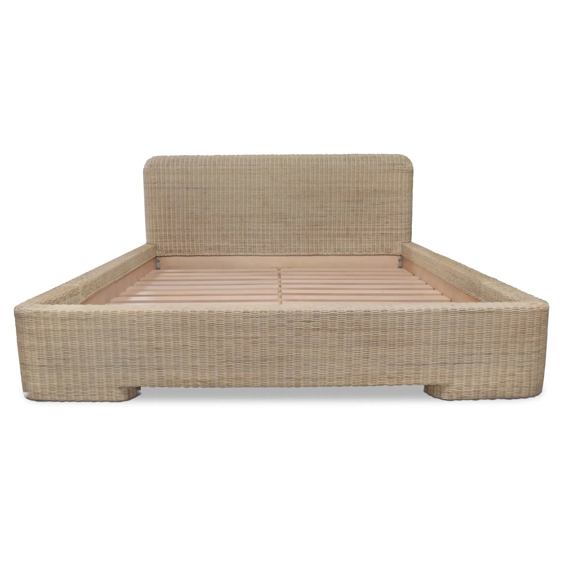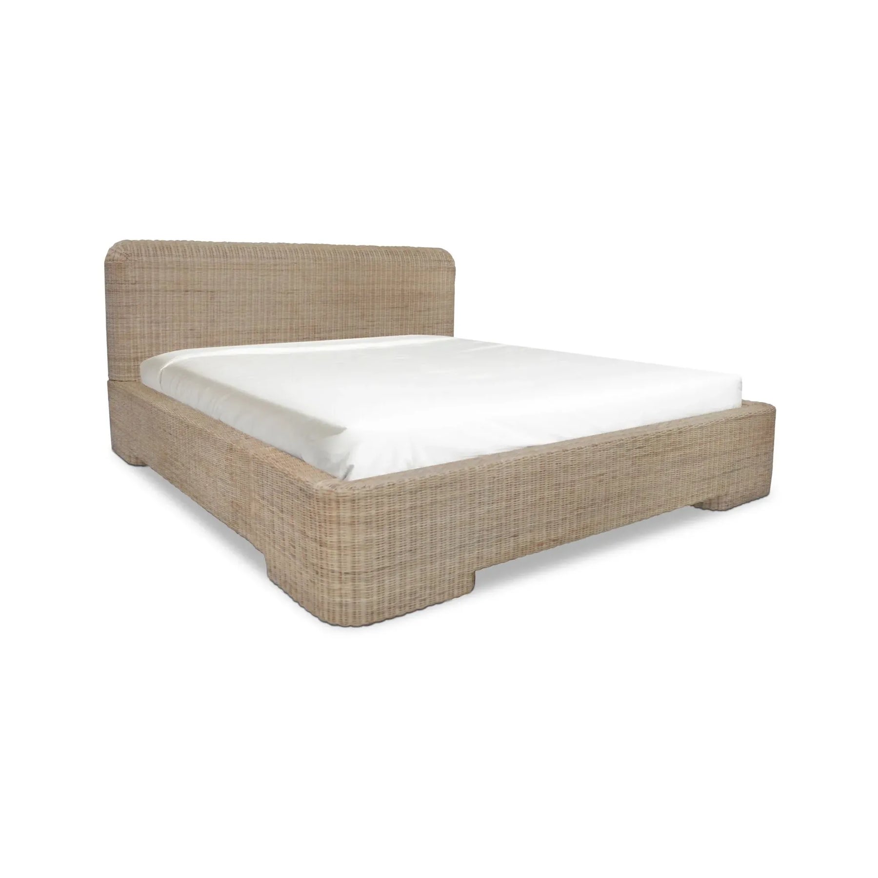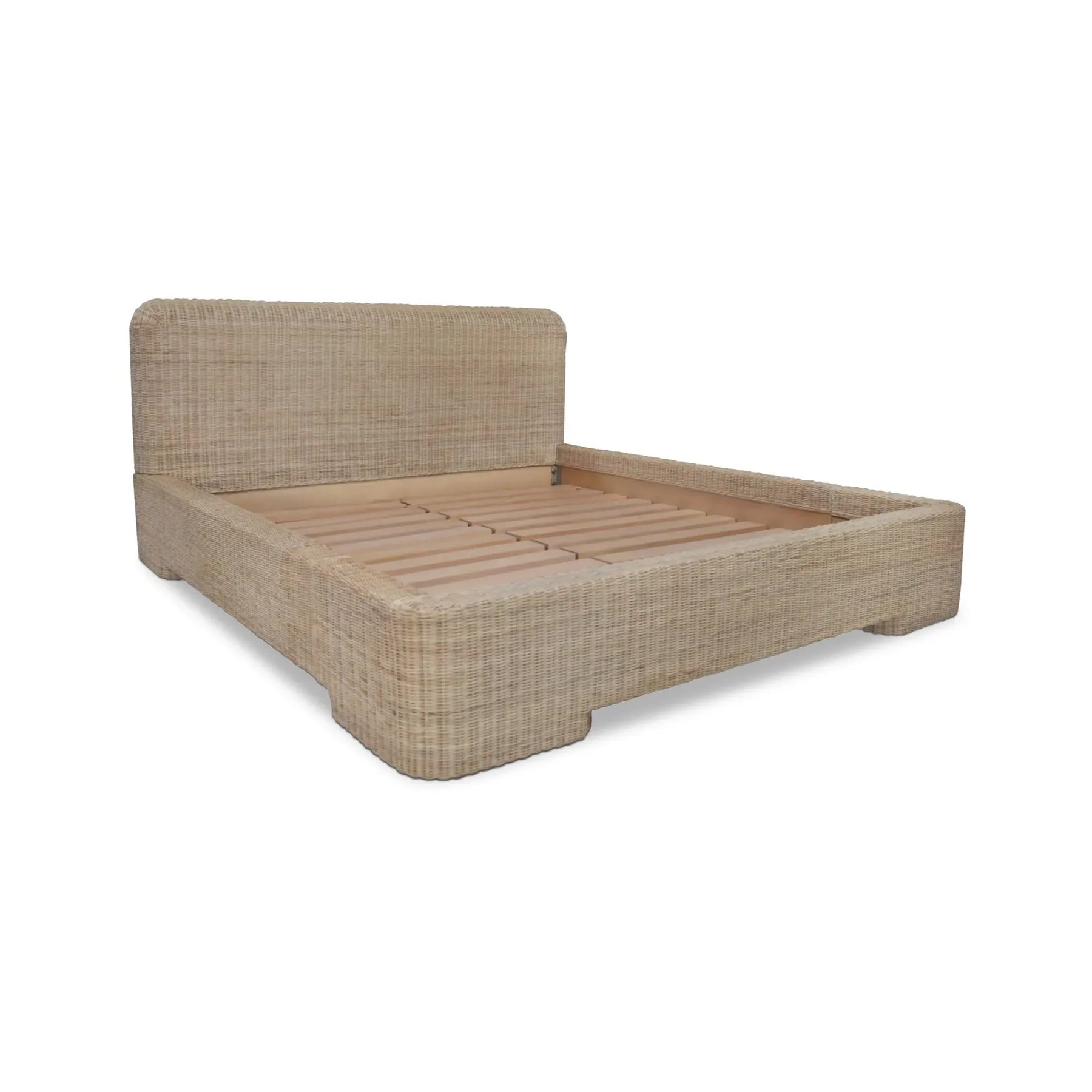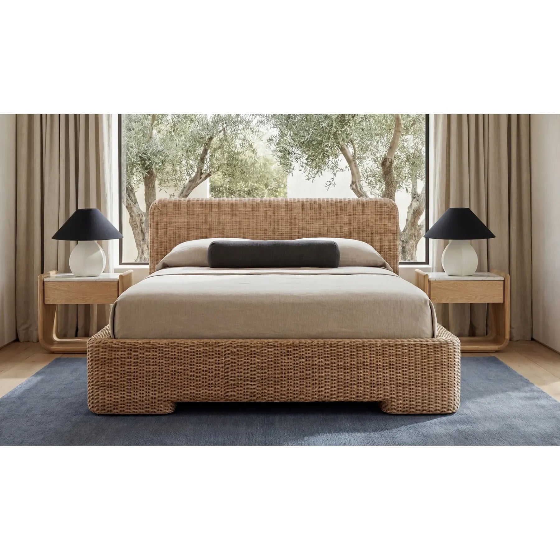 Coastal, but make it modern. Claudia brings a rounded, generous headboard that feels like a soft backdrop for books, pillows, and slow mornings. Natural rattan is woven by hand over a mango wood frame, giving the bed warm texture with a clean, furniture-forward outline. The weave keeps the look light, while the solid structure keeps it steady. It’s breezy, grounded, and ready to anchor your bedroom in a way that never overstates the vibe either.