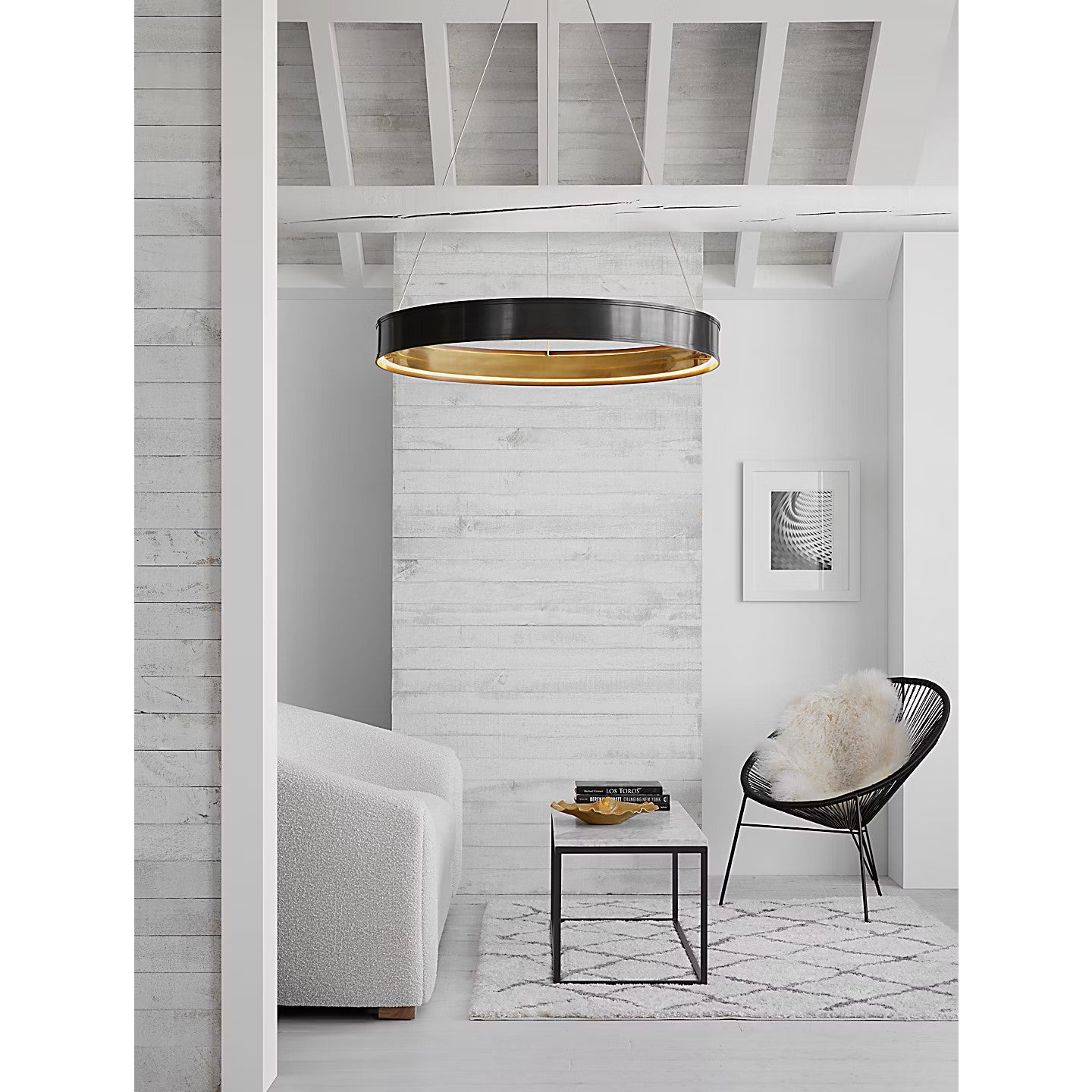A versatile range that showcases sleek minimalism, the Chapman & Myers Connery series brings classic architectural elements to modern lighting. Available as both flush mount and chandelier styles, the designs showcase a statement metal ring, trimmed on the top and bottom edges, illuminated by LED light reflected on the inner surface. Contemporary and jewelry-like, these pieces will lend a sophisticated touch to homes, from living and dining rooms to kitchens, bedrooms and entryways.