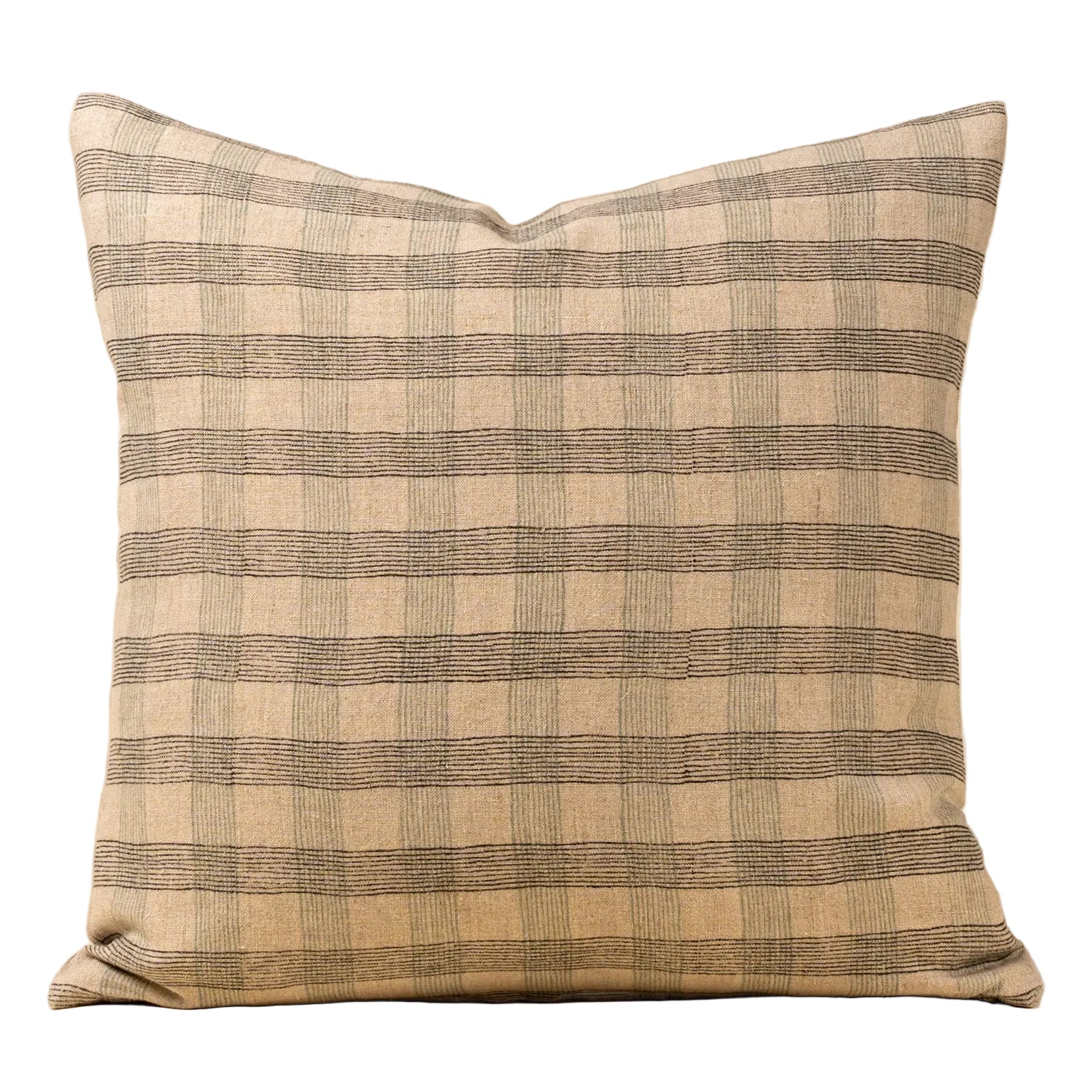 Add subtle pattern and soft colour to your space with the Block Print Plaid Linen Pillow. Hand block printed by skilled craftsmen, this modern decorative pillow brings ethical sourcing and timeless design together. The charcoal and light blue plaid pattern adds quiet texture, while the natural 100% Belgian linen base offers breathable comfort and durability.