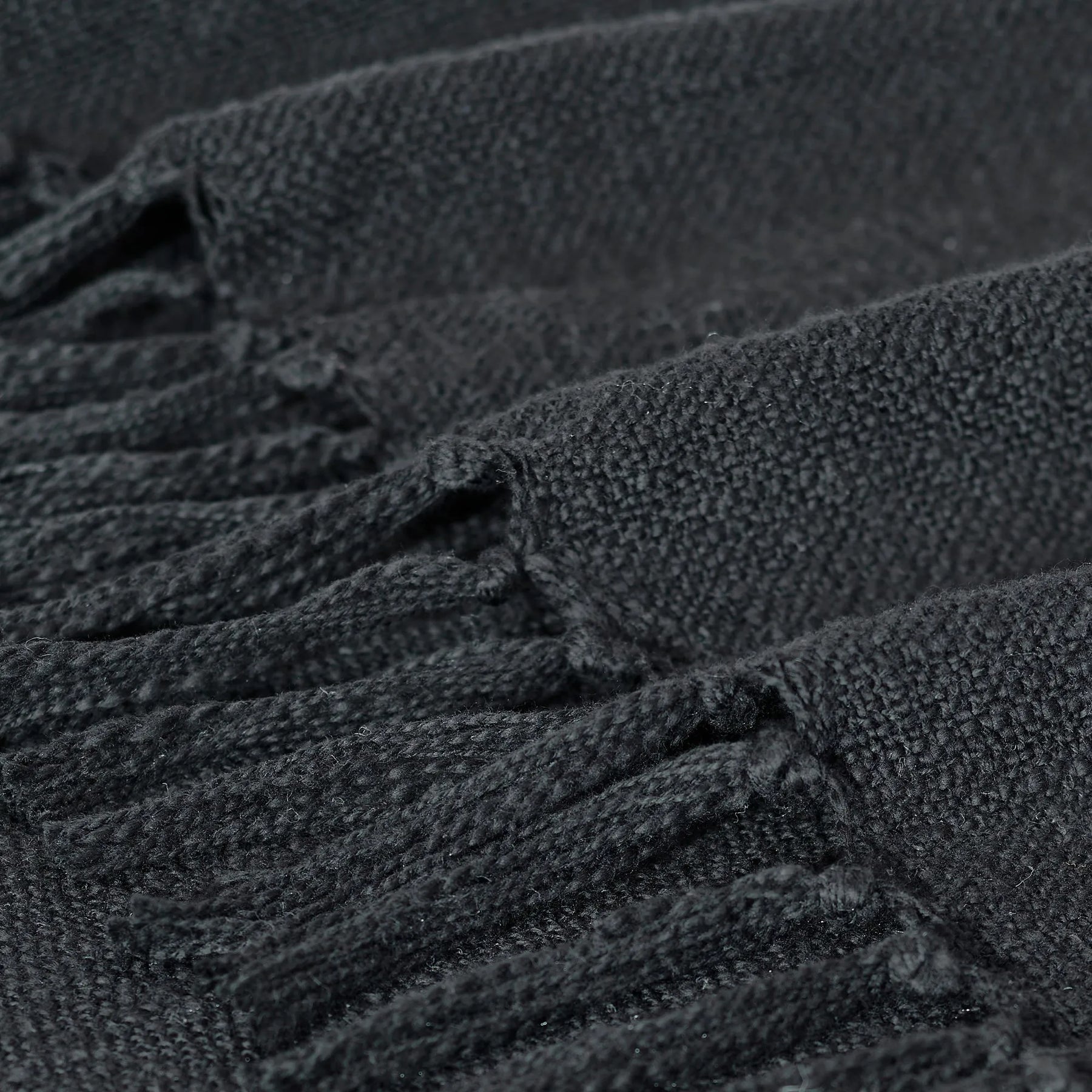 Woven from 100% cotton, this charcoal black blanket features a luxurious texture and eye-catching fringed trim for visual interest. Even when it’s not in use, this accessory adds beauty and dimension to any space. Throw it casually over a sofa or lay it at the foot of a bed to create a stylish layered look. Once you discover the relaxed vibe and cozy feel of this blanket, you may want to pick one up for every room.
