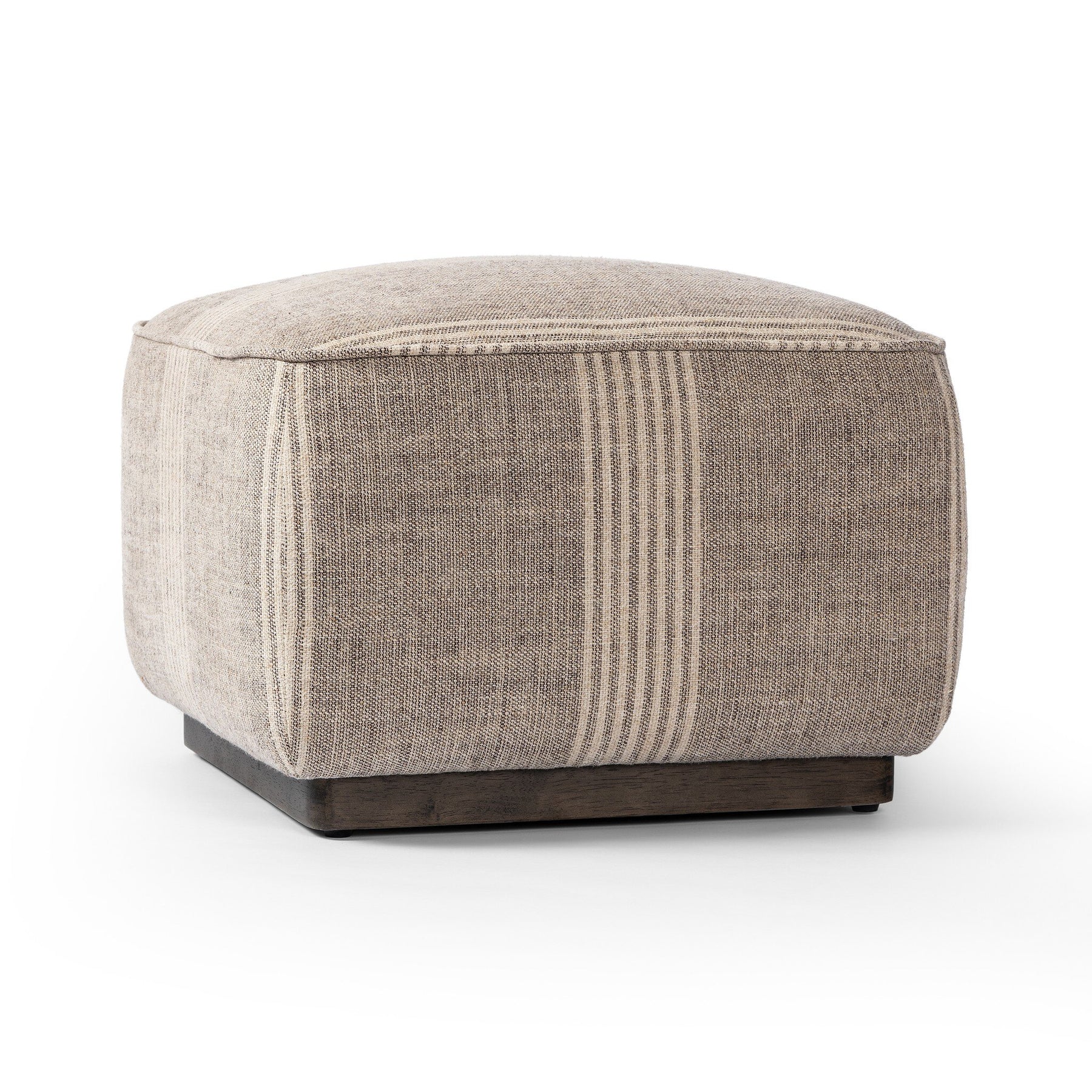 Upholstered in rich top-grain leather with a visible grain and paired with a subtly distressed parawood base, this large, rectangular ottoman brings a hip retro vibe. Style with a tray as a design-forward coffee table.