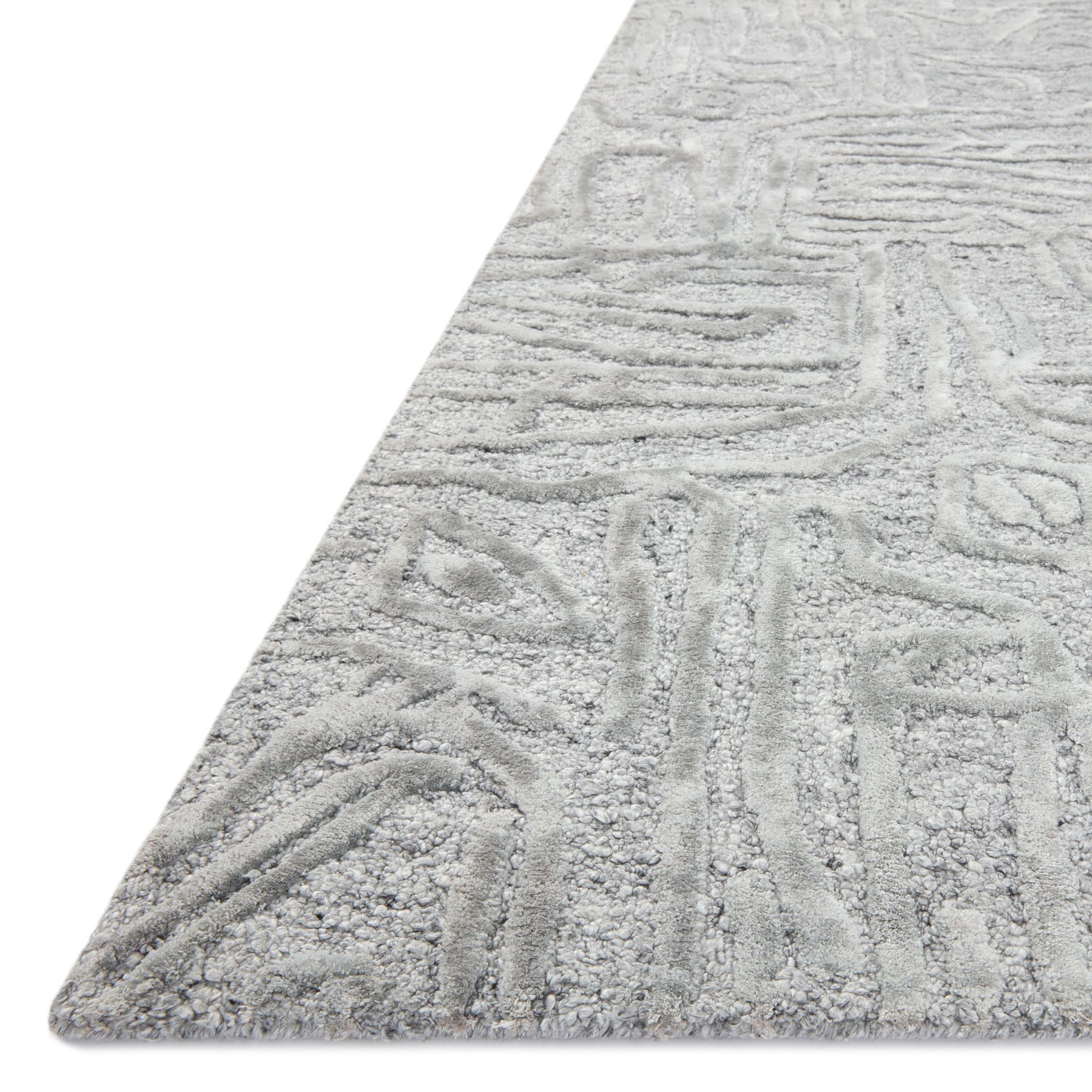 Inspired by nature’s most textured landscapes, the Juneau Collection offers a striking foundation to build your room around. Each piece is hand-tufted with rayon and wool by artisans in India for a silky shine that highlights the high and low effects in the pile.
