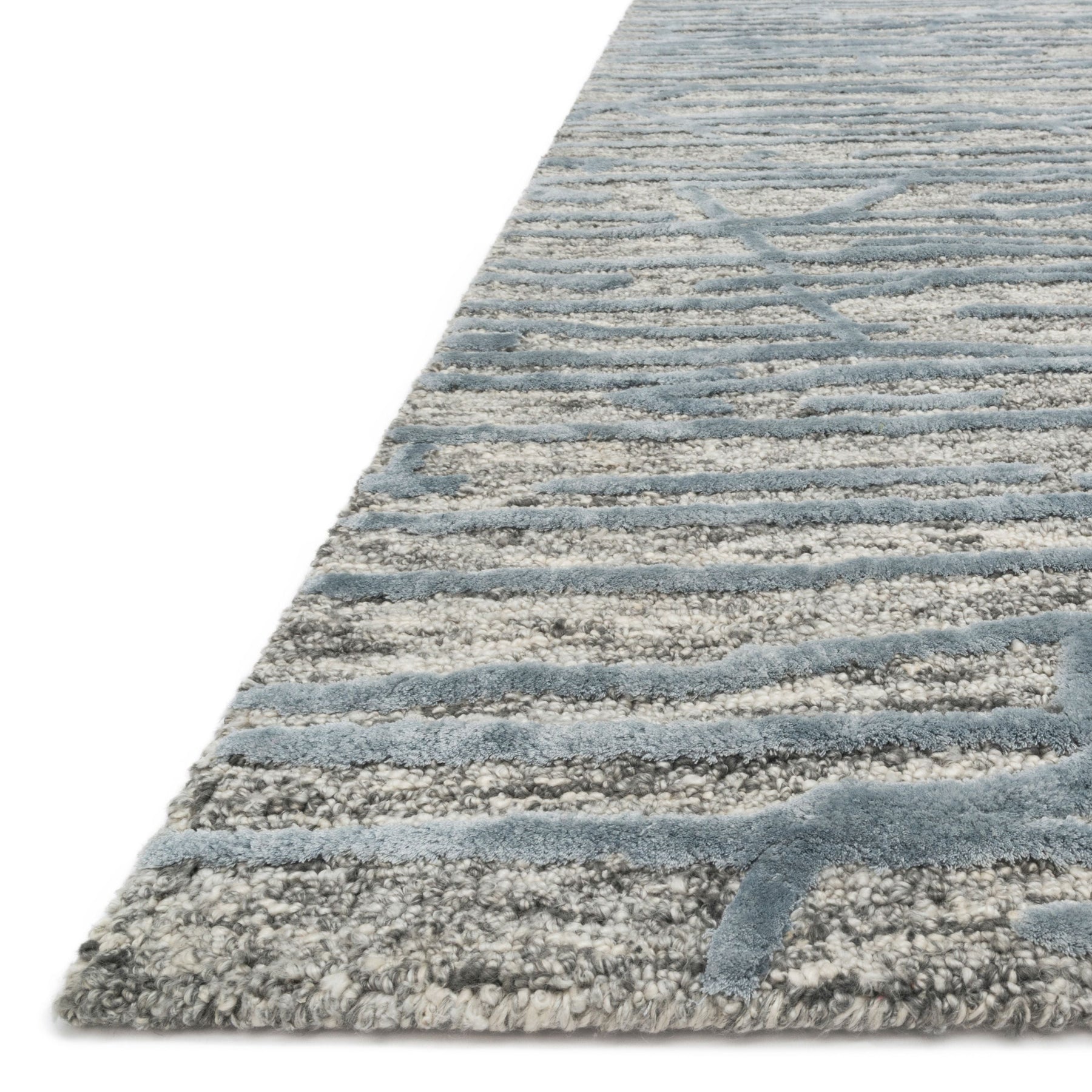 Inspired by nature’s most textured landscapes, the Juneau Collection offers a striking foundation to build your room around. Each piece is hand-tufted with rayon and wool by artisans in India for a silky shine that highlights the high and low effects in the pile.