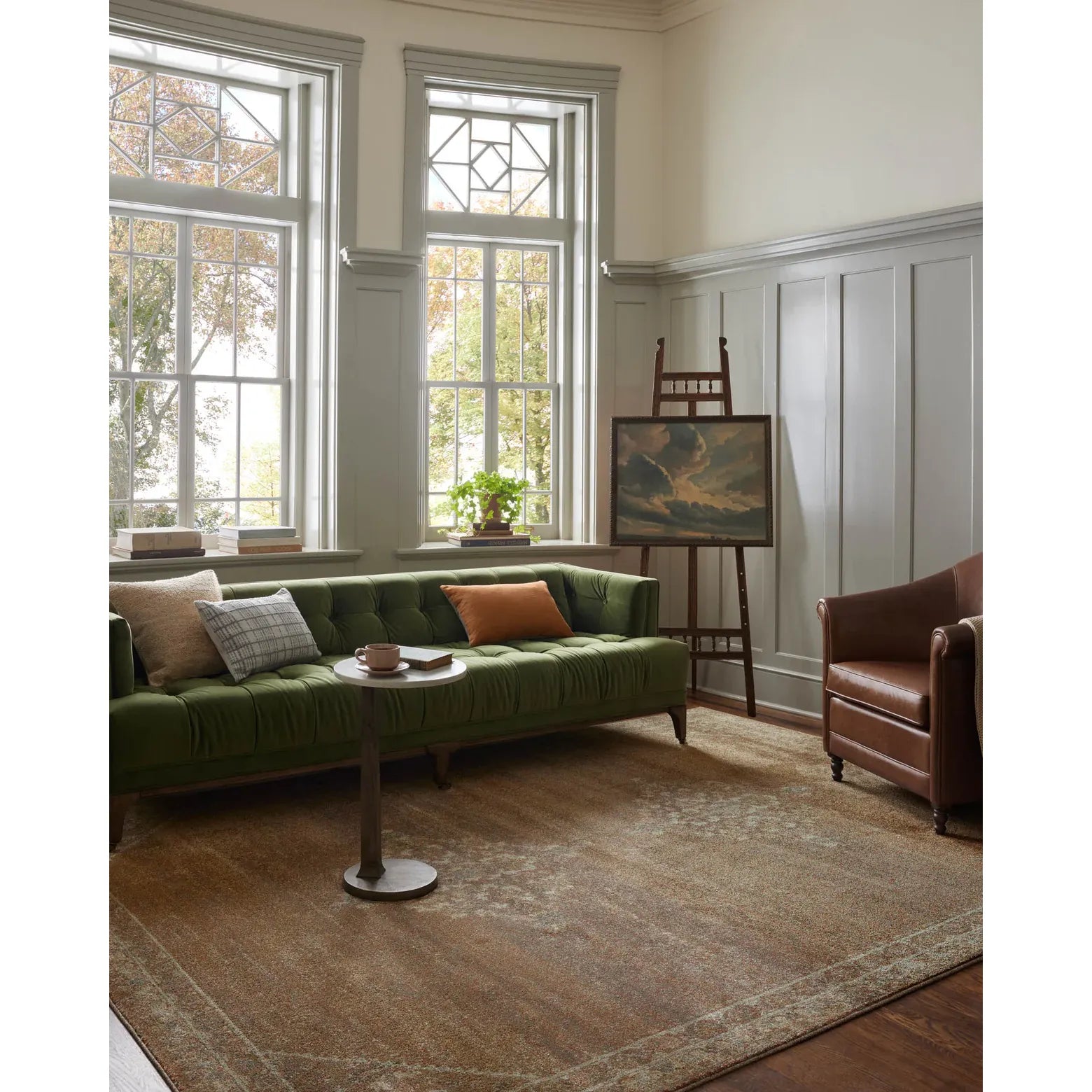 The Mona Collection by Magnolia Home by Joanna Gaines x Loloi is a power-loomed area rug with a framed design featuring traditional motifs and medallions in muted palettes. This collection is made of easy-to-care-for polypropylene and polyester in Egypt and OEKO-TEX certified, ensuring its materials don't contain harmful substances.