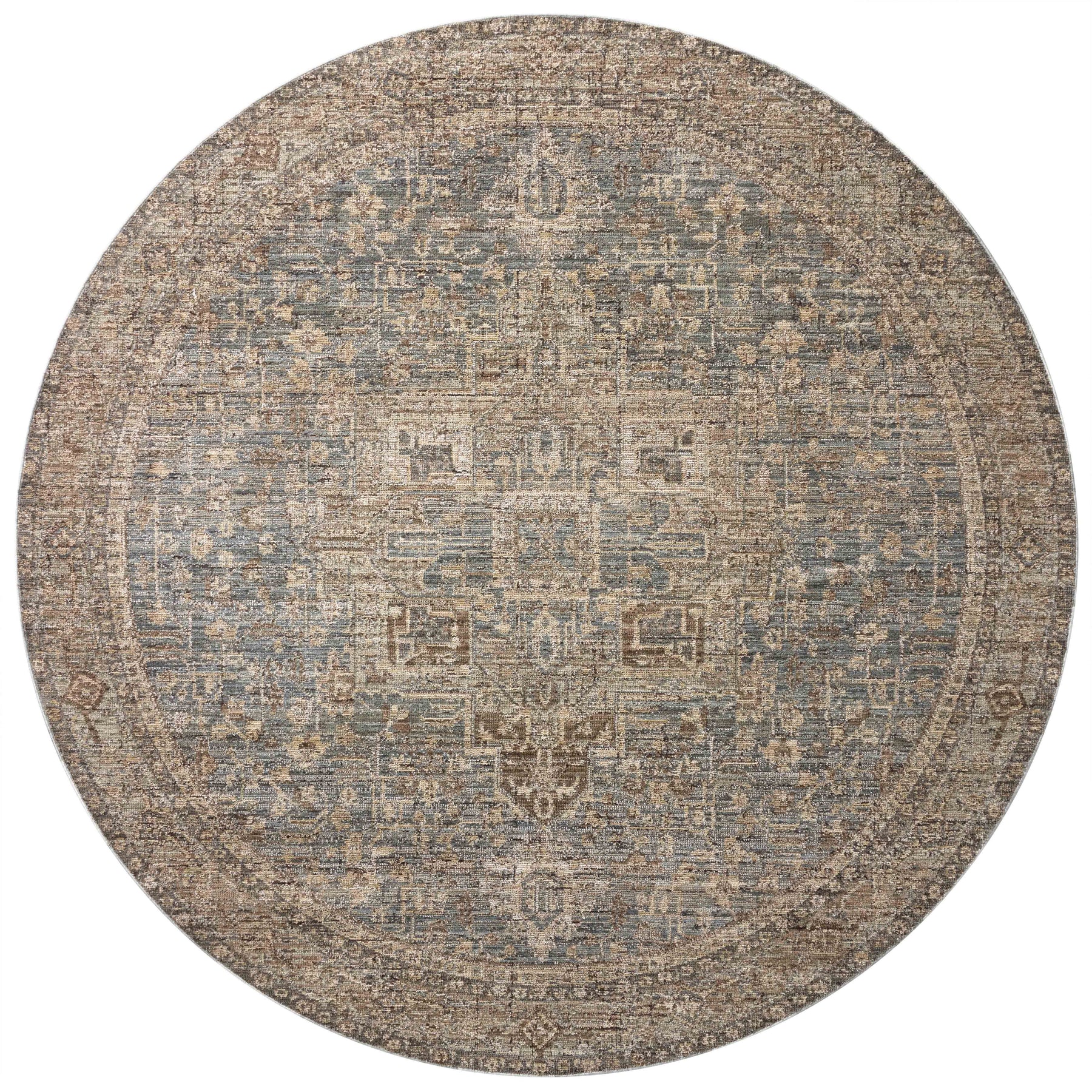 The Priscilla Collection is a classically beautiful area rug with the low, worn-in pile of a treasured vintage textile. The rug neutral stone palette uses contrasting tones with moments of distressing and saturation for visual depth that emphasizes the antique aesthetic. This collection is power-loomed of 100% polyester in Turkey, a durable, easy-to-clean construction that never sheds and is well-suited for busy living rooms, bedrooms, entryways, and more.