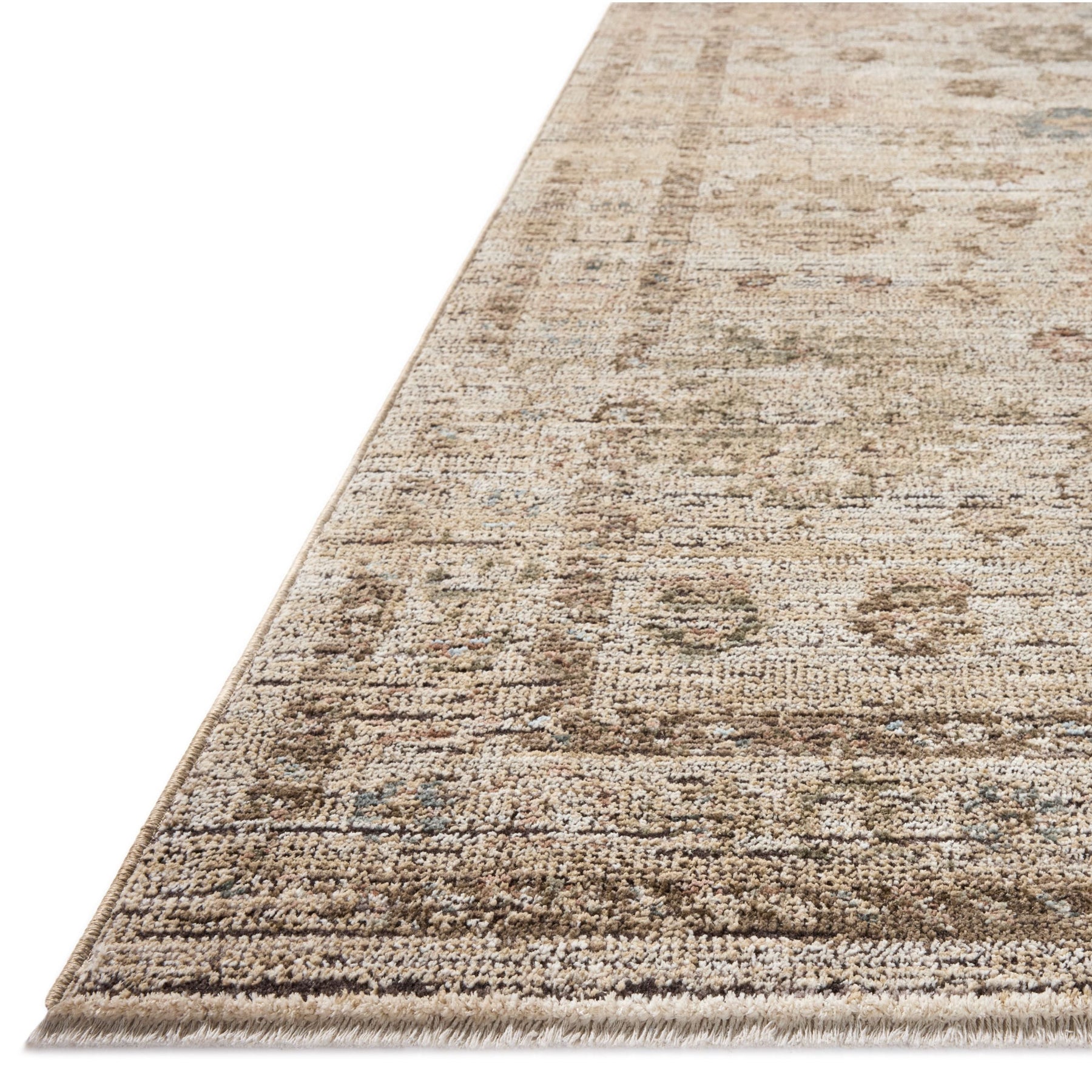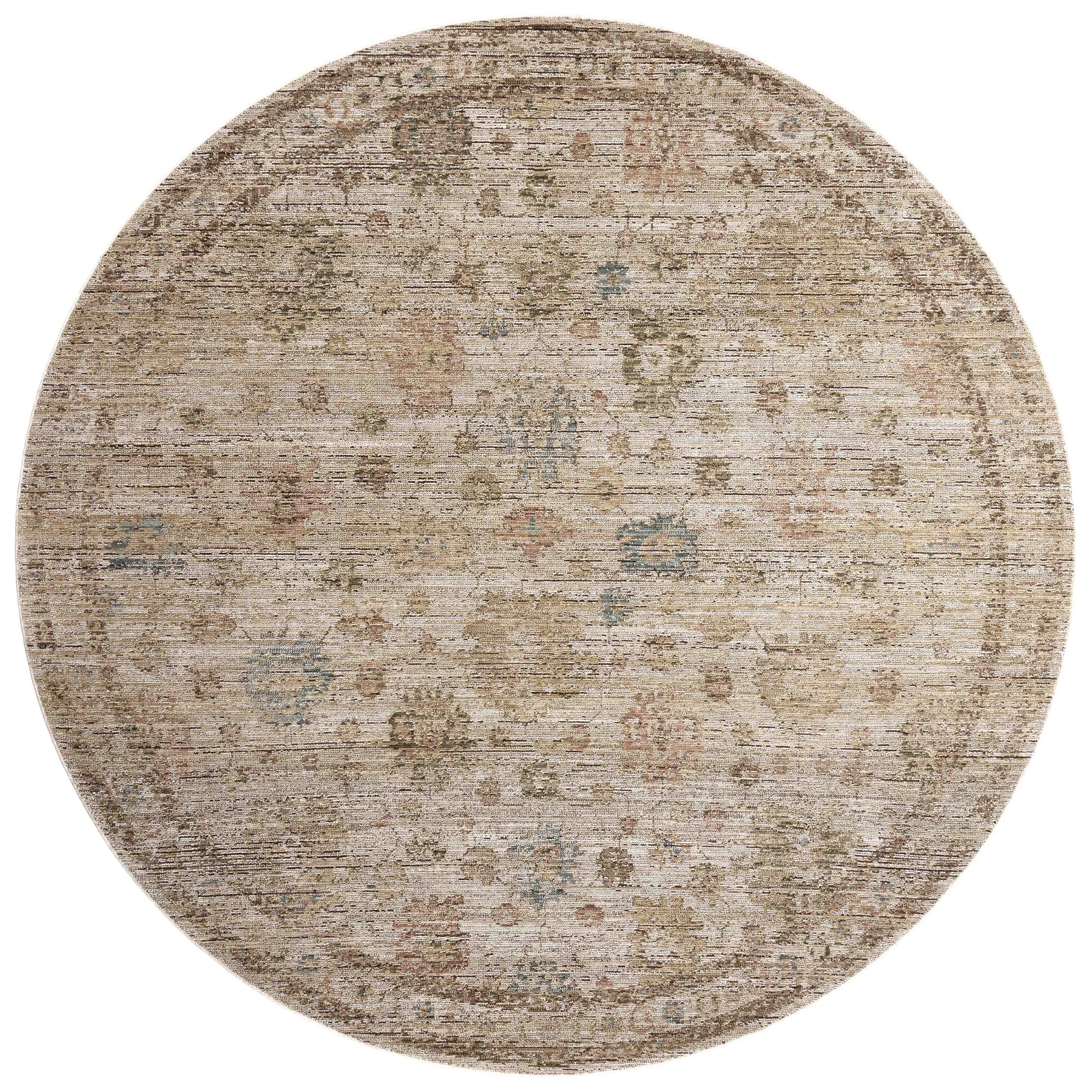 The Priscilla Collection is a classically beautiful area rug with the low, worn-in pile of a treasured vintage textile. The rug neutral stone palette uses contrasting tones with moments of distressing and saturation for visual depth that emphasizes the antique aesthetic. This collection is power-loomed of 100% polyester in Turkey, a durable, easy-to-clean construction that never sheds and is well-suited for busy living rooms, bedrooms, entryways, and more.