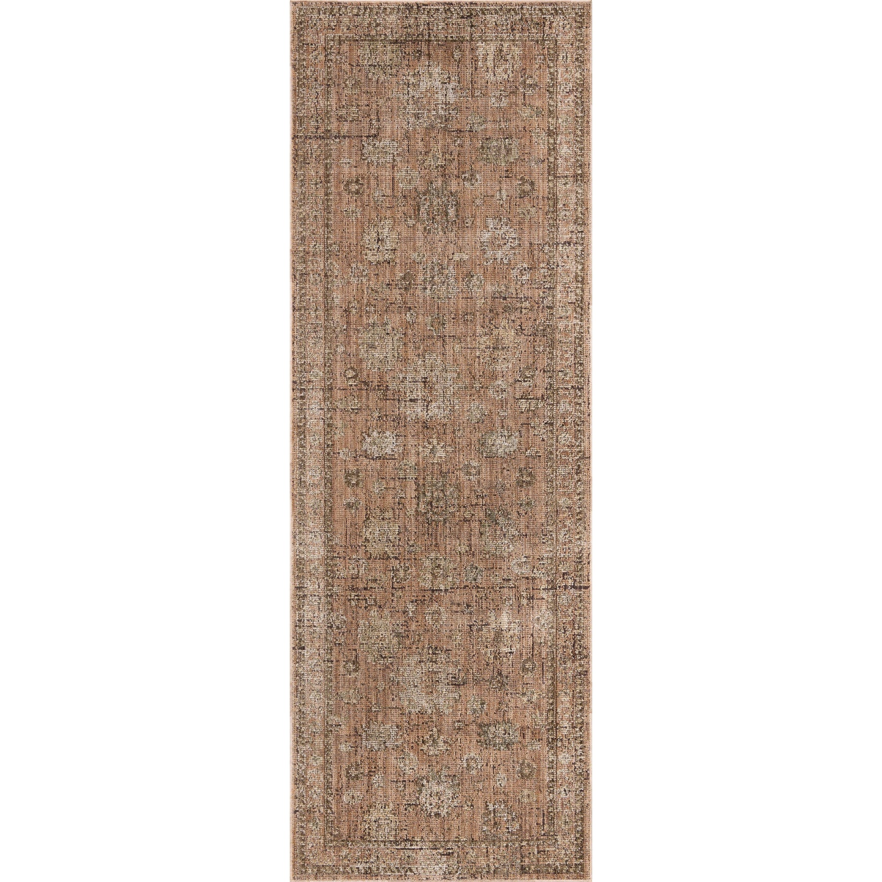 The Priscilla Collection is a classically beautiful area rug with the low, worn-in pile of a treasured vintage textile. The rug neutral stone palette uses contrasting tones with moments of distressing and saturation for visual depth that emphasizes the antique aesthetic. This collection is power-loomed of 100% polyester in Turkey, a durable, easy-to-clean construction that never sheds and is well-suited for busy living rooms, bedrooms, entryways, and more.